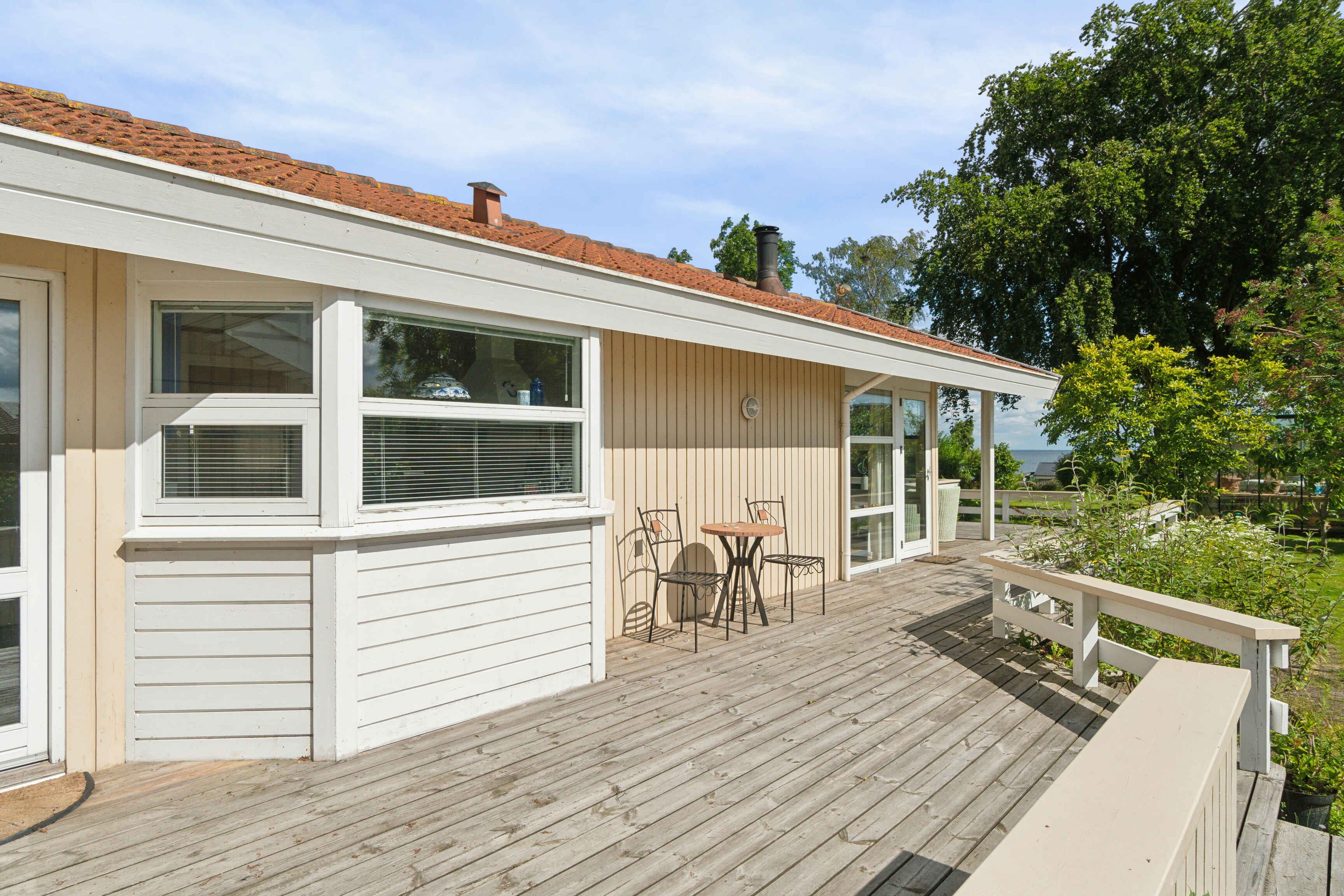 Dit charmante zomerhuis biedt een unieke en onvergetelijke ervaring met volledig uitzicht op het water. De gevel naar het water toe is ontworpen met glas, waardoor een fantastisch panoramisch uitzicht op het prachtige landschap ontstaat en er veel natuurlijk licht binnenkomt. Voor het huis strekt zich een groot gazon uit, perfect voor spel en plezier voor zowel kinderen als volwassenen. Het zomerhuis is het hele jaar door geïsoleerd, wat een aangename temperatuur garandeert, ongeacht het seizoen. Direct onder het huis vind je een idyllisch kiezelstrand waar je in alle rust van de natuur kunt genieten. Als je liever zwemt, is er een goed strand met een zwemsteiger iets rechts van het huis, waar je een verfrissende duik in het heldere water kunt nemen. Binnen biedt het zomerhuis een gezellige sfeer met een houtkachel die warmte en gezelligheid creëert op koele avonden. Buiten kun je ontspannen op het ruime houten terras dat zich uitstrekt voor en aan één kant van het huis, waar je kunt genieten van de zonnestralen of een heerlijke maaltijd onder de open hemel. Het zomerhuis is 74 m² groot en heeft vier slaapplaatsen, wat het ideaal maakt voor een klein gezin of een groep vrienden die quality time samen willen doorbrengen. Hier krijg je de perfecte combinatie van comfort, natuur en ontspanning in prachtige omgevingen.