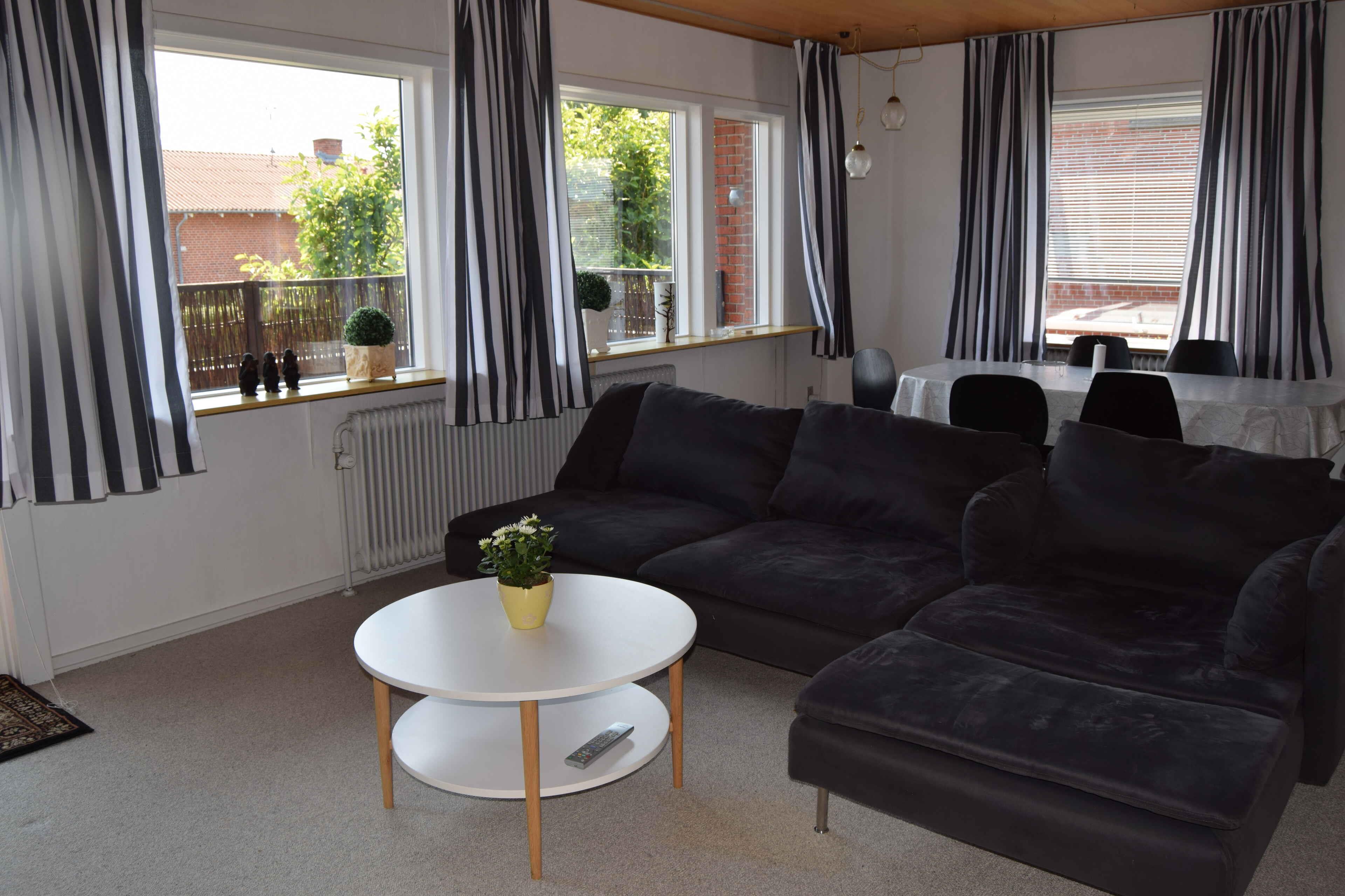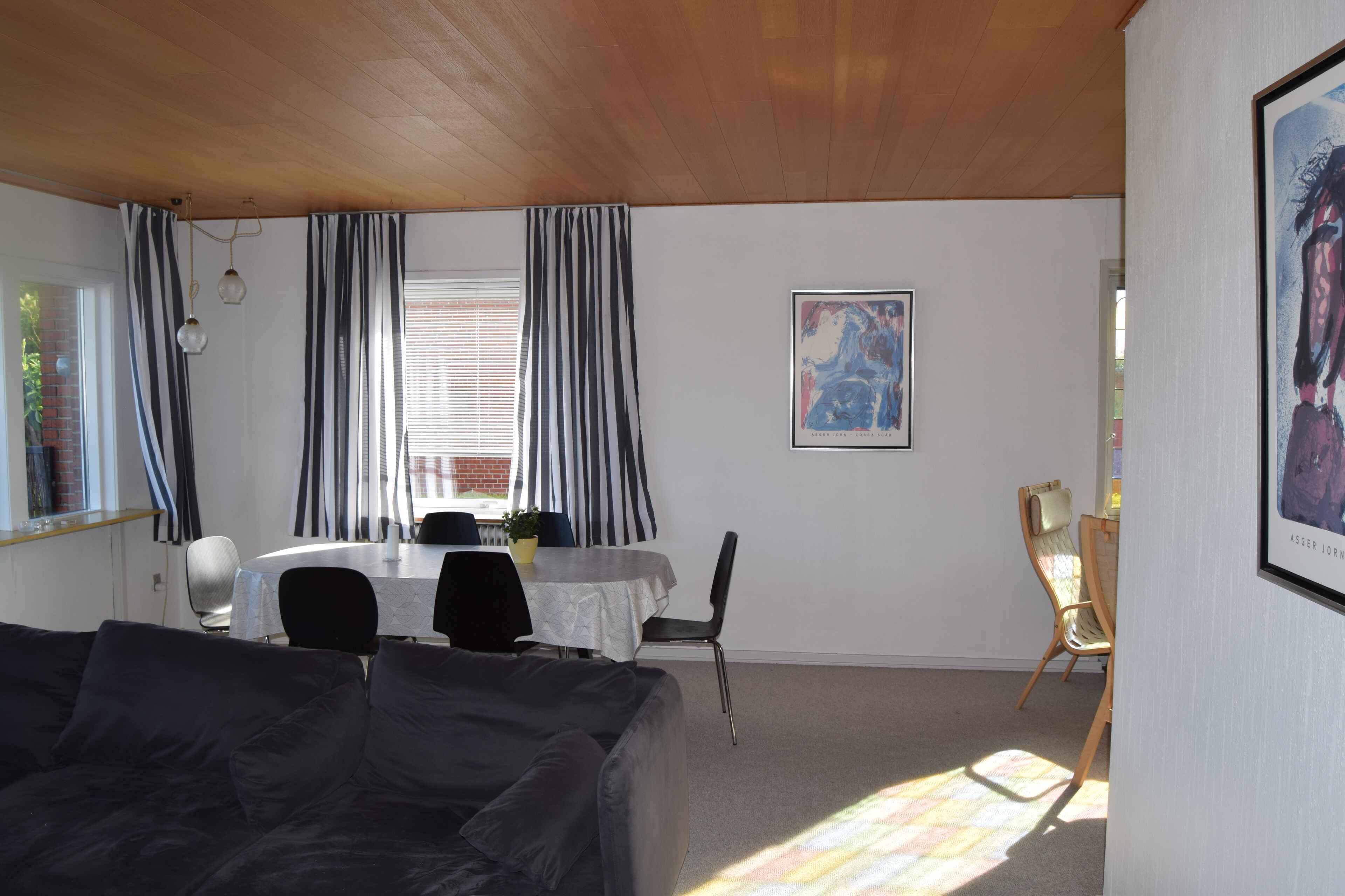 Dit charmante herenhuis ligt in het idyllische vissersdorpje Strandby, ca. 10 km ten noorden van Frederikshavn en ca. 35 km ten zuiden van Skagen. In Strandby vind je verschillende restaurants die ook afhaal aanbieden als je liever thuis eet. Het is dan ook niet verwonderlijk dat de specialiteiten voornamelijk visgerechten zijn, aangezien er elke ochtend een visveiling wordt gehouden die garant staat voor verse vis van de lokale bevolking. Als u avontuurlijker bent, kunt u sprankelende verse vis kopen bij de plaatselijke viswinkels. Op loopafstand van de woning vindt u 2 fijne zandstranden. Het noordelijke strand, dat een blauwe vlag en sanitaire voorzieningen heeft, en het meer besloten en minder drukke Søndre-strand, dat ook perfect is voor lange wandelingen. Een korte rit of 7 minuten met de trein en u bent in Frederikshavn met een overvloed aan winkels en eetgelegenheden. 30 minuten met de auto of trein en je bent in Skagen met alles wat deze stad te bieden heeft. De woning is een leuk herenhuis uit de jaren 50 met 2 slaapkamers, grote en zeer lichte woonkamer met eethoek voor minimaal 6 personen. Er is een slaapbank en een extra kamer in de kelder waar nog 2 bedden staan. Een mooie badkamer met douche en een goed uitgeruste keuken. Een terras met uitgang vanuit de woonkamer krijgt ochtendzon en is perfect om te genieten van uw ochtendkoffie. Achter het huis is een kleine privétuin met een overdekt gedeelte dat de middag- en avondzon krijgt. Perfect om te genieten van iets kouds na een dag op het strand.