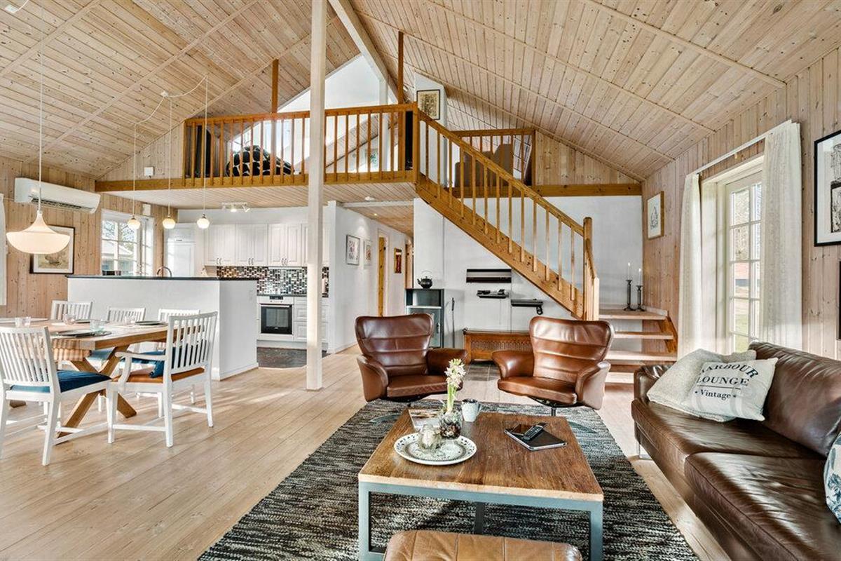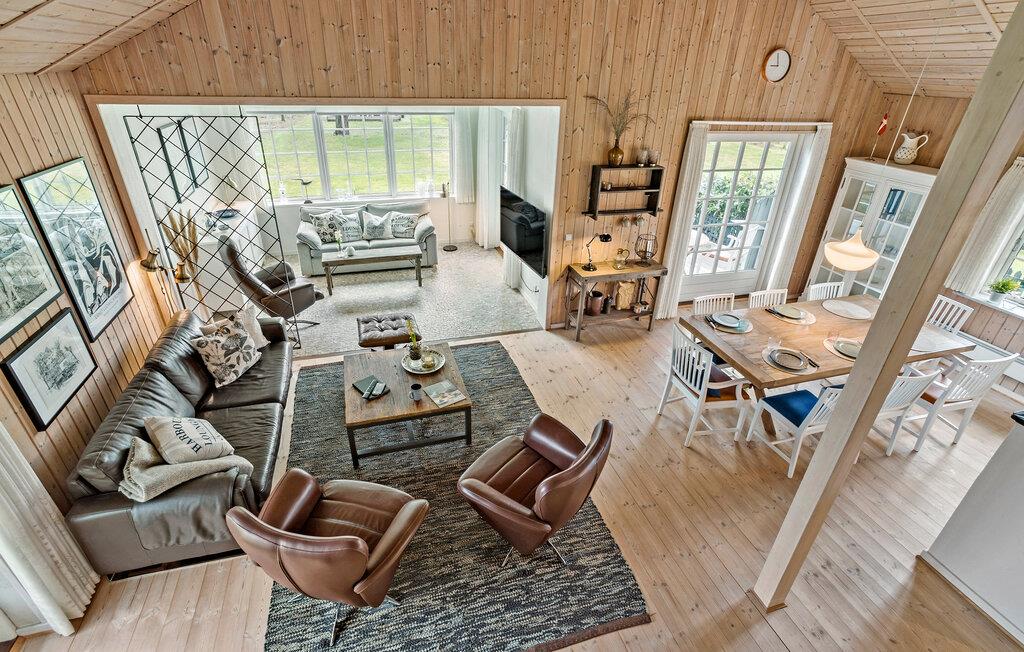 Ontsnap aan de hectiek van alledag en ontspan in dit prachtige vakantiehuis. Zodra je het huis binnenkomt, word je betoverd door de uitnodigende sfeer. De aanwezigheid van hout creëert een warme en gezellige sfeer en nodigt je uit om te blijven hangen in de grote, open woonkamer met hoge plafonds. Maak het jezelf gemakkelijk op de sofa's, kijk een film of tover heerlijke gerechten tevoorschijn in de keuken. Ontdek de kamers en het loungegedeelte op de bovenste verdieping en geniet vanaf hier van het uitzicht op de fjord.