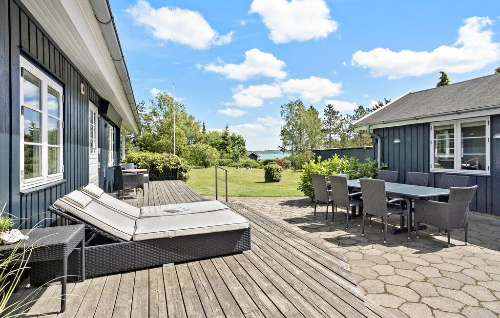 Ontdek dit sfeervolle houten vakantiehuis met uitzicht op de fjord, tuin en terras nabij Hjarbäkfjord in Denemarken.
