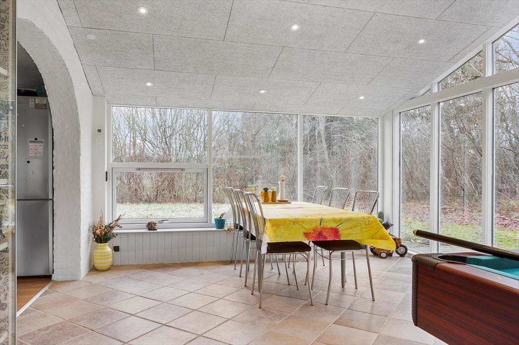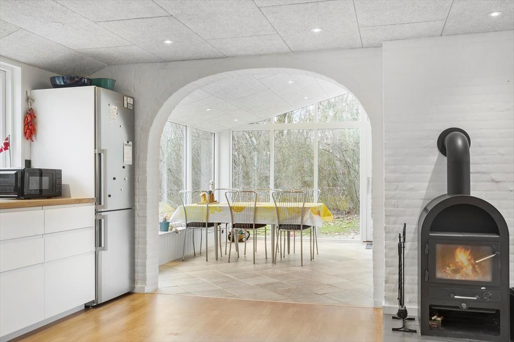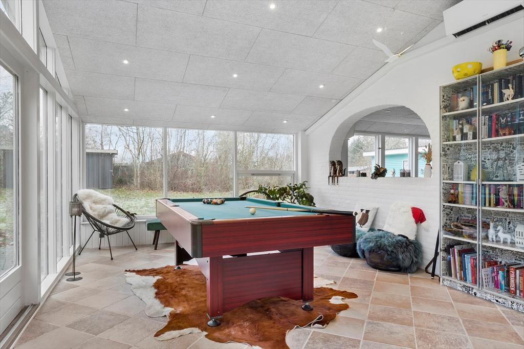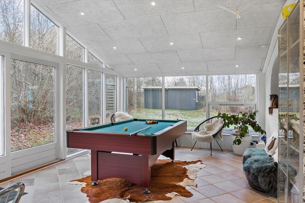 Nach einer im Jahr 2021 durchgeführten Renovierung präsentiert sich das Ferienhaus ausgesprochen gemütlich und einladend. Alle Räume bieten eine gute und moderne Einrichtung. Dies gilt für das Duschbadezimmer und den Eingangsbereich, in dem eine Waschmaschine und angenehm viel Schrankfläche zur Verfügung stehen. Die beiden Schlafräume bieten Schlafplätze für insgesamt fünf Personen. Das im Wohnraum platzierte Schlafsofa bietet zwei weitere Schlafmöglichkeiten. Beim Wohnraum handelt es sich um einen schönen Aufenthaltsraum mit einem Kaminofen und einem großen Flachbild-TV, in dem Ihre gesamte Familie Filme und Serien auf den Fernseher streamen oder gemeinsam an der Wii-Konsole spielen kann. Ihre Mahlzeiten bereiten Sie in der modernen, offenen Küche zu. Teil des offenen Aufenthaltsbereichs ist ein Wintergarten, der mit einem schönen Lichteinfall durch die großen Panoramafenster und mit einem Billardtisch zu verwöhnen weiß.