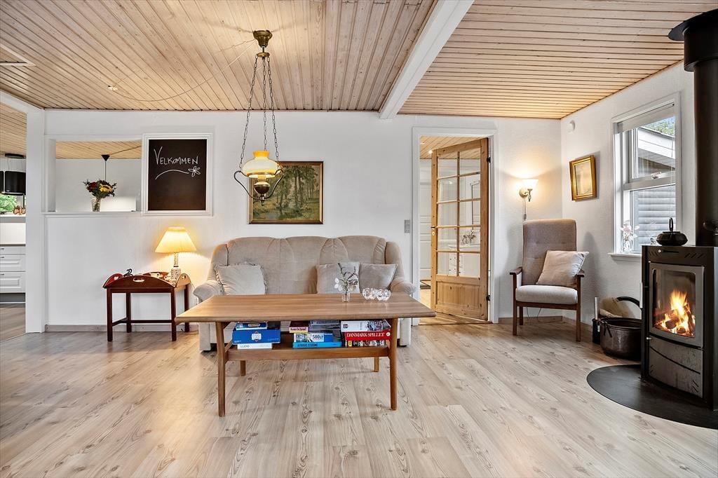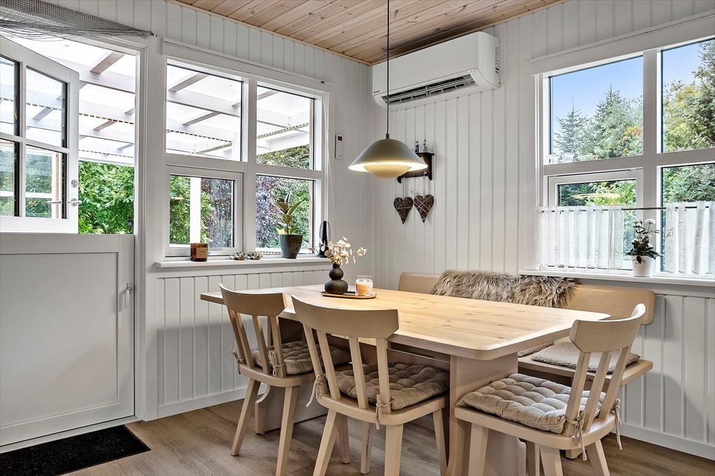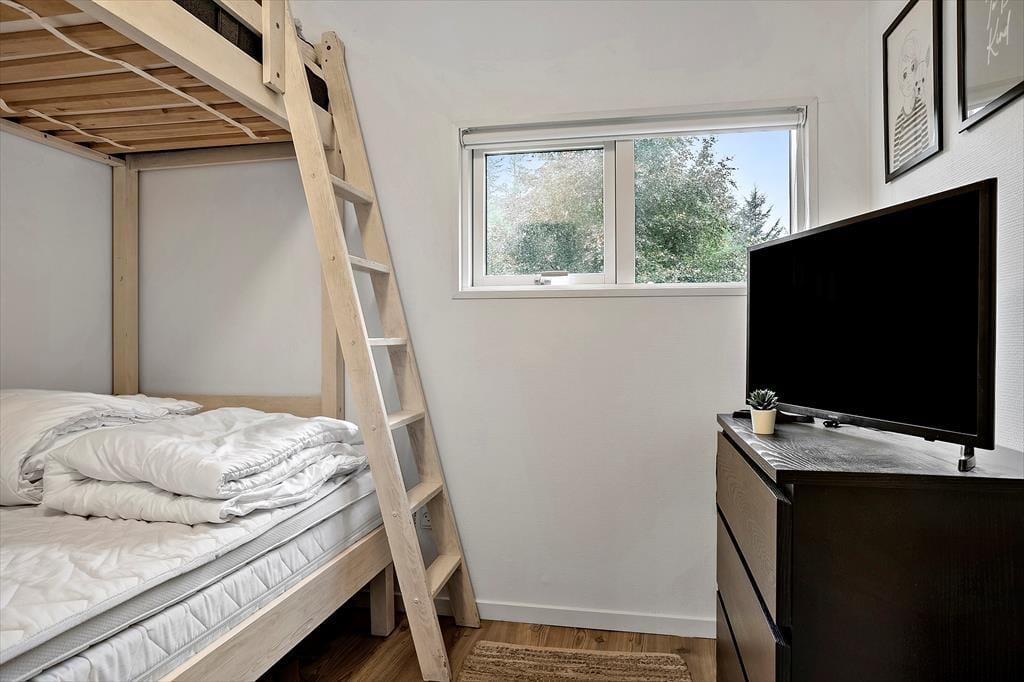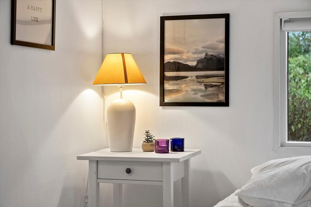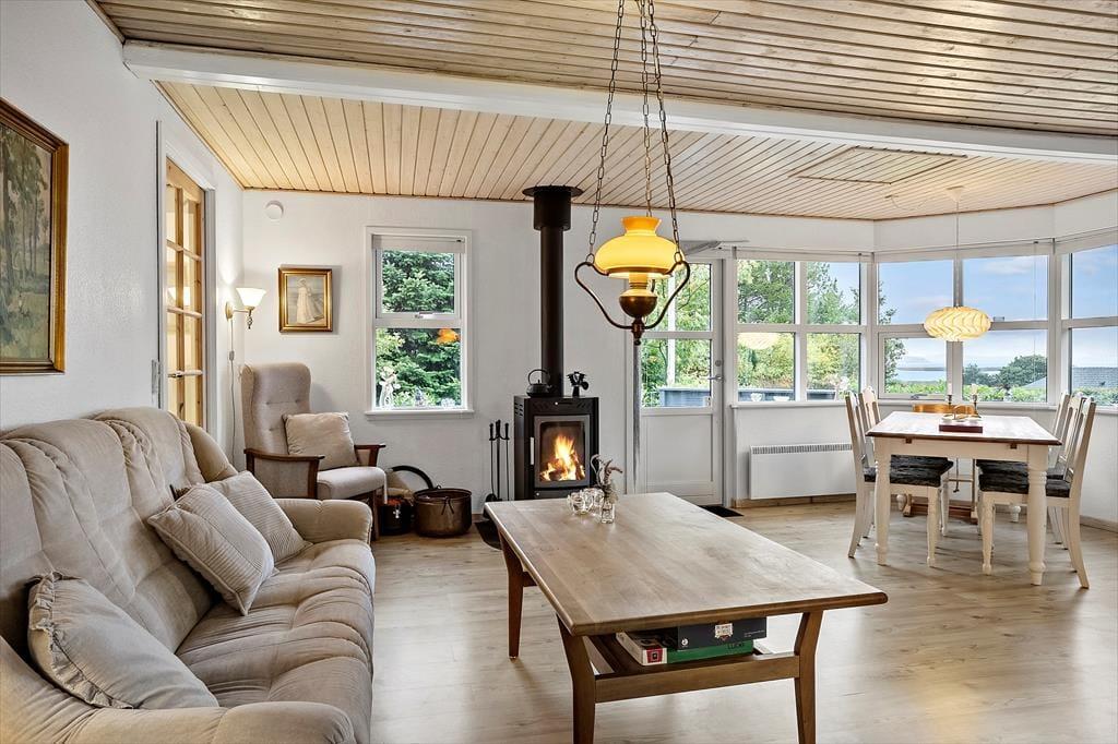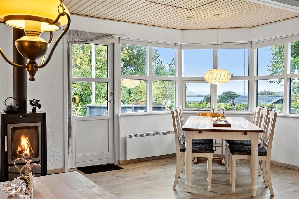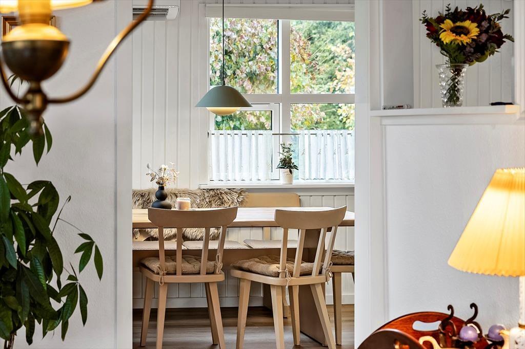 Im Inneren empfängt dich eine warme und gemütliche Atmosphäre, die von Persönlichkeit und Charme geprägt ist. Die hellen Räume schaffen eine ruhige Stimmung, und in der Mitte des Wohnzimmers steht der Kaminofen bereit, um Wärme und Behaglichkeit zu verbreiten, während du eine stille Stunde mit einem guten Buch oder einem Brettspiel mit der Familie genießt. Hier kannst du spüren, wie die Ferienruhe einkehrt, während das Feuer knistert und das Licht des Fjords durch die Fenster fällt. Das Haus bietet viel Platz für die Familie – mit Möglichkeiten für gemeinsames Beisammensein ebenso wie für kleine Auszeiten allein – genau so, wie ein Urlaub sein sollte.