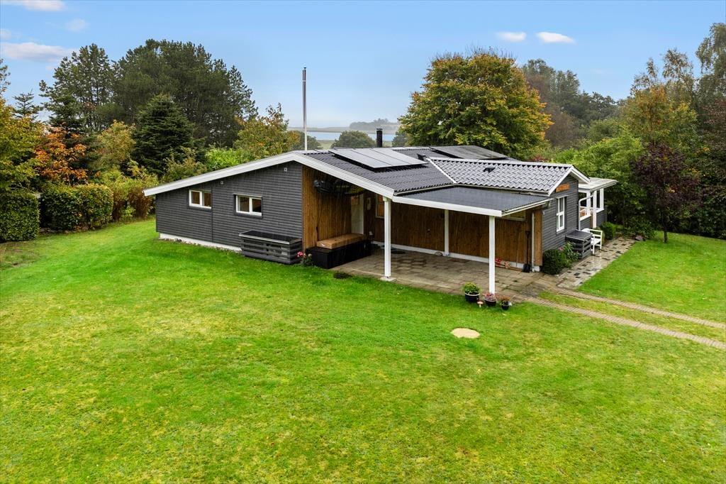 Das Leben im Freien lässt sich hier in vollen Zügen genießen. Das Ferienhaus verfügt sowohl über eine offene als auch eine überdachte Terrasse, sodass du immer den perfekten Platz findest – ganz gleich, ob die Sonne hoch am Himmel steht oder du ein schattiges Plätzchen suchst. Der Garten ist groß und einladend, und hier können die Kinder frei auf dem Rasen spielen, schaukeln oder Äste für einen gemütlichen Abend am Lagerfeuer sammeln. Dies ist der Ort, an dem sich die ganze Familie unter freiem Himmel versammeln kann – vielleicht mit Stockbrot, Sternenhimmel und schönen Geschichten in einer lauen Sommernacht. Vom Grundstück aus hast du zudem einen herrlichen Blick auf den Fjord, der eine ganz besondere Ruhe ausstrahlt, die dich durch den gesamten Urlaub begleitet.