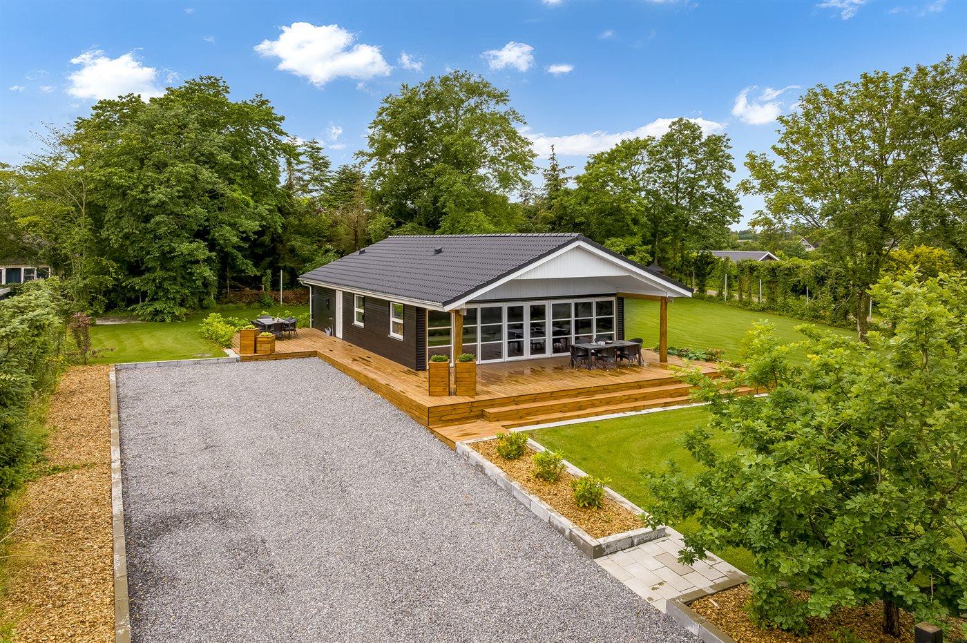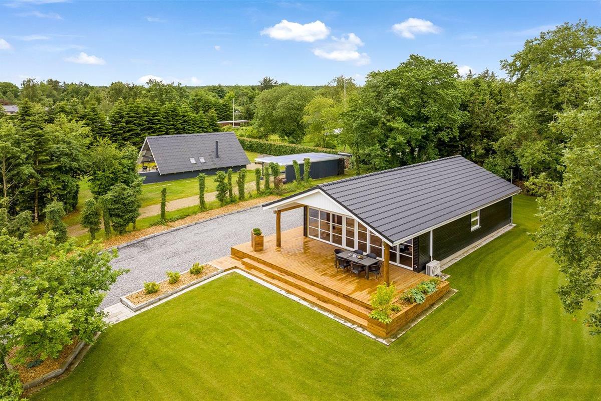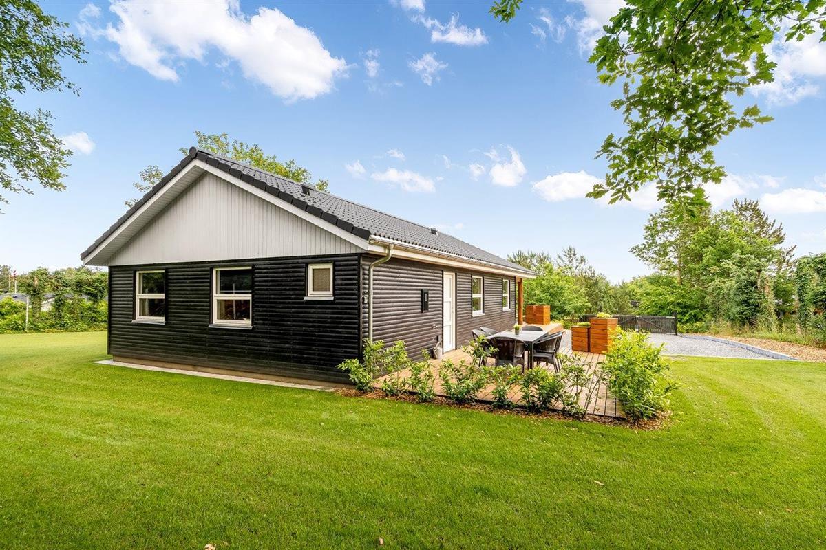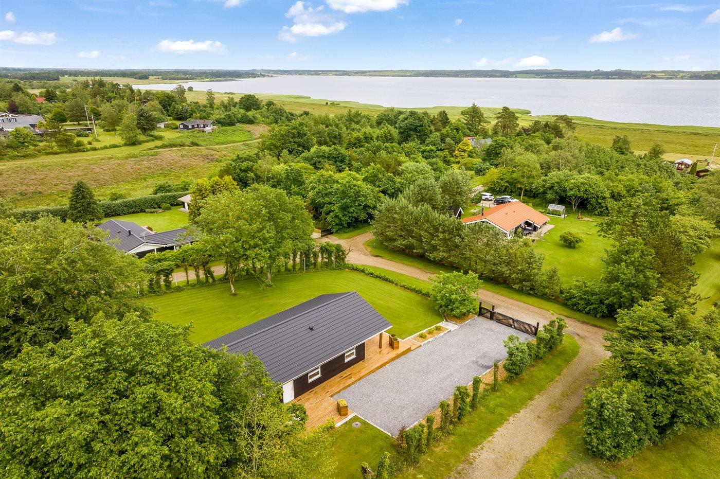 De vakantiewoning is gelegen op een 1400 m² groot aangelegde tuin. Afstand tot de fjord 300 m. Dichtstbijzijnde winkel 4000 m. Bij de vakantiewoning hoort terras. Daarnaast is er een overdekt terras. Schommel. Speeltoren. Parkeerplaats bij het huis.