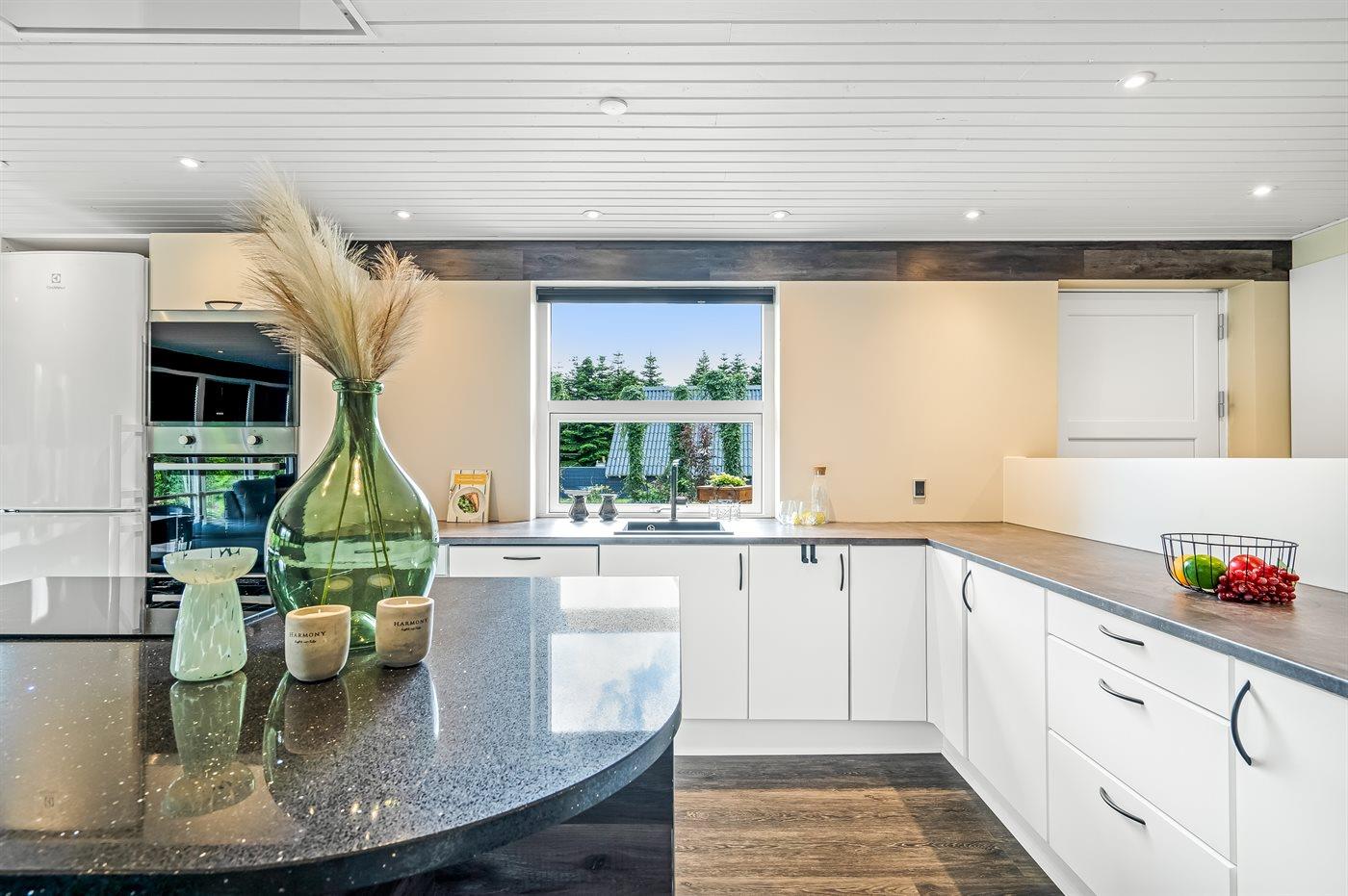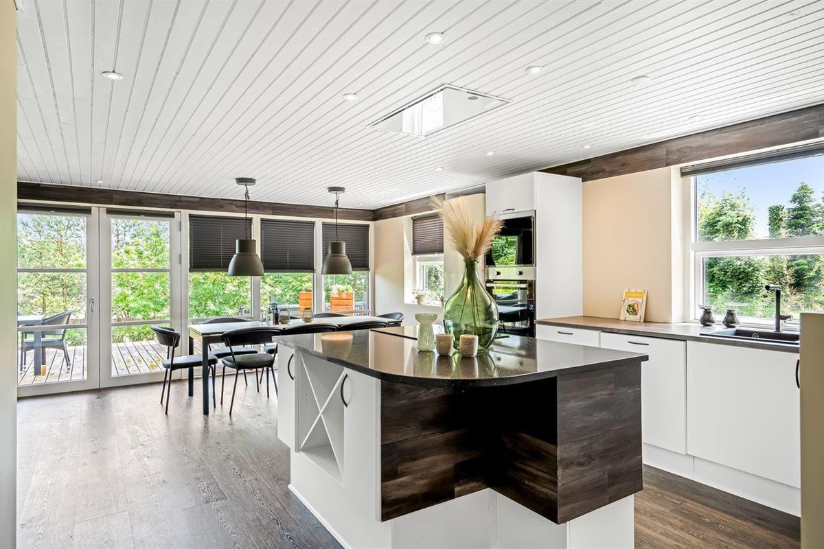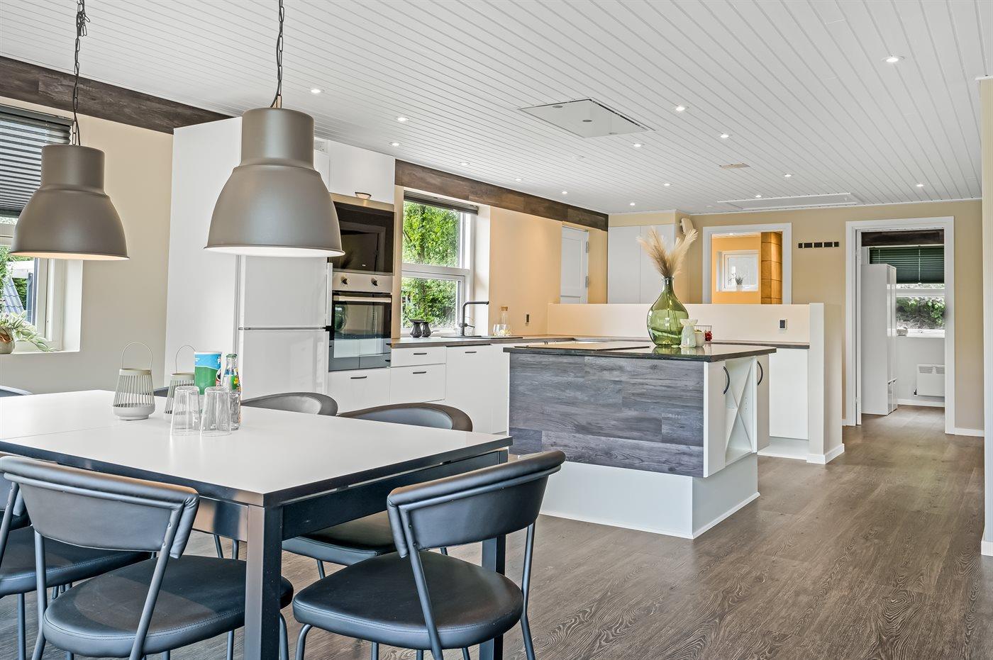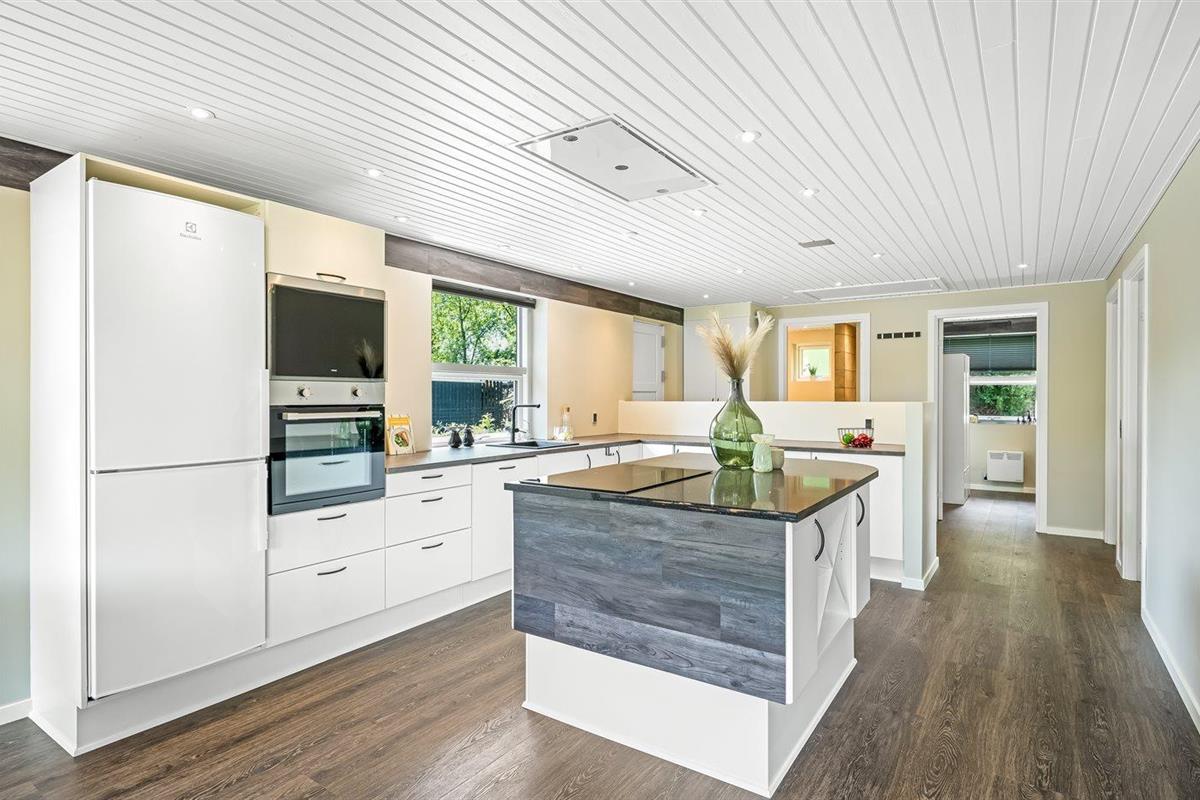 De keuken is uitgerust met koelkast Er is 4 inductiekookplaten, heteluchtoven, magnetron en vaatwasser.