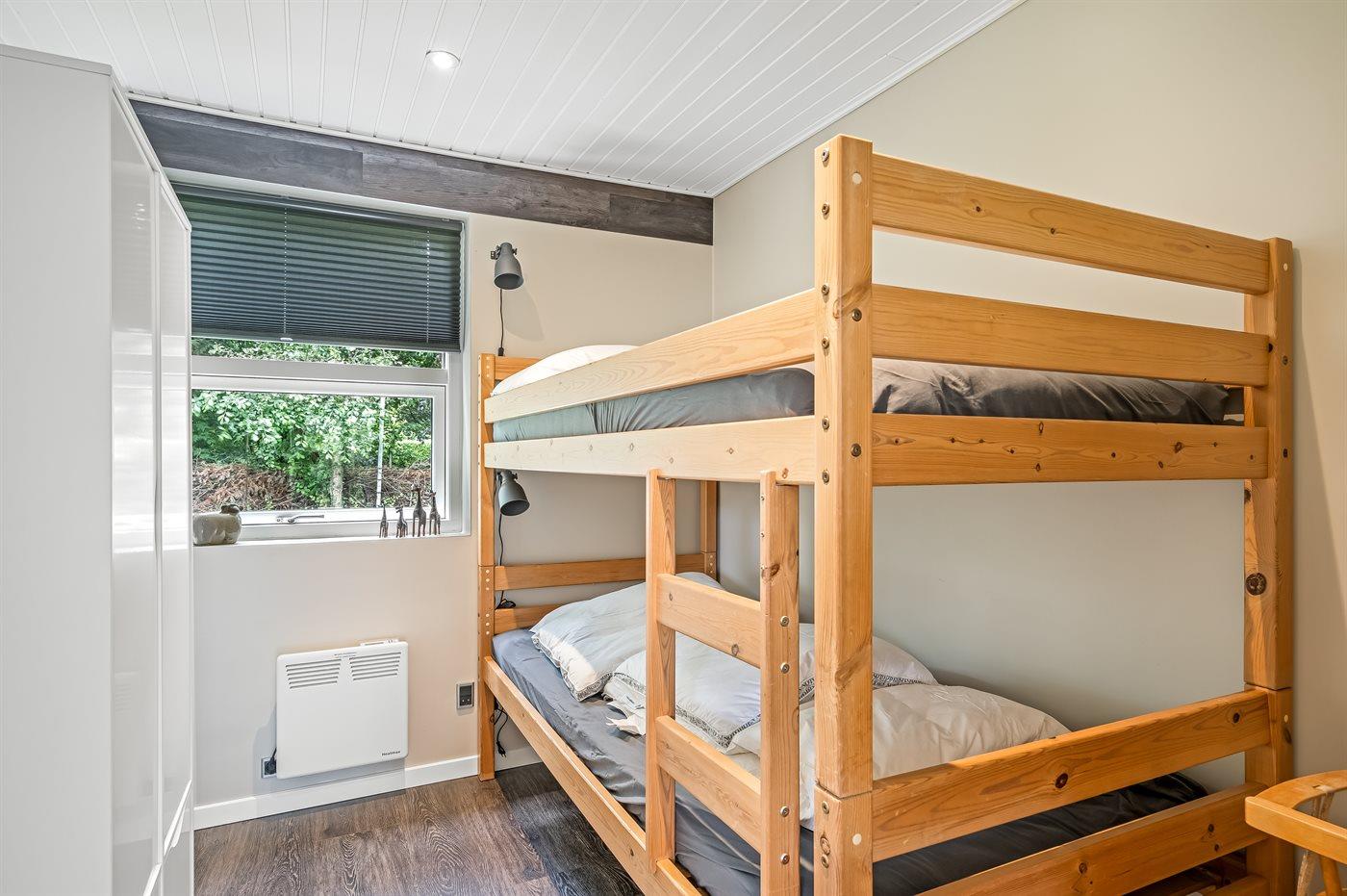 Er zijn in totaal 3 slaapkamers. De slaapplaatsen zijn als volgt verdeeld: 2 slaapplaatsen in tweepersoonsbed. 2 slaapplaatsen in eenpersoonsbedden. 2 slaapplaatsen in stapelbed.