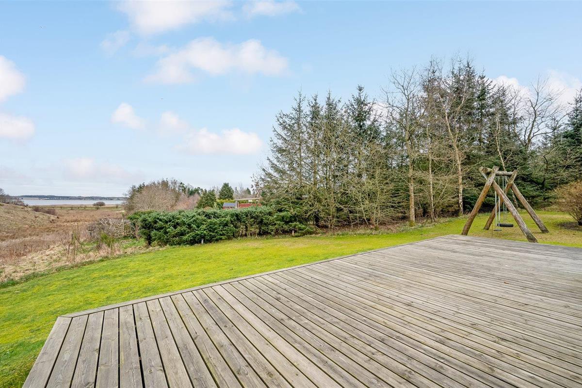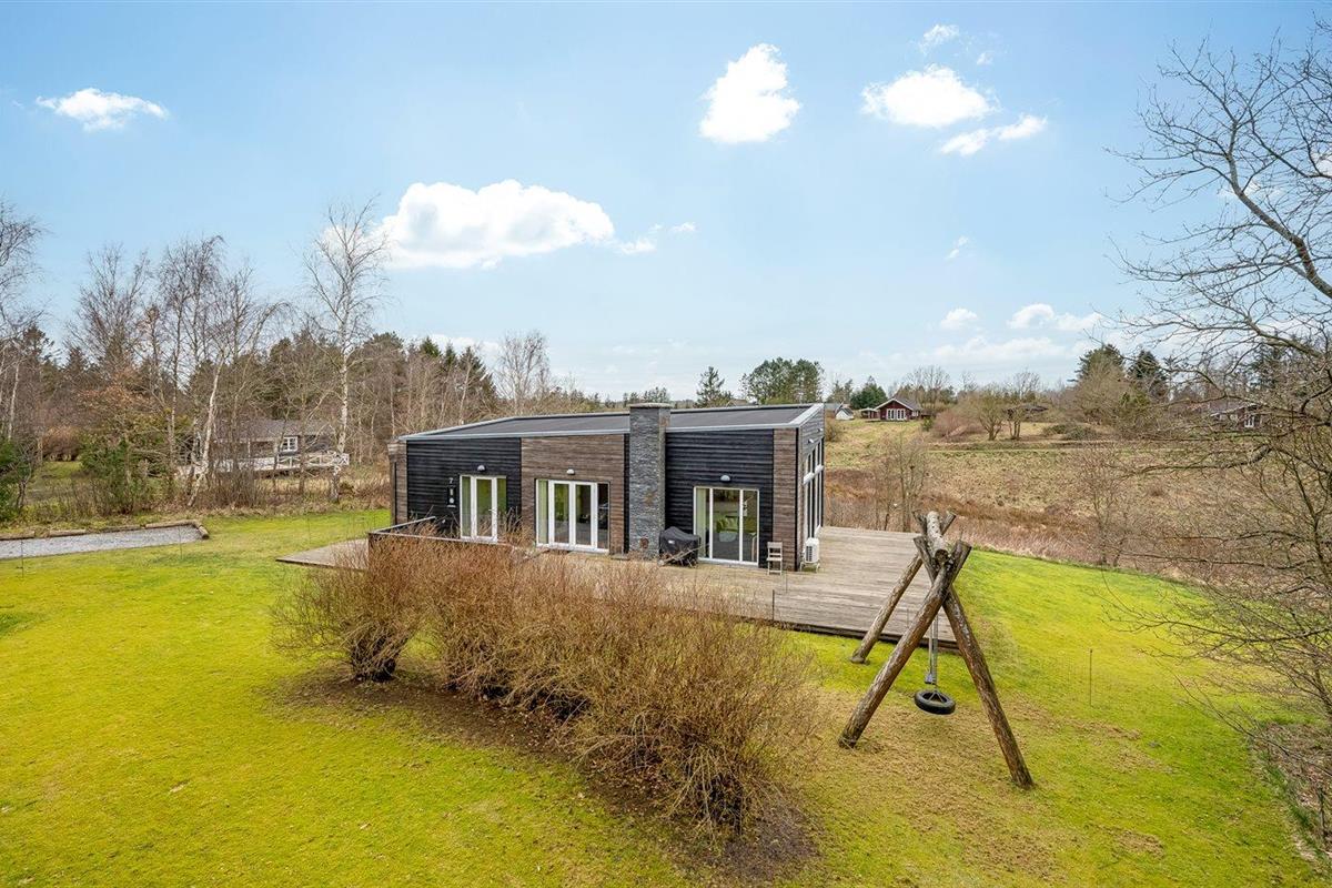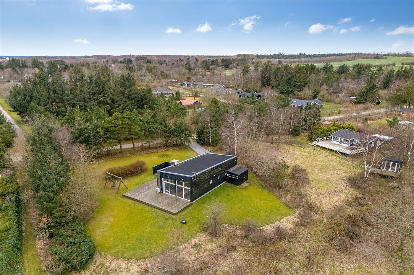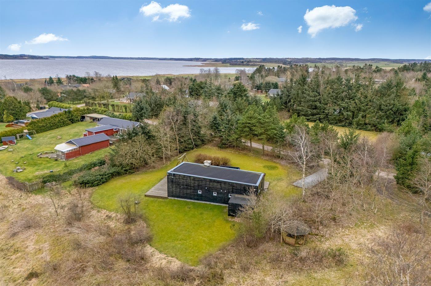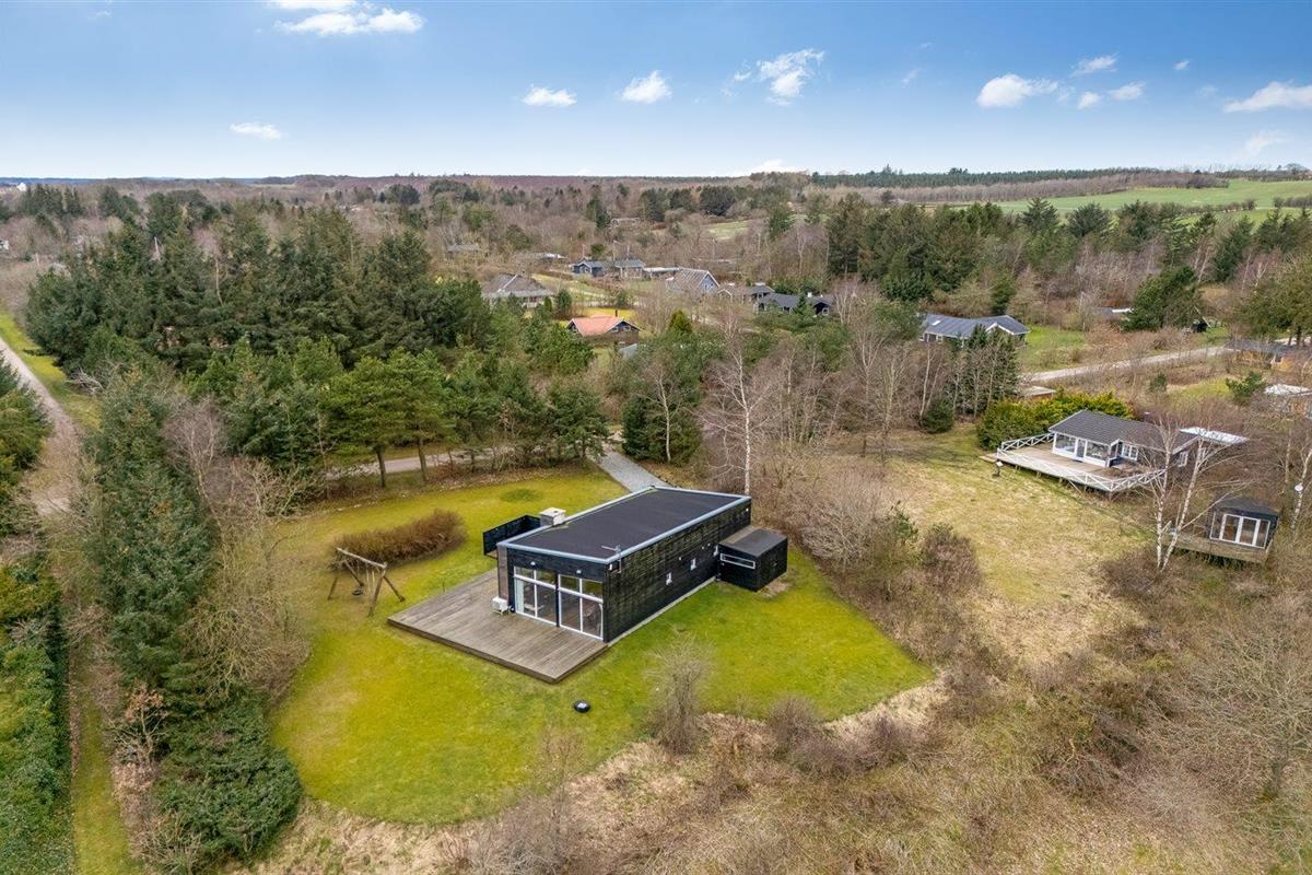 De vakantiewoning is gelegen op een 1680 m² groot natuural grond. Afstand tot de fjord 250 m. Dichtstbijzijnde winkel 3000 m. Er is een golfbaan op een afstand van 7000 m. Bij de vakantiewoning hoort 125 m² terras. Schommel. Parkeerplaats bij het huis.