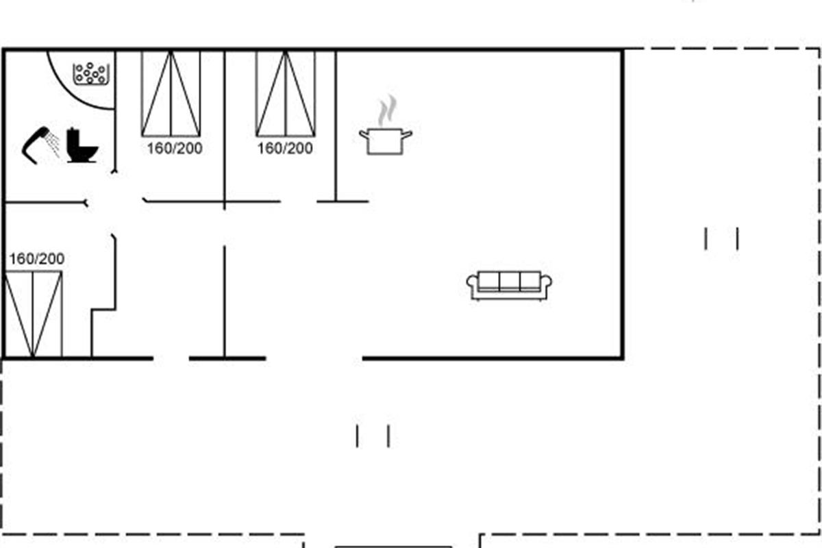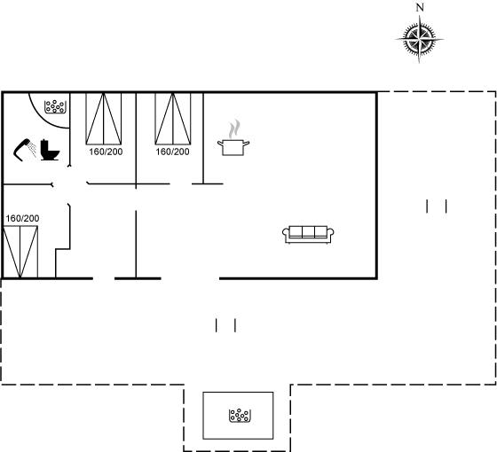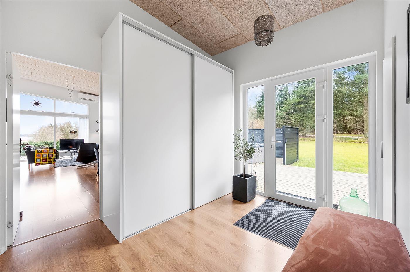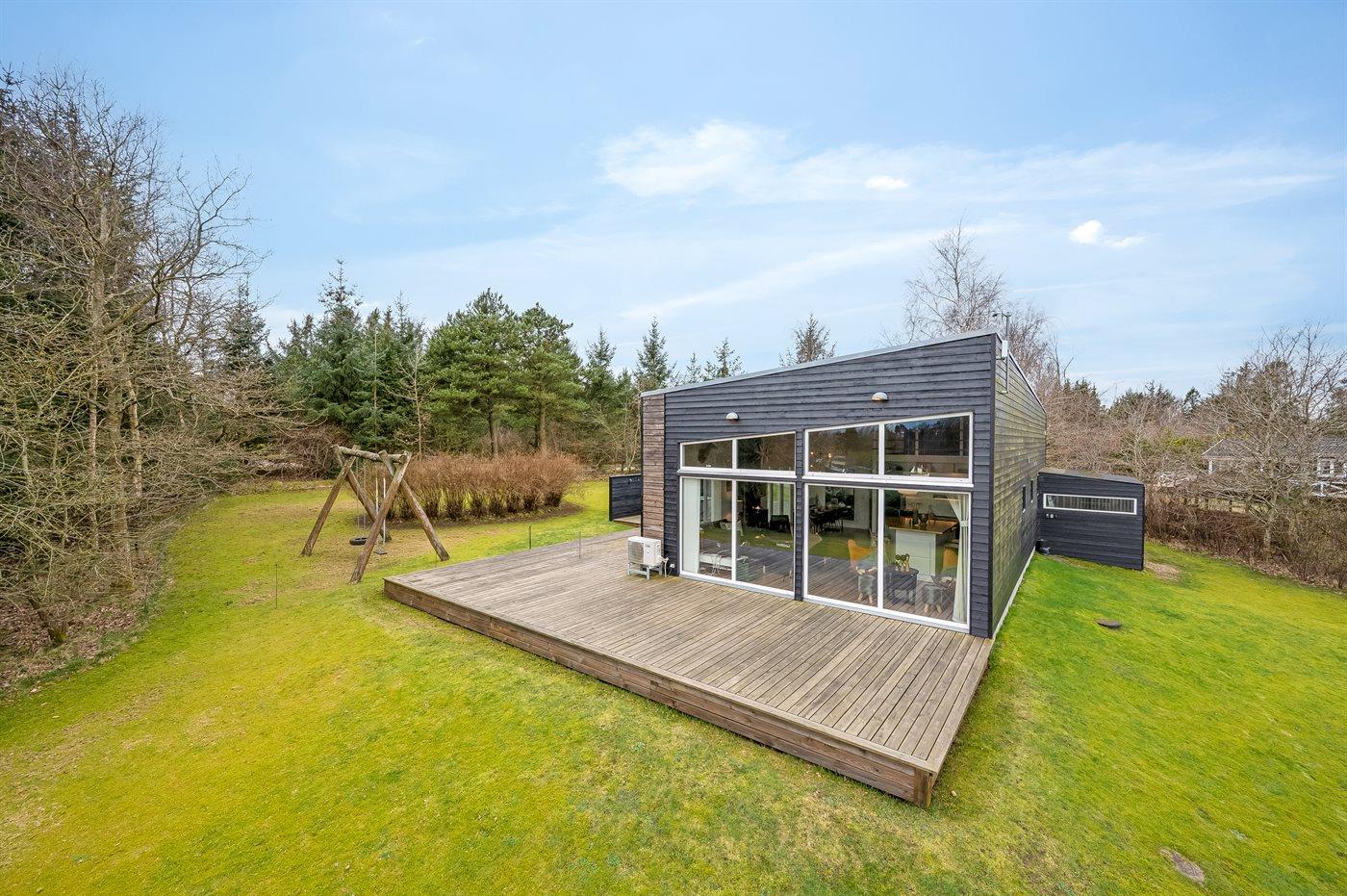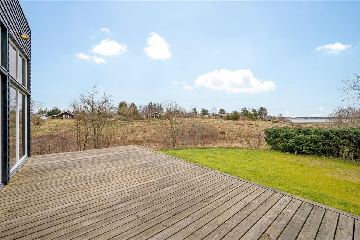 De vakantiewoning is gelegen op een 1680 m² groot natuural grond. Afstand tot de fjord 250 m. Dichtstbijzijnde winkel 3000 m. Er is een golfbaan op een afstand van 7000 m. Bij de vakantiewoning hoort 125 m² terras. Schommel. Parkeerplaats bij het huis.