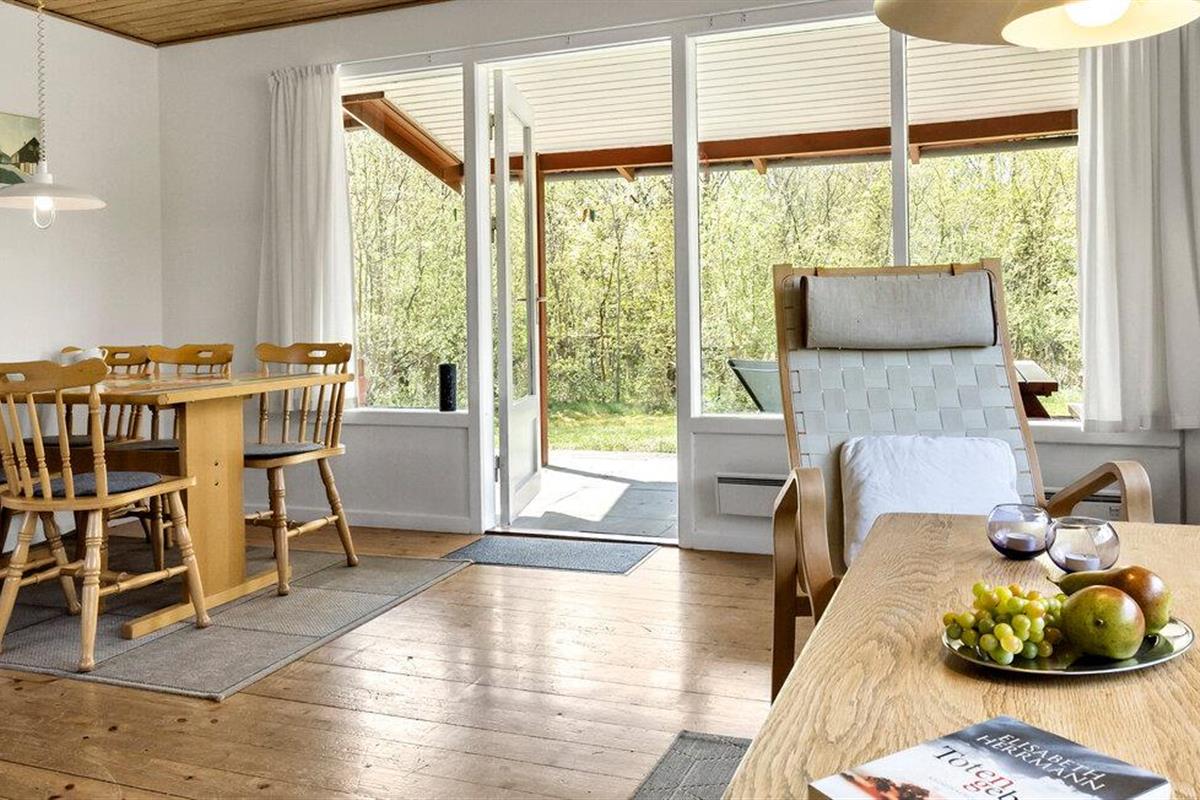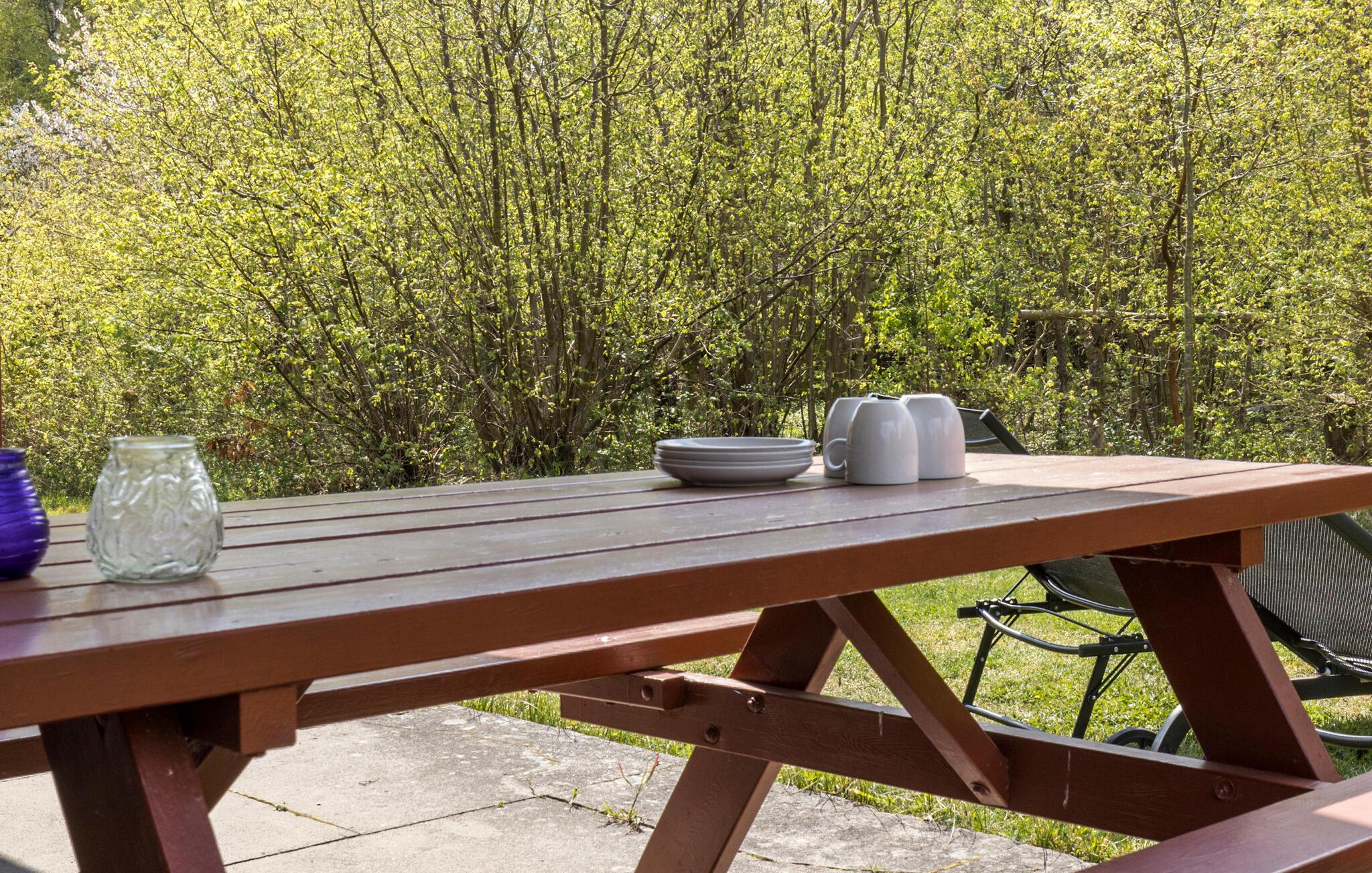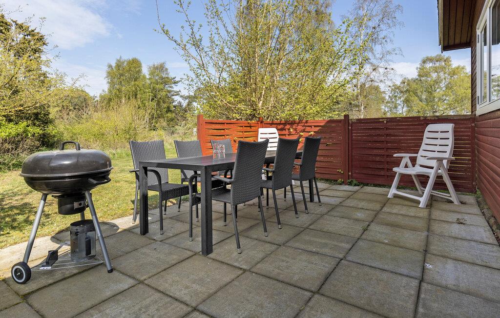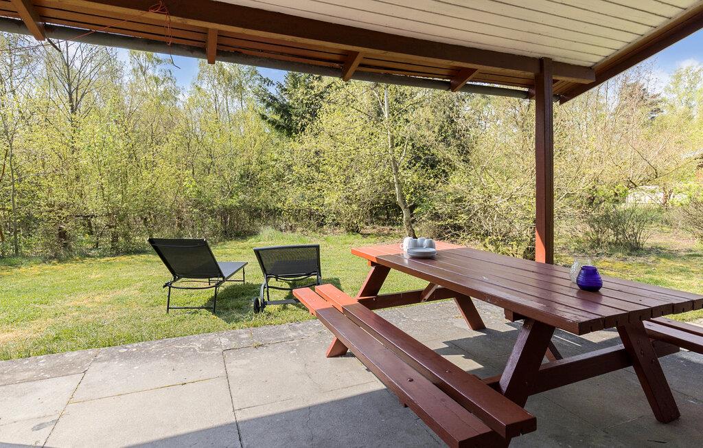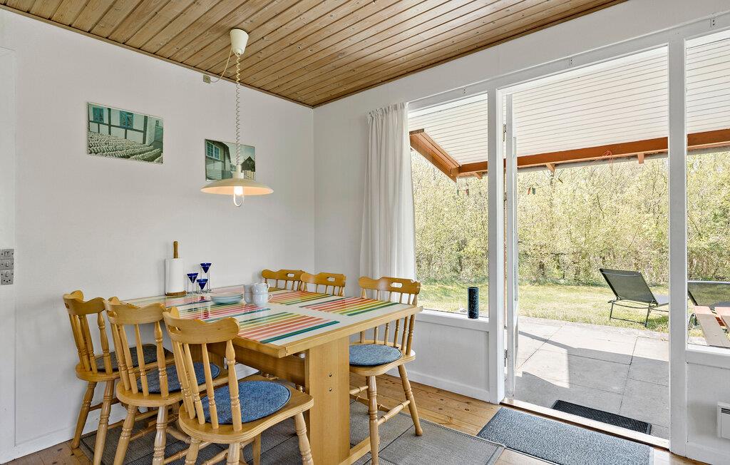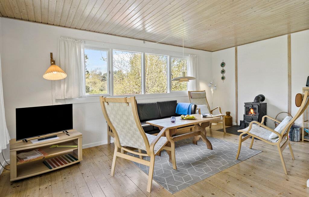 Breng je volgende vakantie door in dit vakantiehuis in Strandmarken. Deel je dag in met uitstapjes naar het strand, ontspannen uren op het terras of een gezellige avond bij de houtkachel in de woonkamer. Het houten vakantiehuis in klassieke landhuisstijl is genesteld in een groene omgeving, omgeven door hoge bomen die je een rustige en privé sfeer bieden. Binnen in het huis vind je een comfortabel en functioneel interieur met een verscheidenheid aan meubels. De ruime woonkamer biedt directe toegang tot het terras, waar je de dag kunt beginnen of eindigen in een ontspannen sfeer.