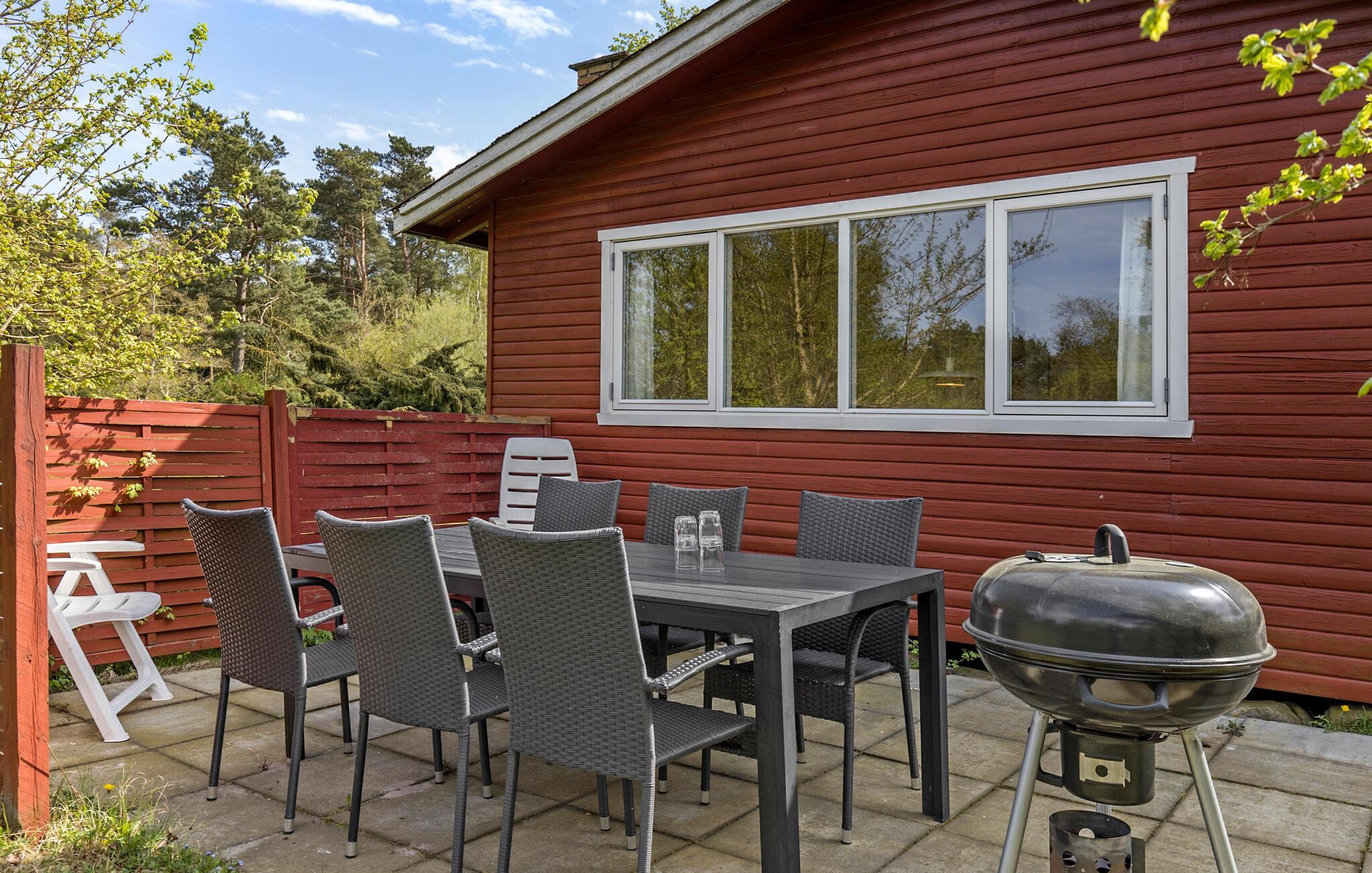 Comfortabel houten vakantiehuis in Strandmarken, Bornholm, dichtbij zee en omgeven door natuur.