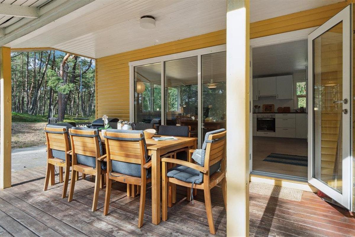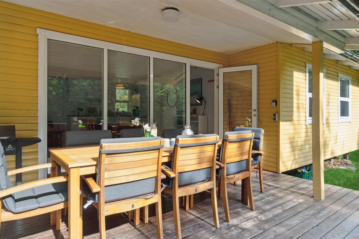 Vanuit de woonkamer heeft u toegang tot een groot, gedeeltelijk overdekt houten terras met loungemeubilair en een barbecue voor gezellige zomeravonden. Het terras is de perfecte plek om te zonnen, van de frisse lucht te genieten, te lezen of uw favoriete drankje te drinken. Er is veel ruimte voor de kinderen om te spelen en actief te zijn op het omliggende natuurlijke perceel.