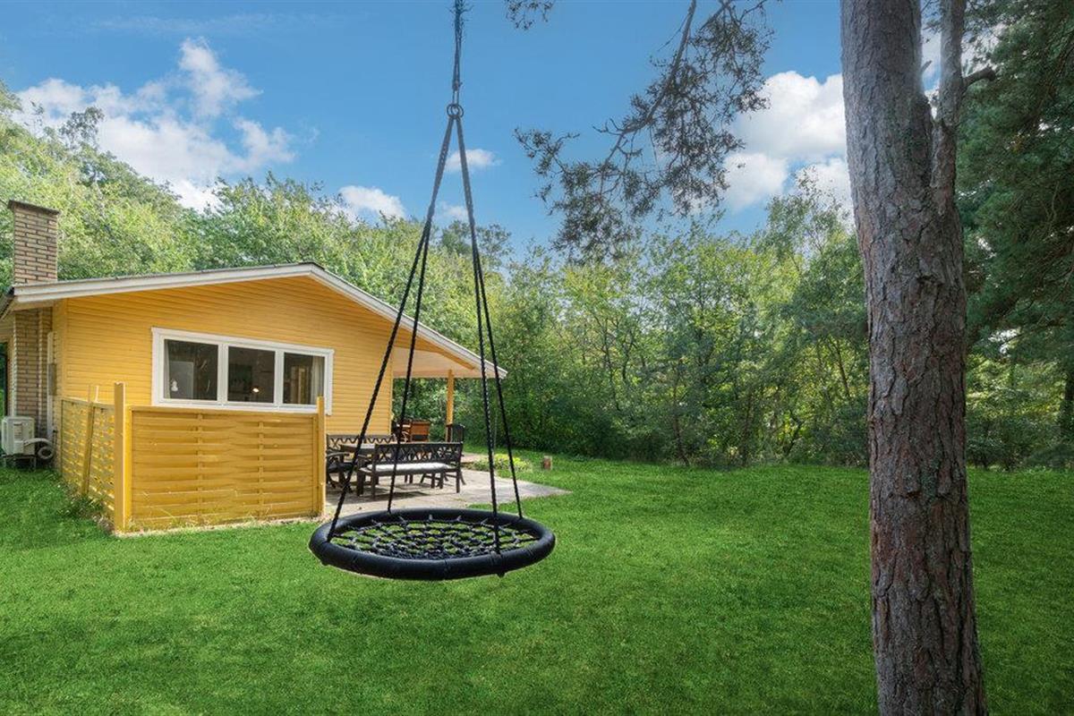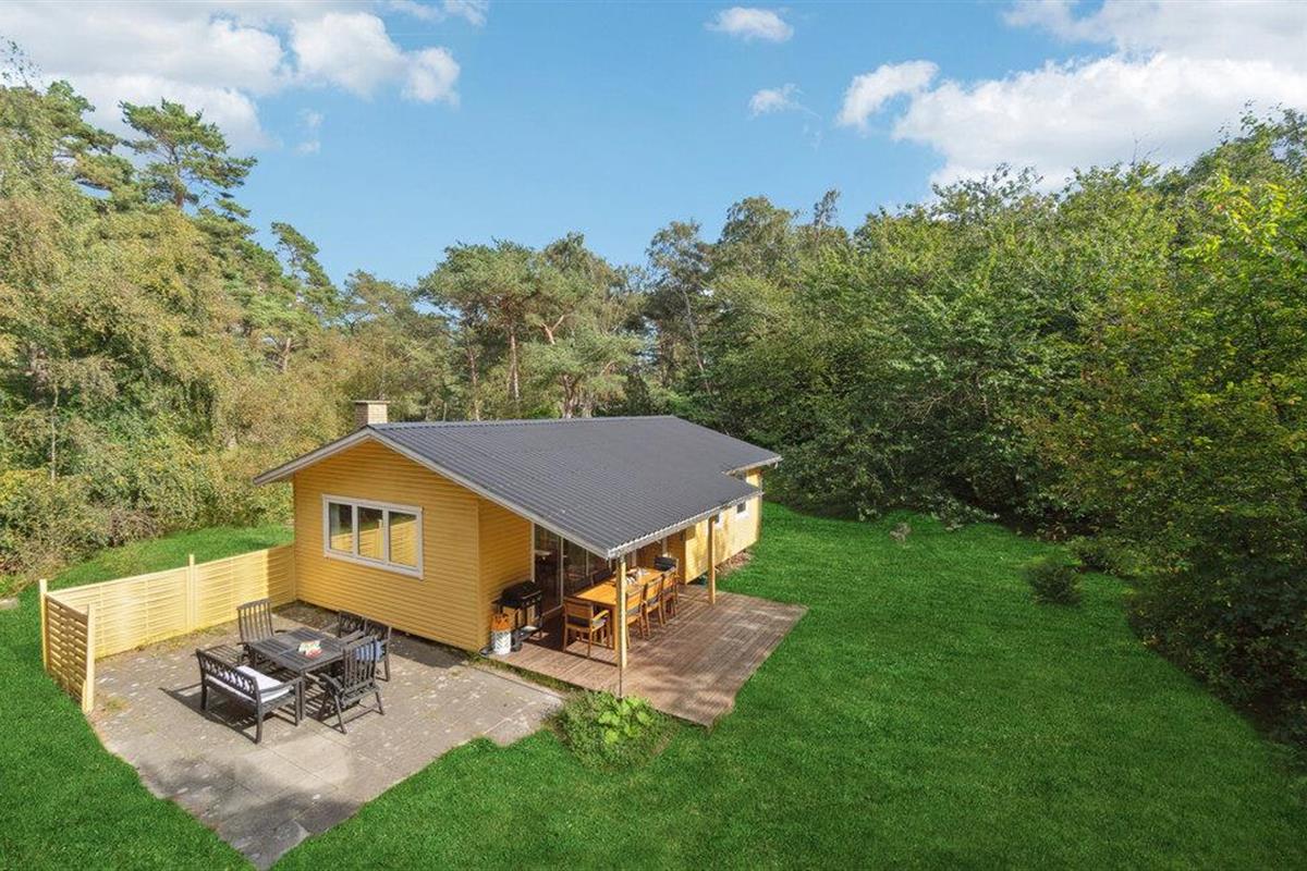 Mooi houten huis op groot, afgelegen natuurgrondstuk op slechts 200 m van het mooie zandstrand.