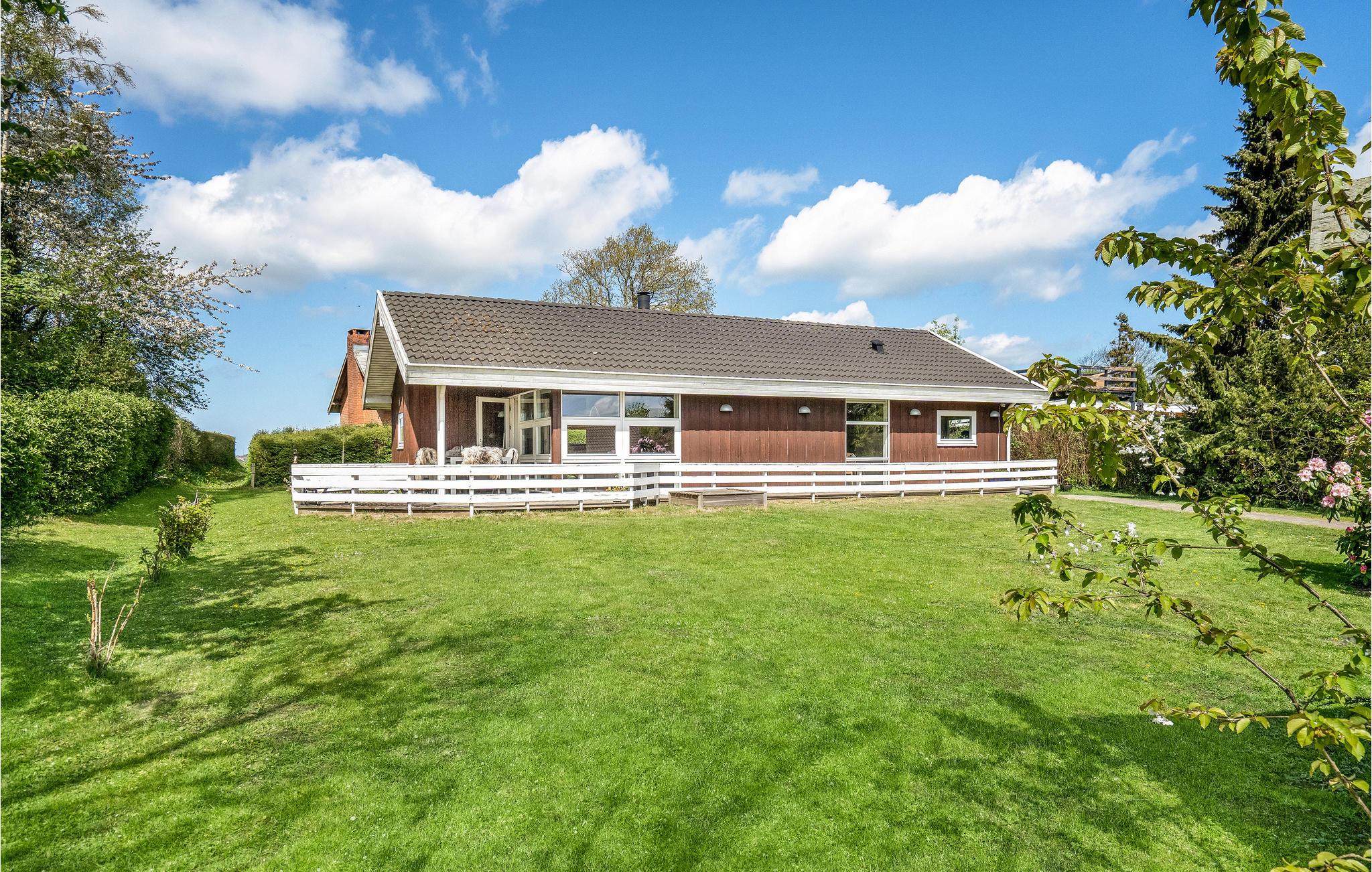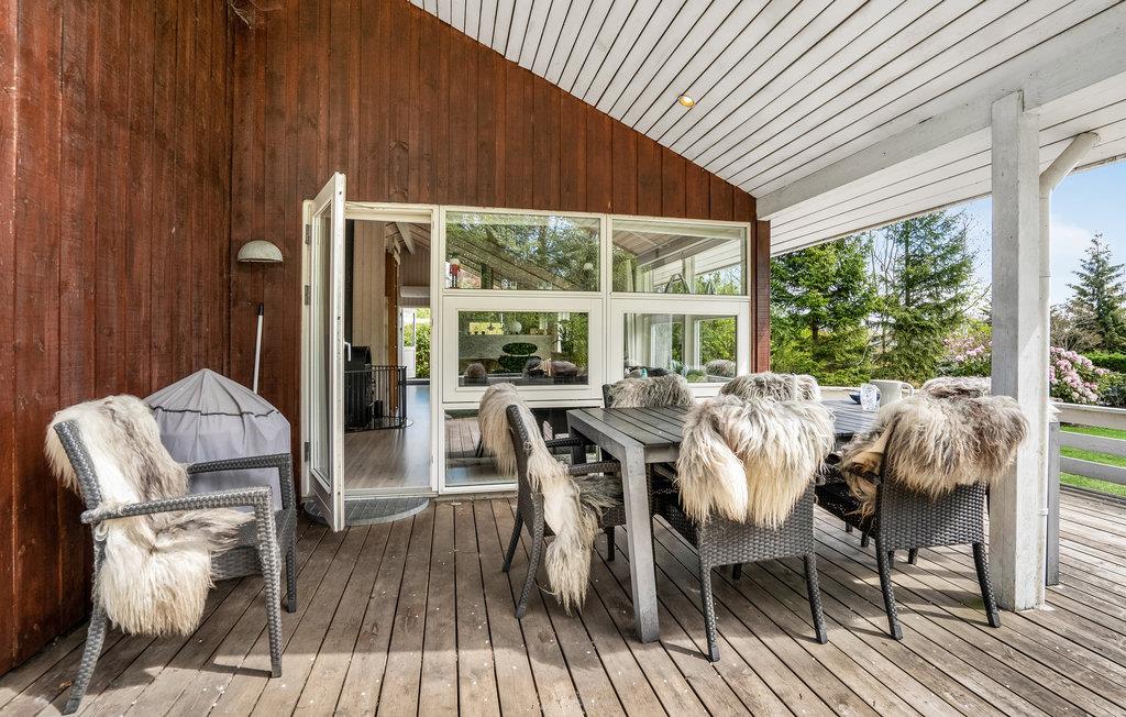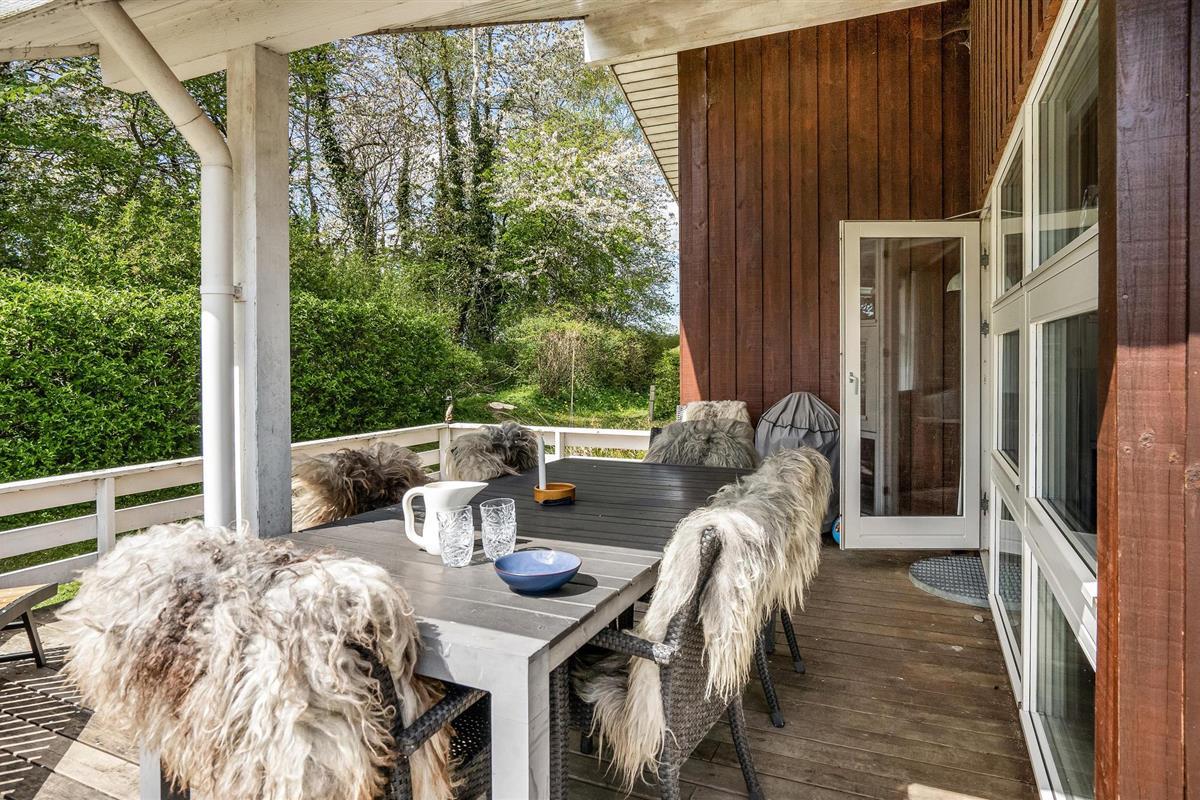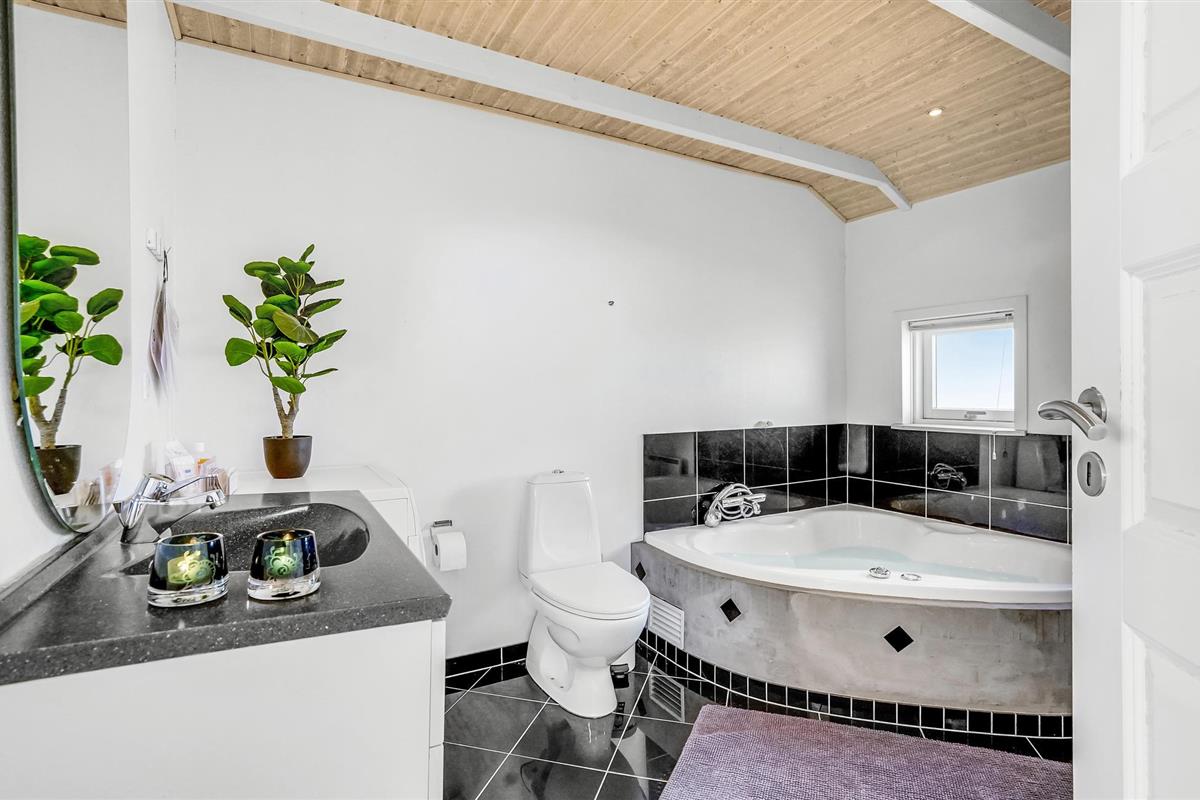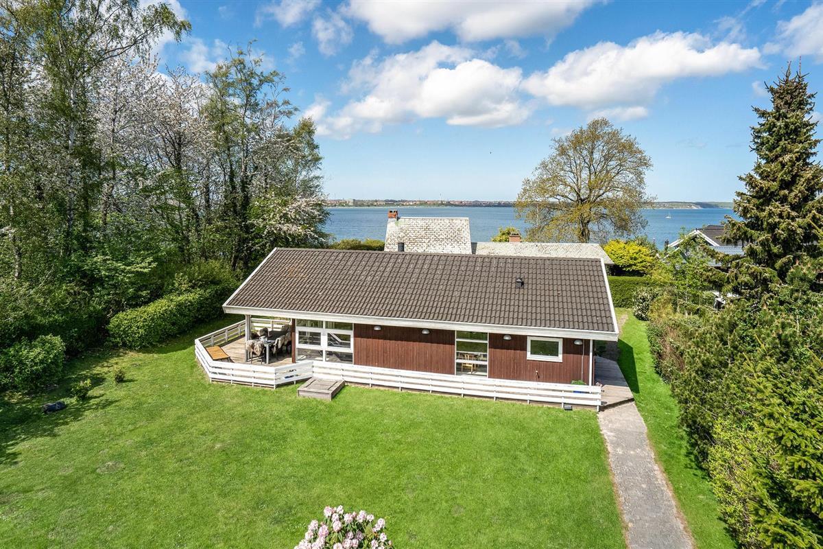 Dit mooie vakantiehuis ligt hoog in de mondaine wijk aan Strib Strand. Het huis heeft verschillende mooie terrasgedeeltes, waarvan één overdekt. Het is dus altijd mogelijk om een windvrij hoekje te vinden. Het vakantiehuis heeft een mooie woonkamer met een houtkachel. Naast de woonkamer ligt de open, goed uitgeruste keuken. De mooie badkamer van het huis heeft zowel een whirlpool als een sauna, zodat het lichaam verwend kan worden. Overal in het vakantiehuis en op het terras kunt u comfortabel gebruik maken van de snelle internetverbinding. Het vakantiehuis ligt op slechts enkele minuten lopen van het familievriendelijke strand. Een trap leidt naar het strand.
