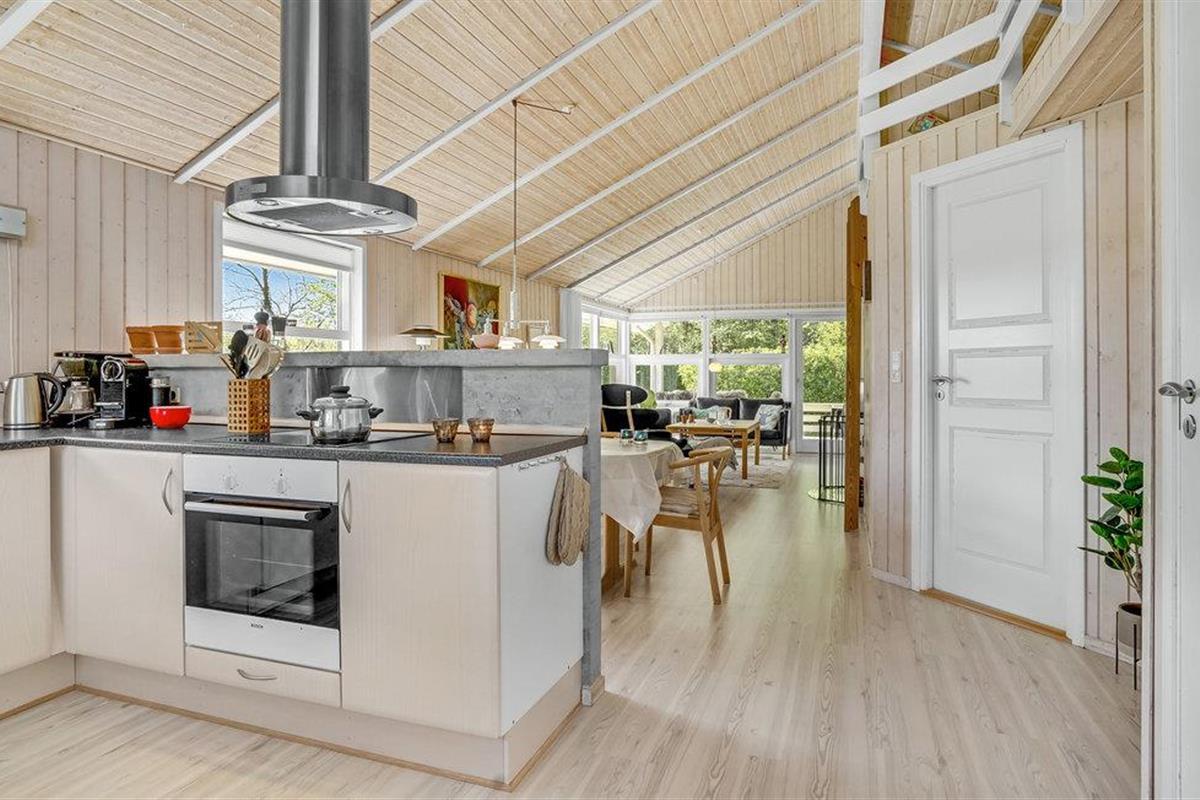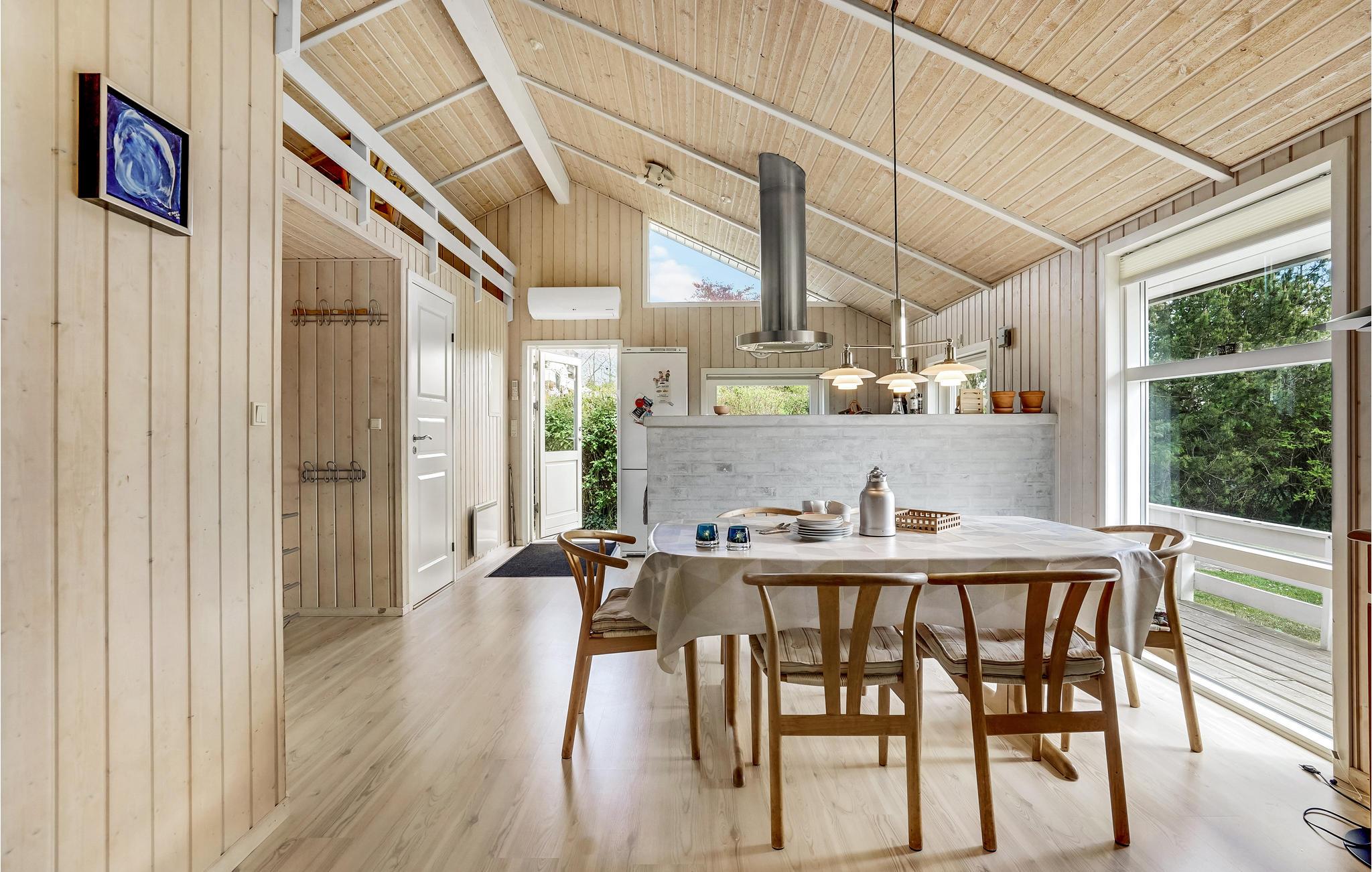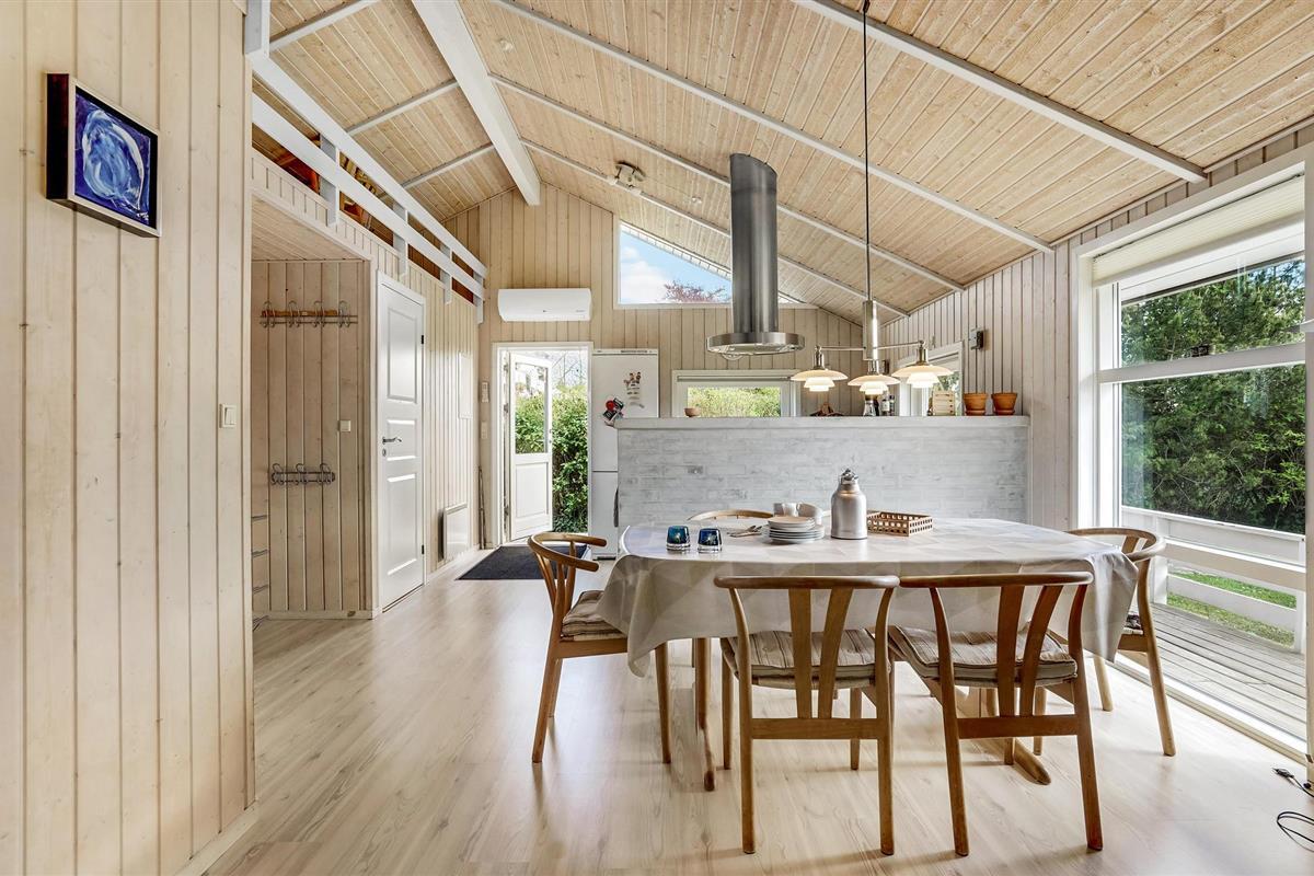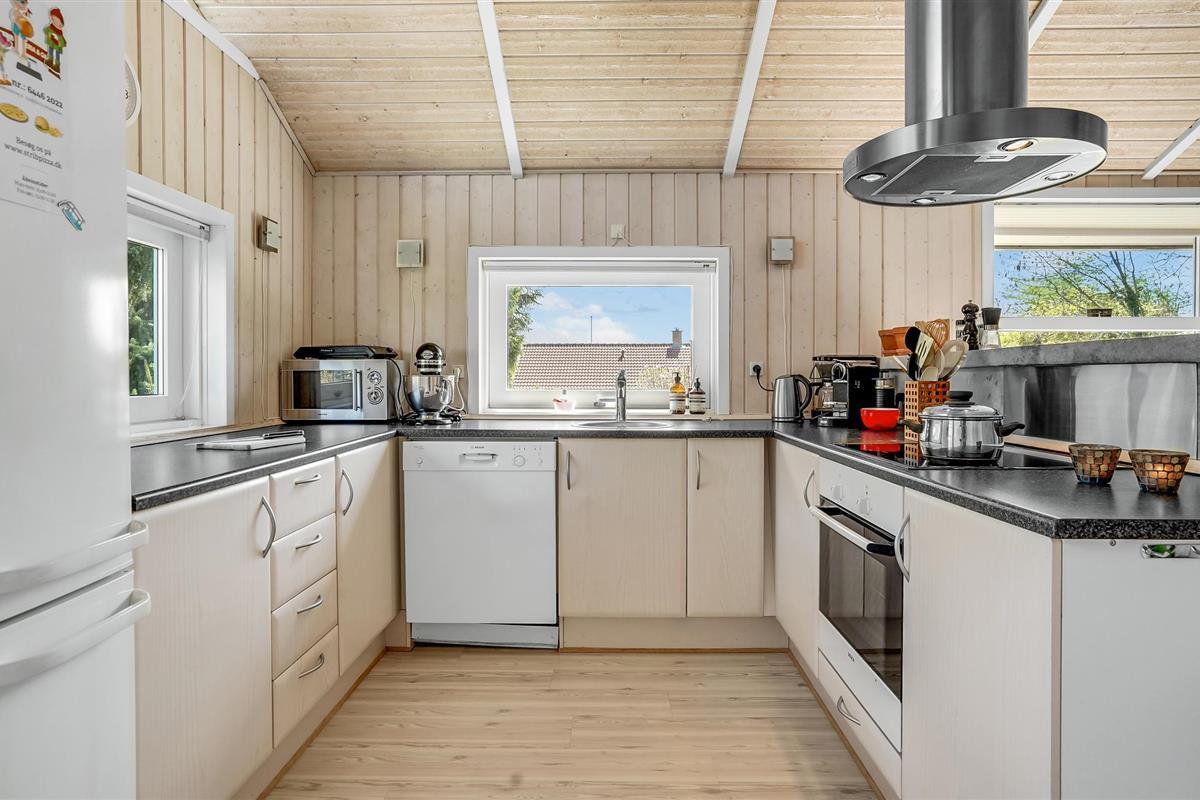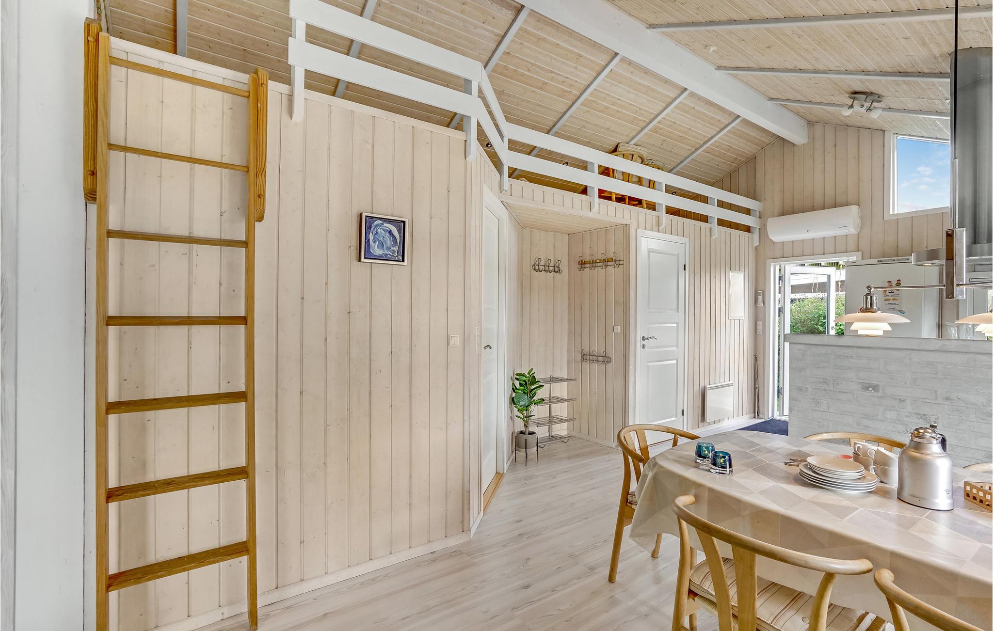 Dit mooie vakantiehuis ligt hoog in de mondaine wijk aan Strib Strand. Het huis heeft verschillende mooie terrasgedeeltes, waarvan één overdekt. Het is dus altijd mogelijk om een windvrij hoekje te vinden. Het vakantiehuis heeft een mooie woonkamer met een houtkachel. Naast de woonkamer ligt de open, goed uitgeruste keuken. De mooie badkamer van het huis heeft zowel een whirlpool als een sauna, zodat het lichaam verwend kan worden. Overal in het vakantiehuis en op het terras kunt u comfortabel gebruik maken van de snelle internetverbinding. Het vakantiehuis ligt op slechts enkele minuten lopen van het familievriendelijke strand. Een trap leidt naar het strand.