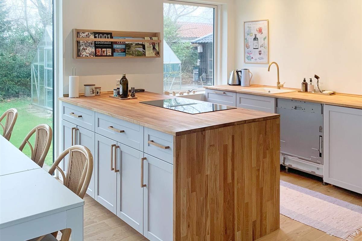 Das 1972 erbaute Ferienhaus ist komfortabel eingerichtet und verfügt über eine Küche, die offen mit dem Wohnzimmer kombiniert ist. Die Küche enthält u.a. Induktionsherd, separaten Backofen, Kaffeemaschine und Kühl-/Gefrierschrank sowie Geschirrspüler und Waschmaschine. Im Wohnbereich gibt es einen Fernseher mit Chromecast und Internet sowie eine klimafreundliche Luft/Luft-Wärmepumpe. Im Ferienhaus außerdem drei Schlafzimmer mit Doppelbett und Heizkörper. Im Badezimmer Dusche und WC.