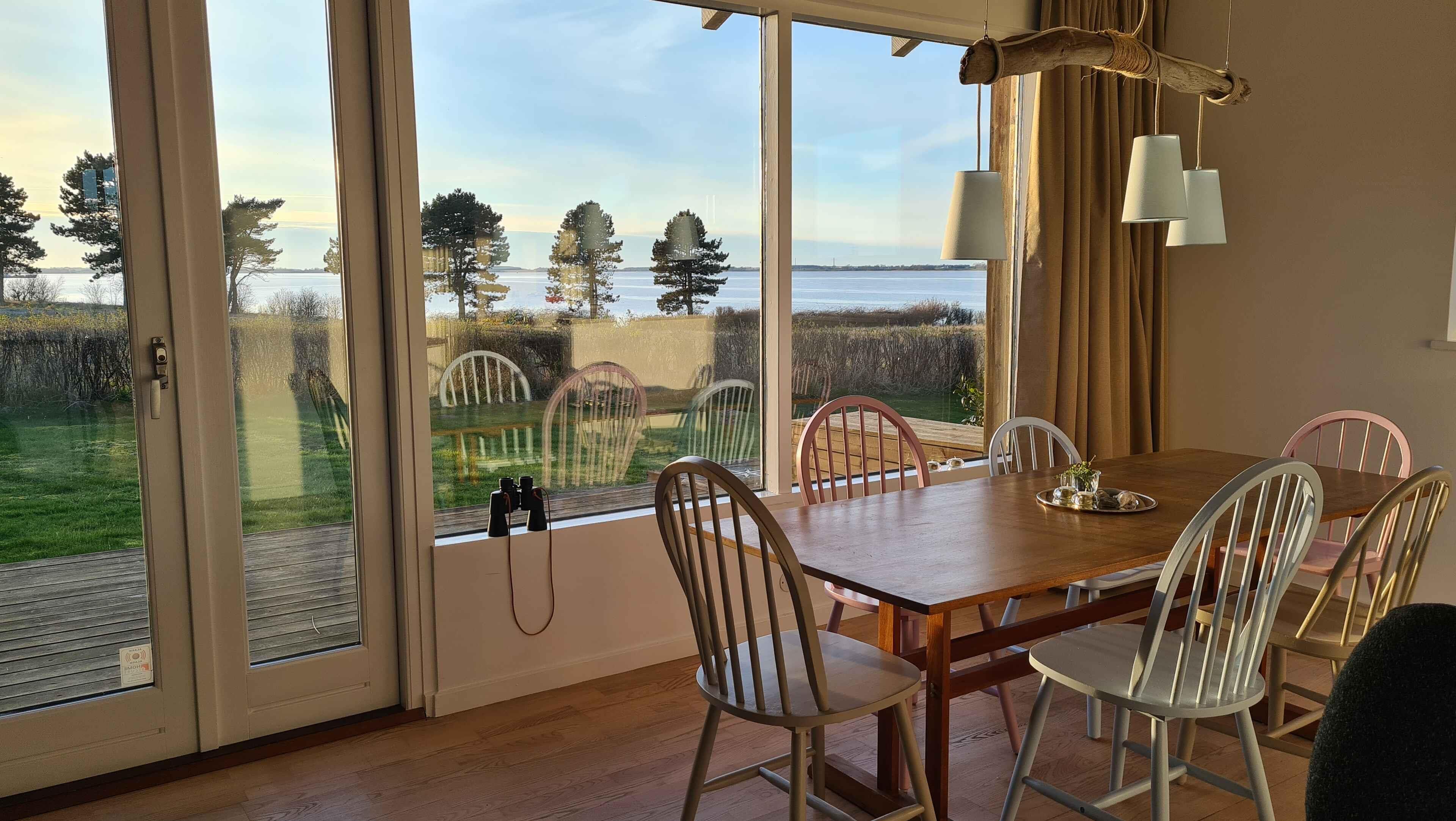 De zonsondergang boven Grønsund is absoluut uniek. Geniet van het fascinerende en directe uitzicht over het water vanaf het grote houten terras of vanuit de ruime en goed ingerichte woonkamer. Het recent gerenoveerde zomerhuis is ingericht met een maritiem thema in lichte en uitnodigende kleuren. Het leven is gewoon het beste wanneer je van de zon geniet op het gedeeltelijk overdekte houten terras van 78m², waar je altijd beschutting, privacy - en natuurlijk uitzicht op zee vindt. Of geniet van de maaltijd binnenshuis aan de grote eettafel en ontspan in een van de gezellige hoekjes van het huis, terwijl je voortdurend een oogje houdt op het unieke en prachtige uitzicht over het water naar Bogø en Møn. Loop slechts 50 meter naar het water en geniet van het privéstrand met steiger, waar je het hele jaar door kunt zwemmen. Loop verder langs het strand 2 km naar de prachtige oude koopstad, Stubbekøbing, vanwaar de veerboot Ida in de zomer naar Bogø vaart. Sunset Lodge is de perfecte uitvalsbasis voor uitstapjes naar bijvoorbeeld Hesnæs, Knuthenborg of Møns Klint. Hier krijg je een heerlijk, recent gerenoveerd huis, met gezellige accenten en de nadruk op de nabijheid van het water. Let op: Niet te huur voor commercieel gebruik.