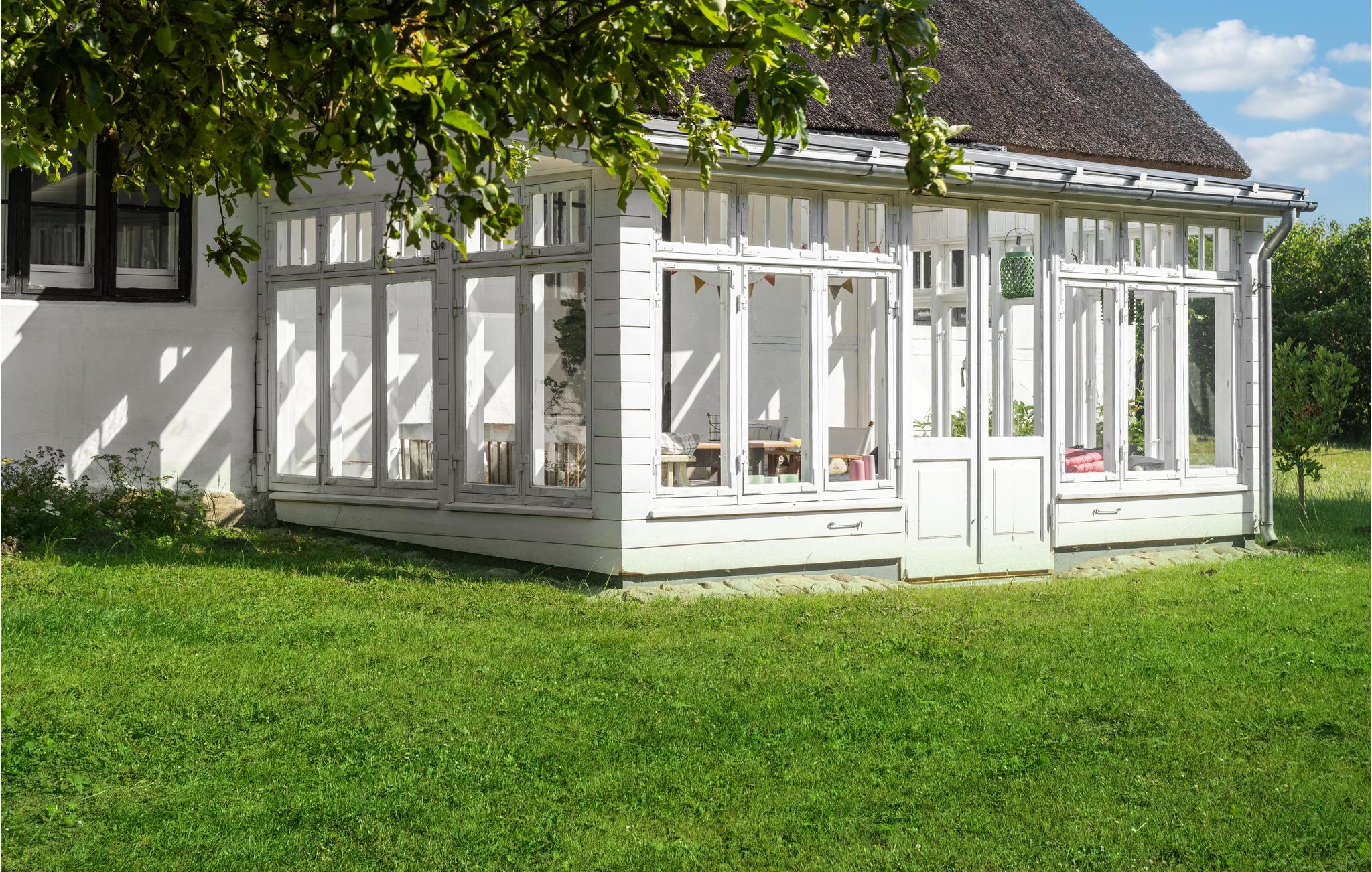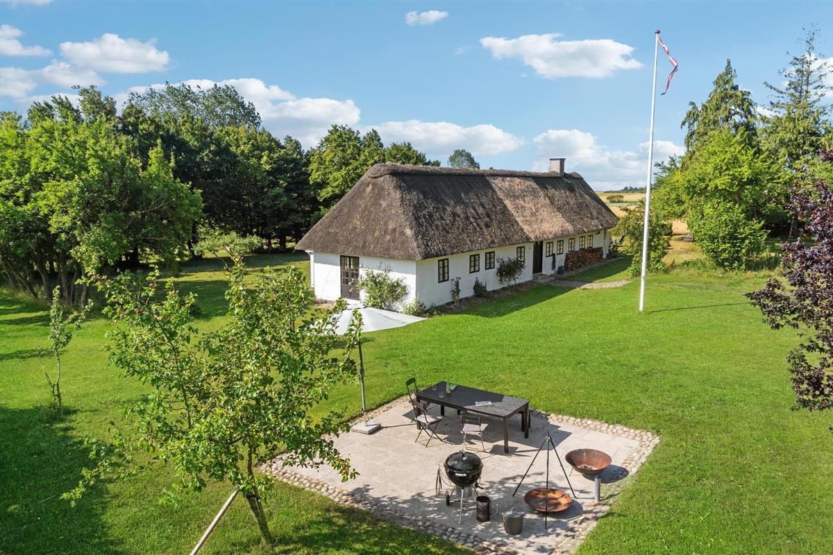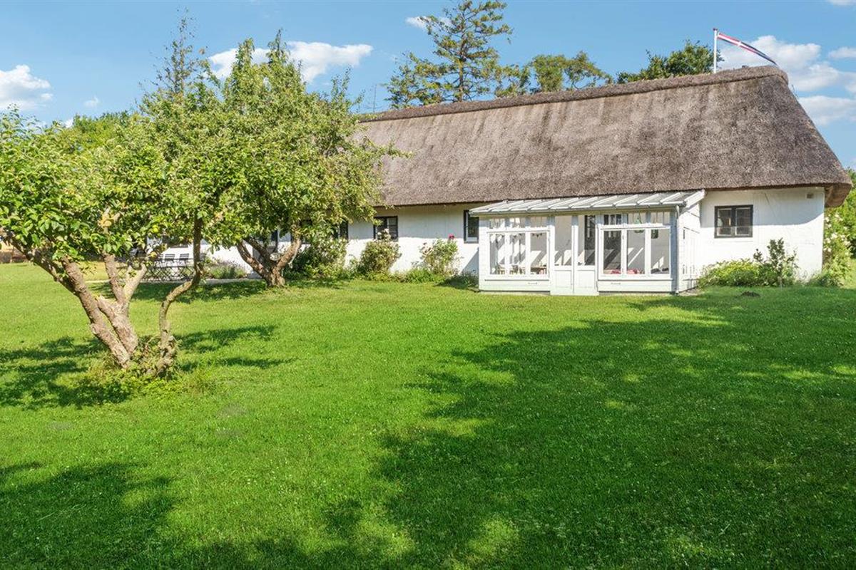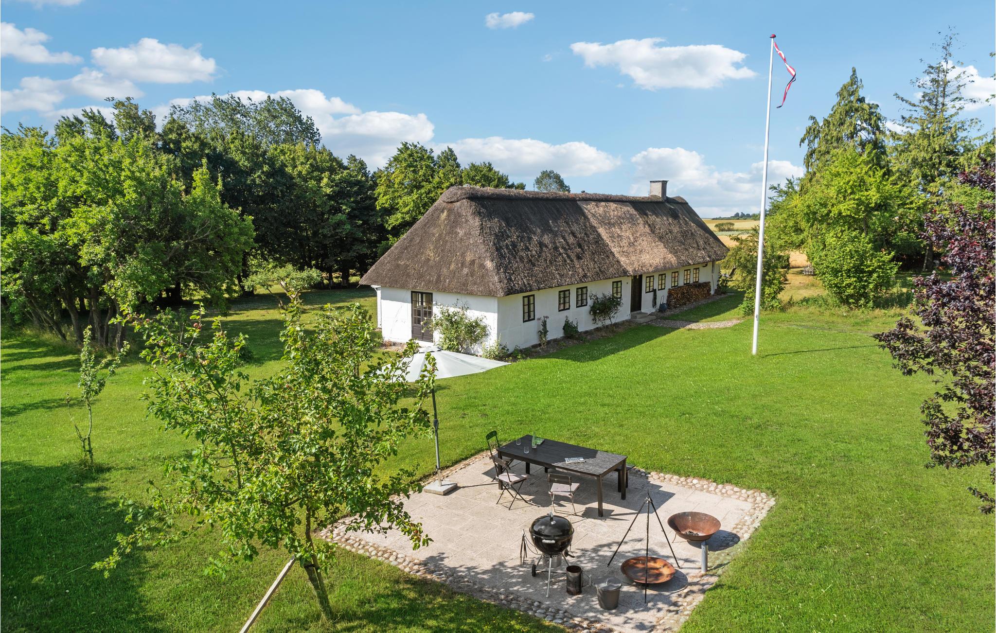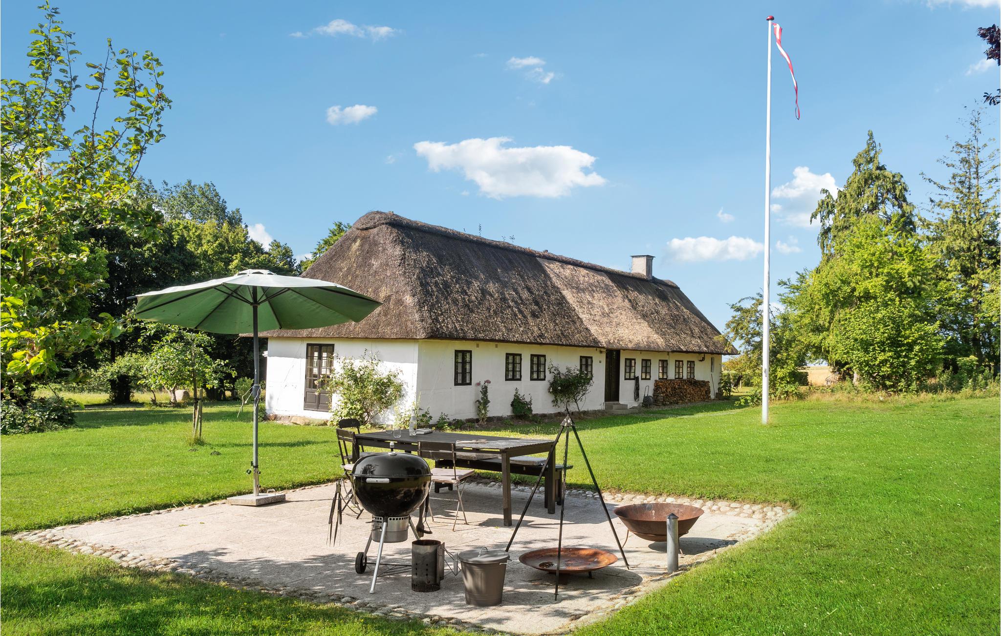 Geniet van rust en landelijke charme in dit rietgedekte vakantiehuis met grote tuin nabij de zuidkust van Lolland.