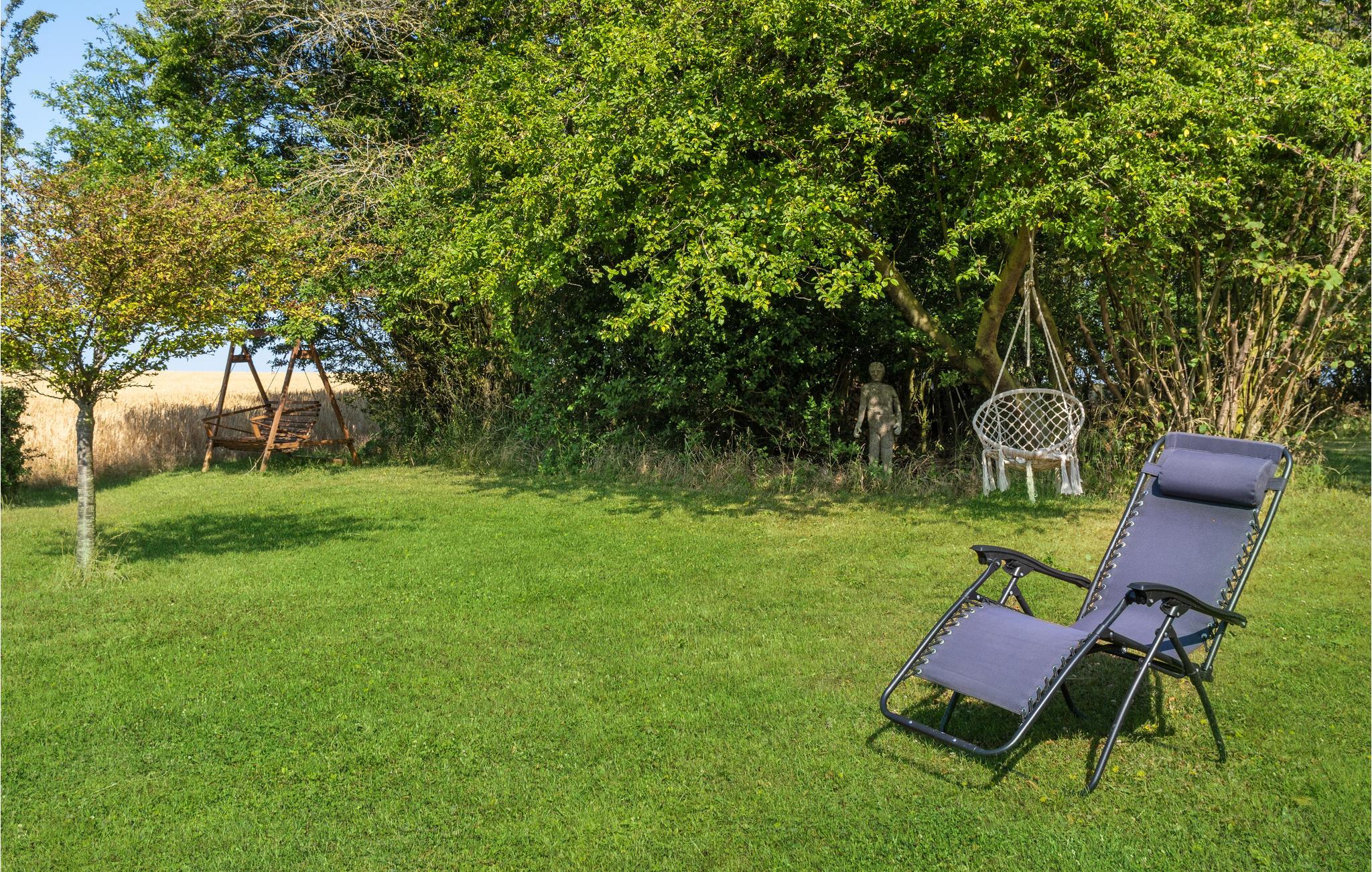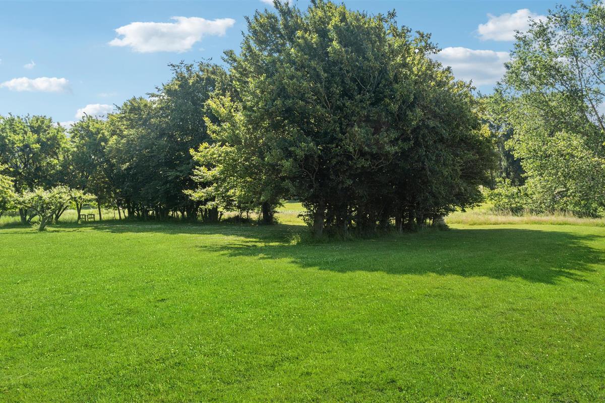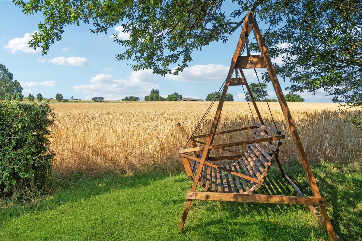 De prachtige tuin biedt verschillende oude bomen en gezellige zitjes die uitnodigen om te blijven hangen. Strijk neer aan de tuintafel met een vers gezette ochtendkoffie of geniet vanaf het bankje van het uitzicht op de velden - misschien komen er wel reeën voorbij? Dankzij de uitgebreide groenvoorziening is de tuin zeker een favoriete speelplaats voor de kinderen.