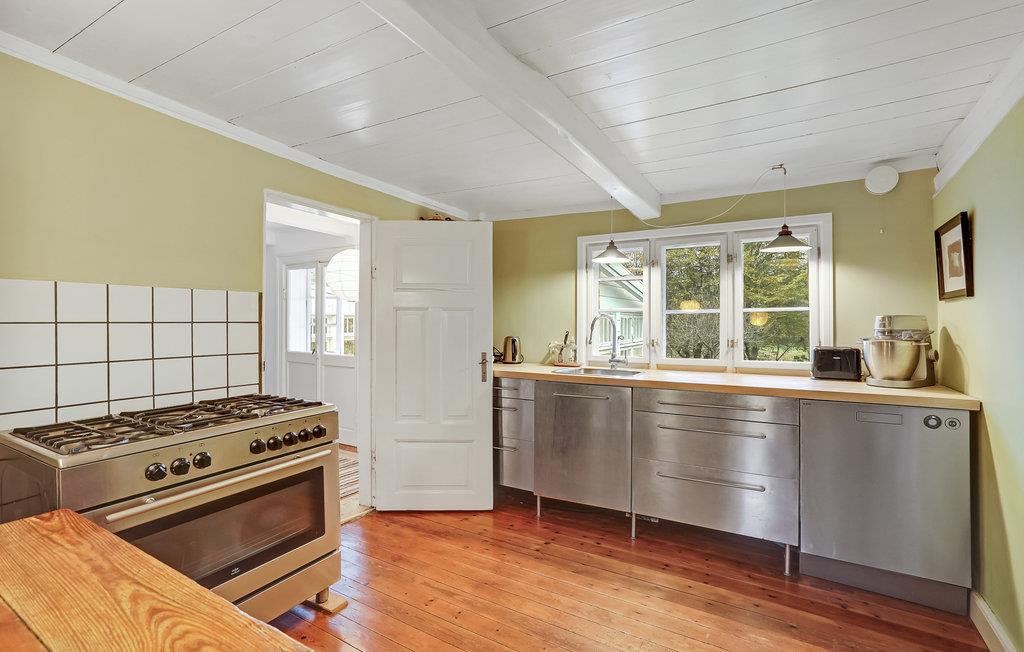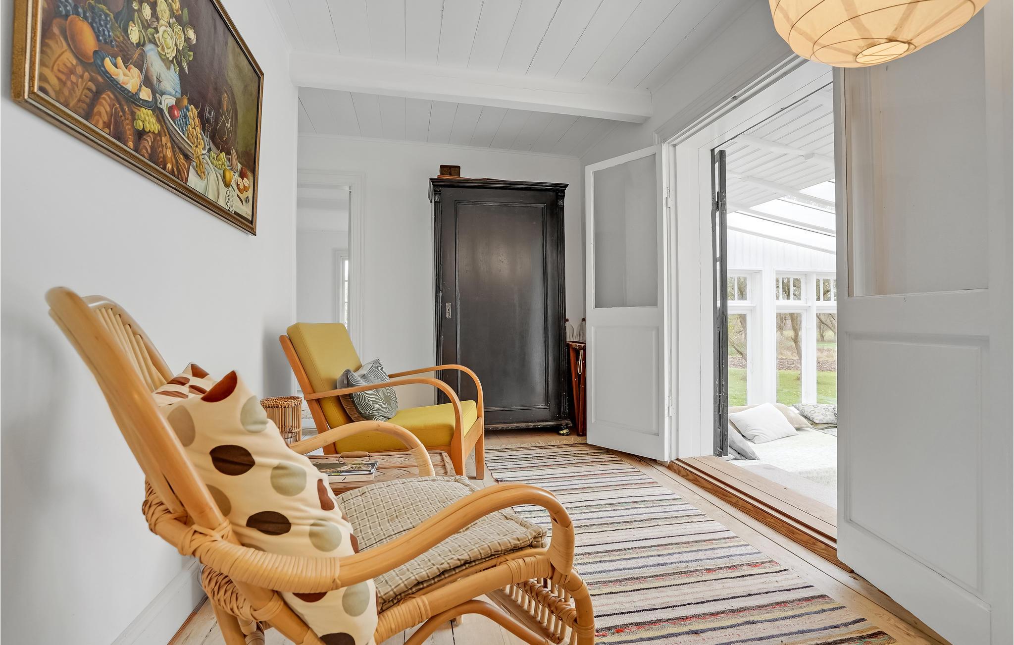 In een landelijke omgeving dicht bij de zuidkust van het eiland Lolland verwelkomt dit mooie vakantiehuis u. Maak gebruik van de ruime, moderne keuken om samen te koken en breng sfeervolle avonden door voor de mooie, stenen open haard. De mooie serre is de perfecte plek voor ontspannen leesuurtjes en u kunt af en toe genieten van het uitzicht op de omgeving.