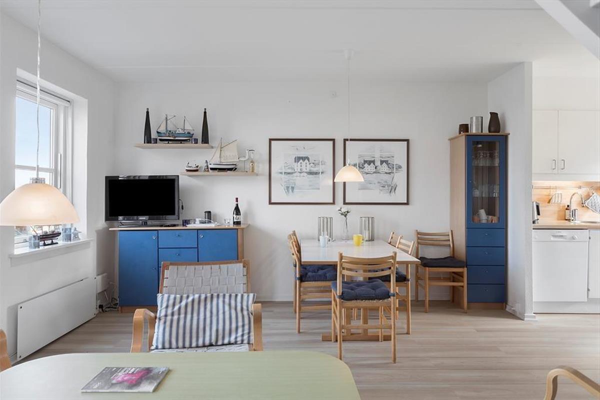 Die Wohnung verfügt im Erdgeschoss über eine schöne Terrasse mit guten Gartenmöbeln, auf der Sie Ihre Mahlzeiten und die warmen Abende genießen können. Von der Wohnung aus haben Sie einen schönen Blick auf den Yachthafen und sind nah am Strand. Durch die gute Lage können Sie auf der einen Seite der Wohnung frischen Fisch kaufen und auf der anderen Seite der Wohnung können Sie Ihren Fisch selbst auf der Terrasse genießen.