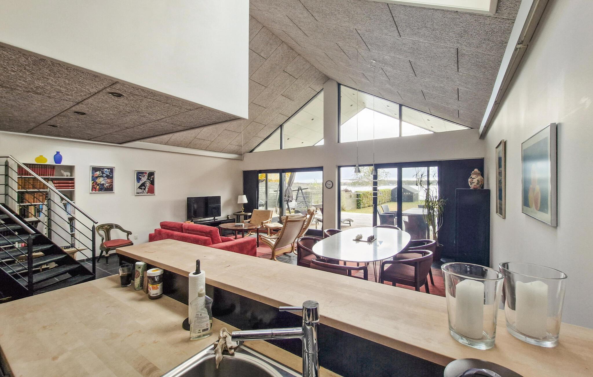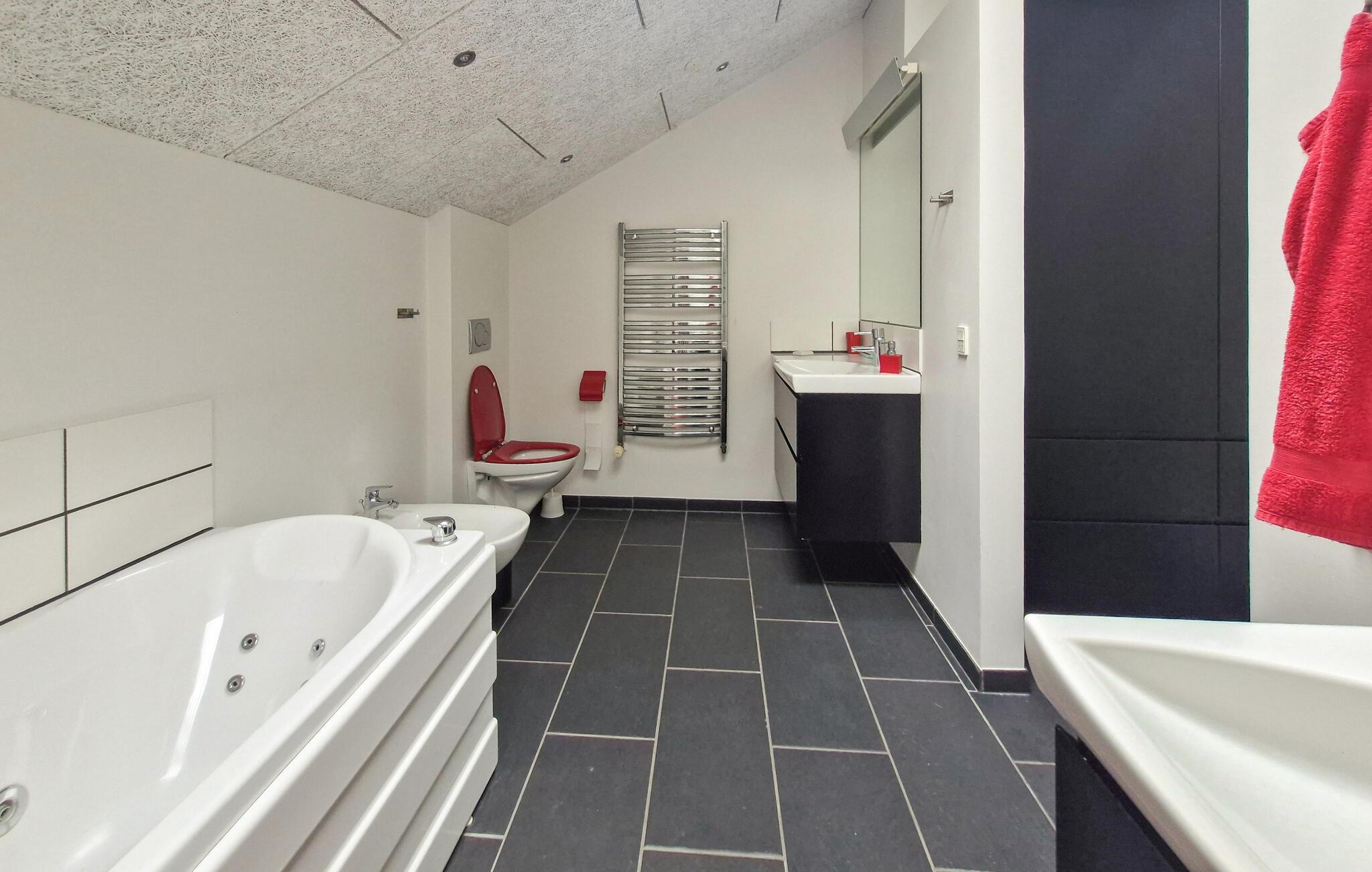 Geniet van je verblijf in dit uitzonderlijke vakantiehuis, dat indruk maakt met zijn heldere architectuur en directe ligging aan het water. Stap binnen en laat je imponeren door het ruime interieur. De hoge plafonds, grote vensterpuien en open woonruimte creëren een lichtdoorstroomde sfeer. Maak het jezelf gemakkelijk op de gezellige zithoek en geniet van het uitzicht op het meer. De moderne keuken is elegant geïntegreerd in de woonkamer en biedt alles wat je nodig hebt om te koken en samen van maaltijden te genieten. De eethoek met mooi meubilair nodigt je uit om te genieten van lange avonden met lekker eten en stimulerende gesprekken. Mooie materialen, kunst aan de muren en een whirlpool in de badkamer ronden de hoogwaardige ambiance af.