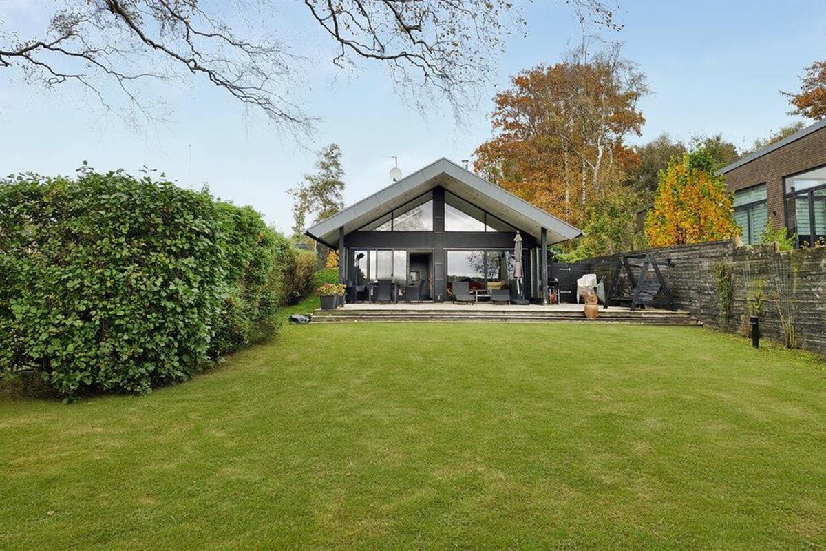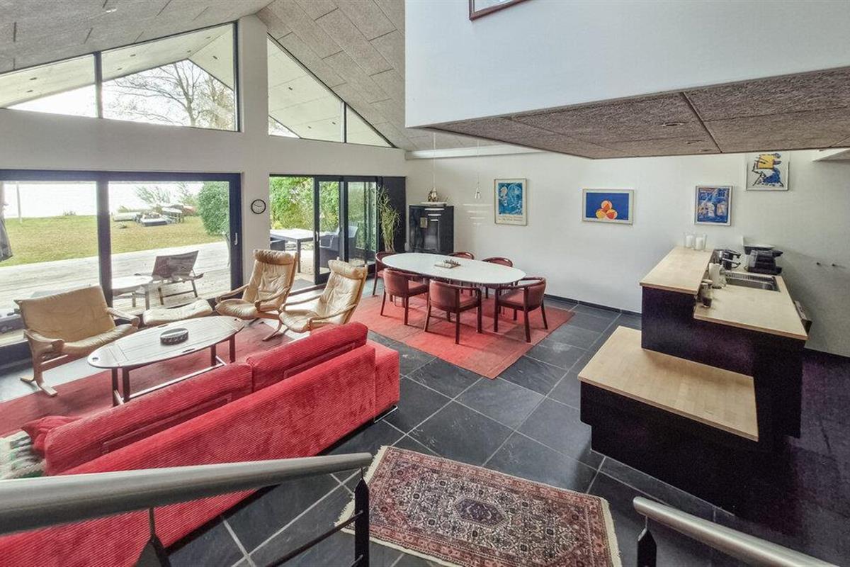 Geniet van dit moderne vakantiehuis bij Sunds Sø met panoramisch uitzicht, whirlpool en groot terras direct aan het water.