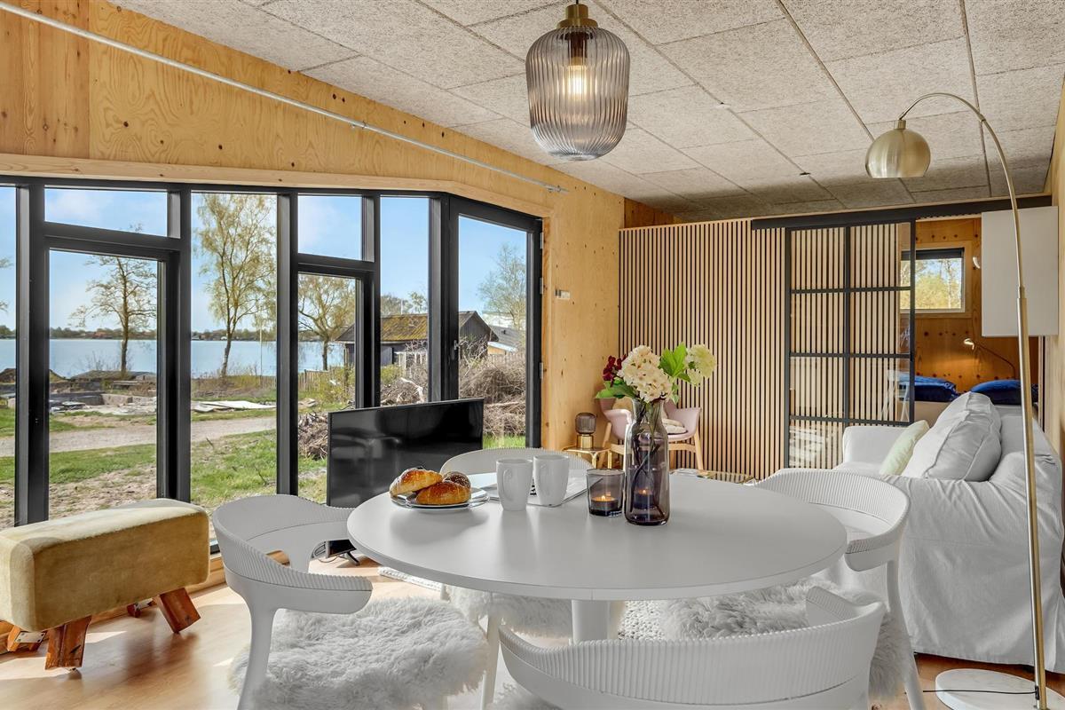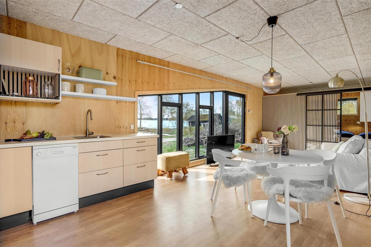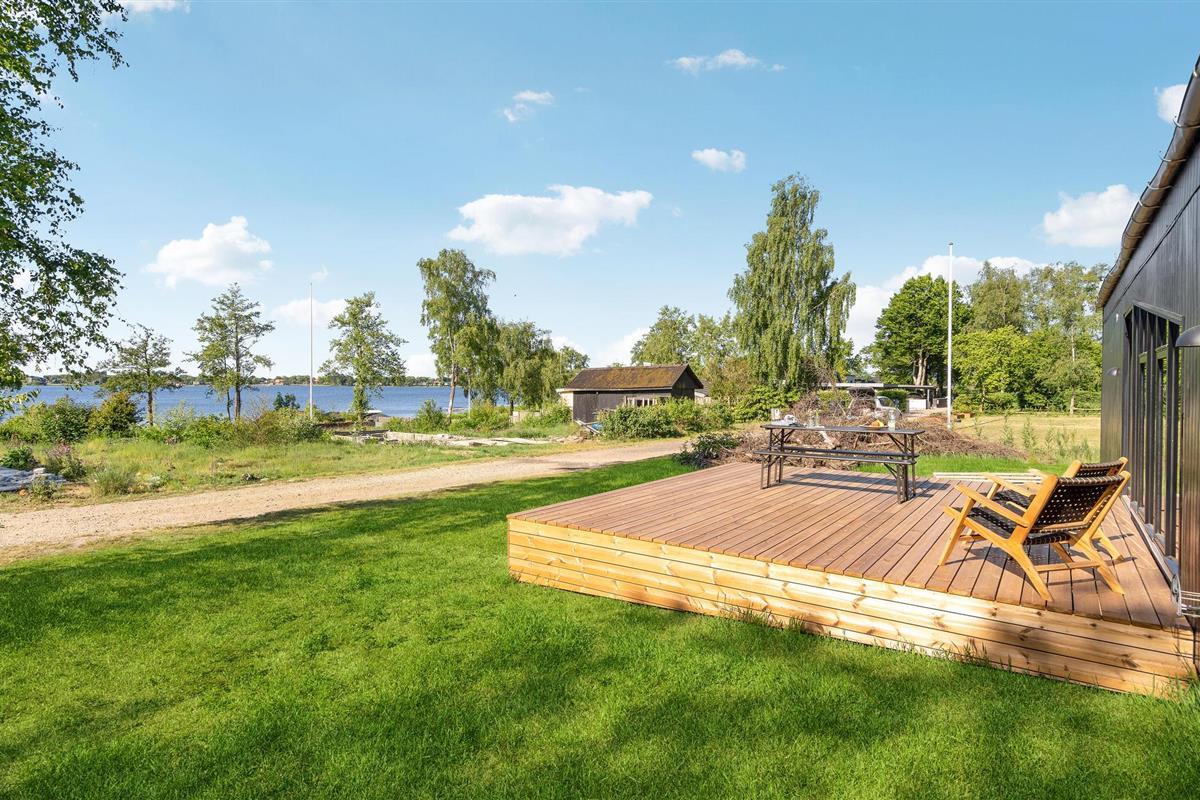 Comfortabel vakantiehuis aan Sunds Sø met uitzicht op het meer, modern interieur en groot terras voor een ontspannen verblijf.