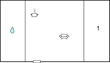 Woonkamer met open keuken - 2 Slaapplaatsen. (Opklapbed(den) of matras(sen)).