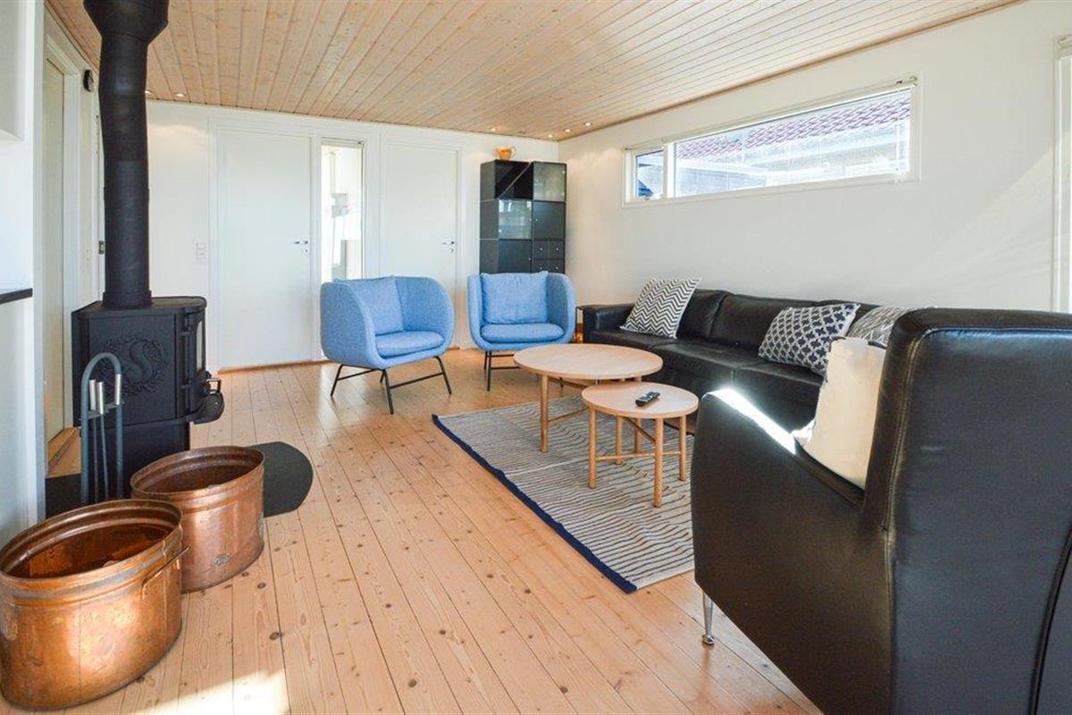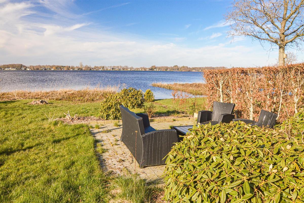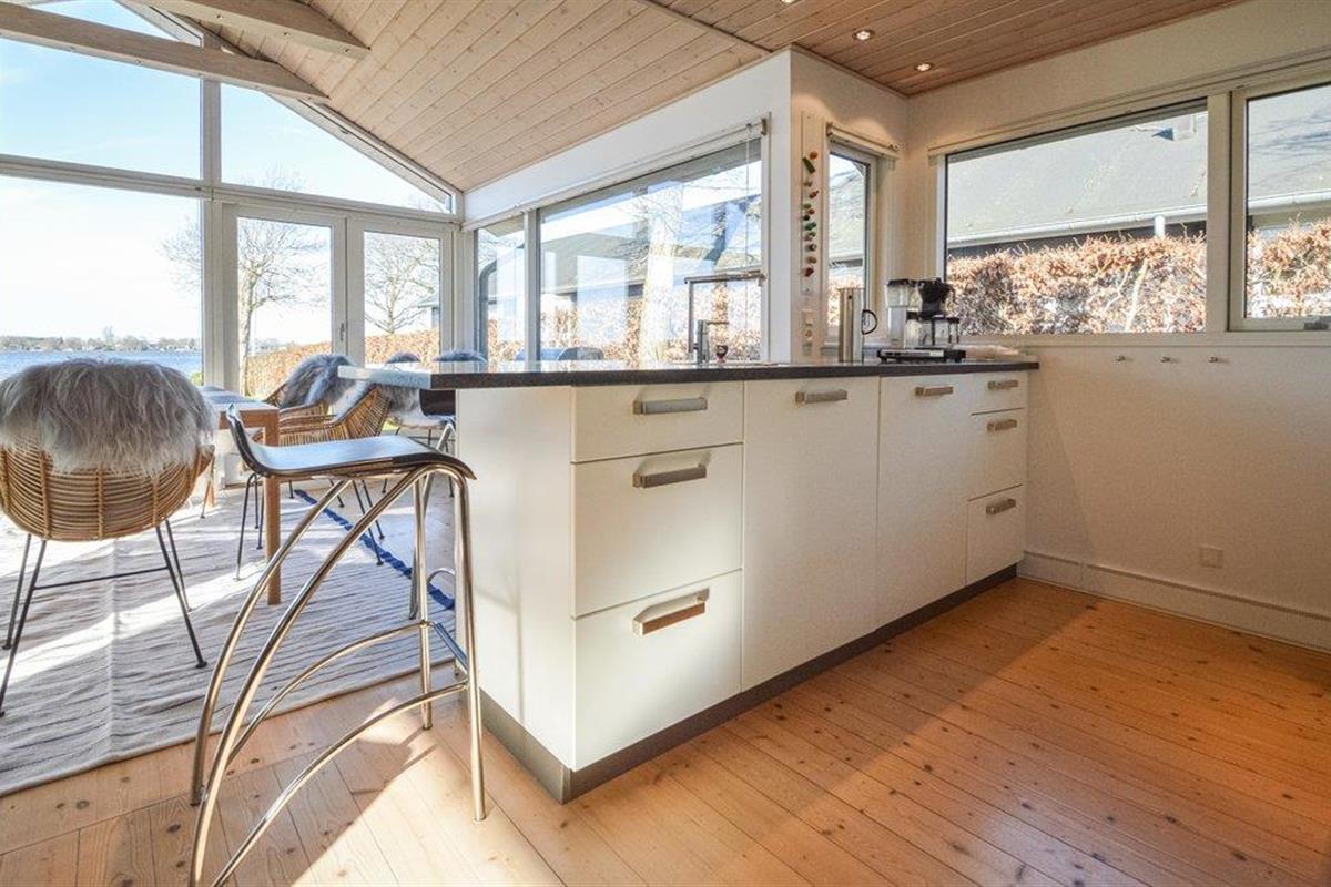 Geniet van het panoramische uitzicht vanuit de eetkamer of ontspan in de gezellige woonkamer met bank, fauteuils en houtkachel. Door het open ontwerp kunt u genieten van elkaars gezelschap terwijl u kookt in de lichte keuken en geniet van het uitzicht op het meer. Buiten heeft u twee heerlijke terrassen met tuinmeubilair en barbecue.