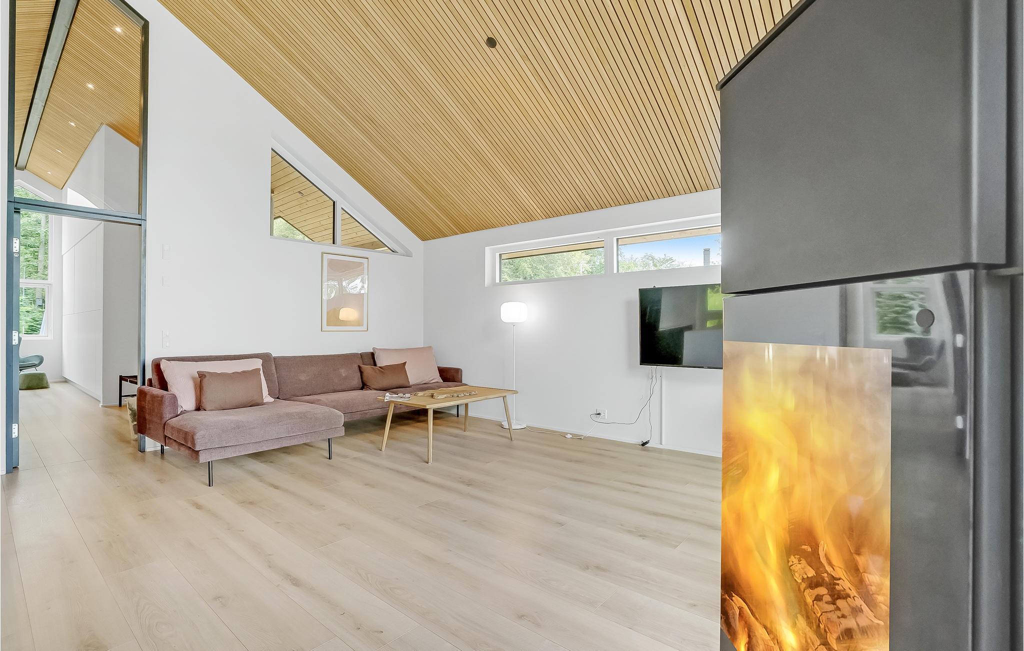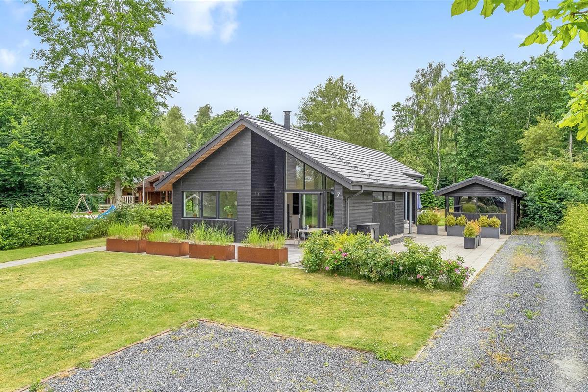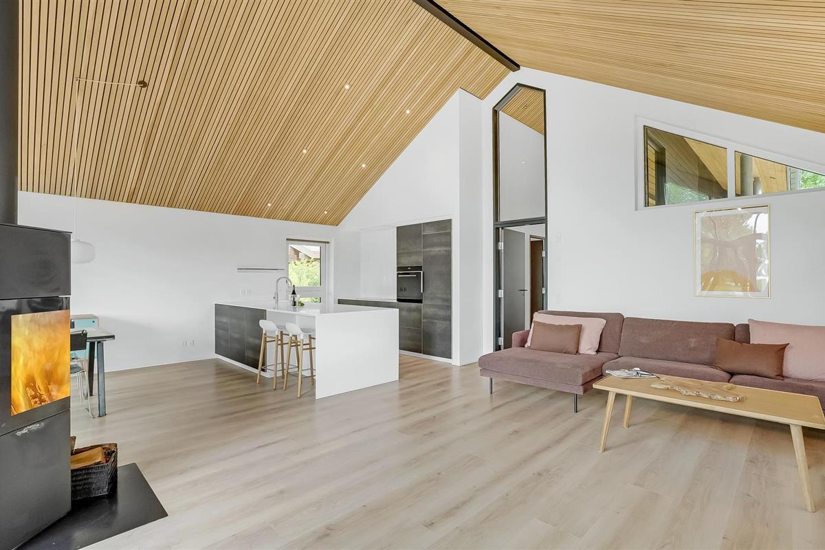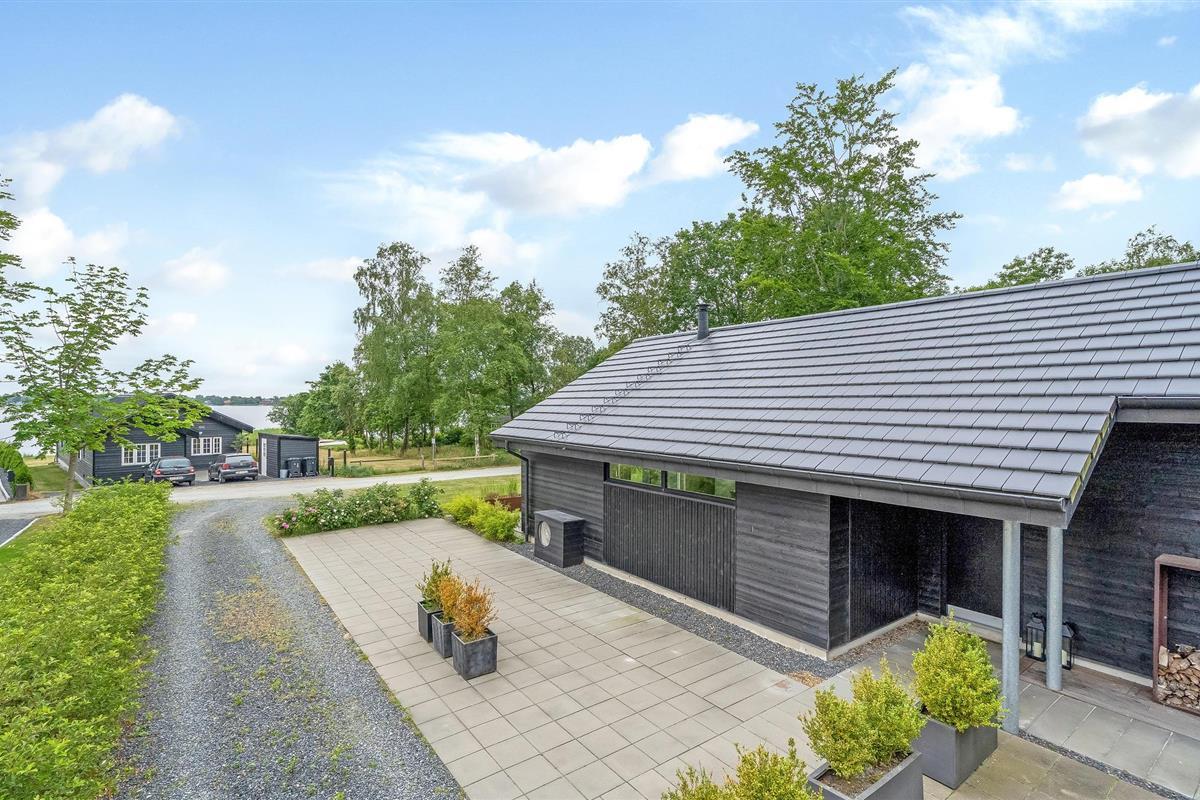 Geniet van een modern vakantiehuis aan het meer in Sunds, perfect voor watersport en ontspanning met een prachtig uitzicht.