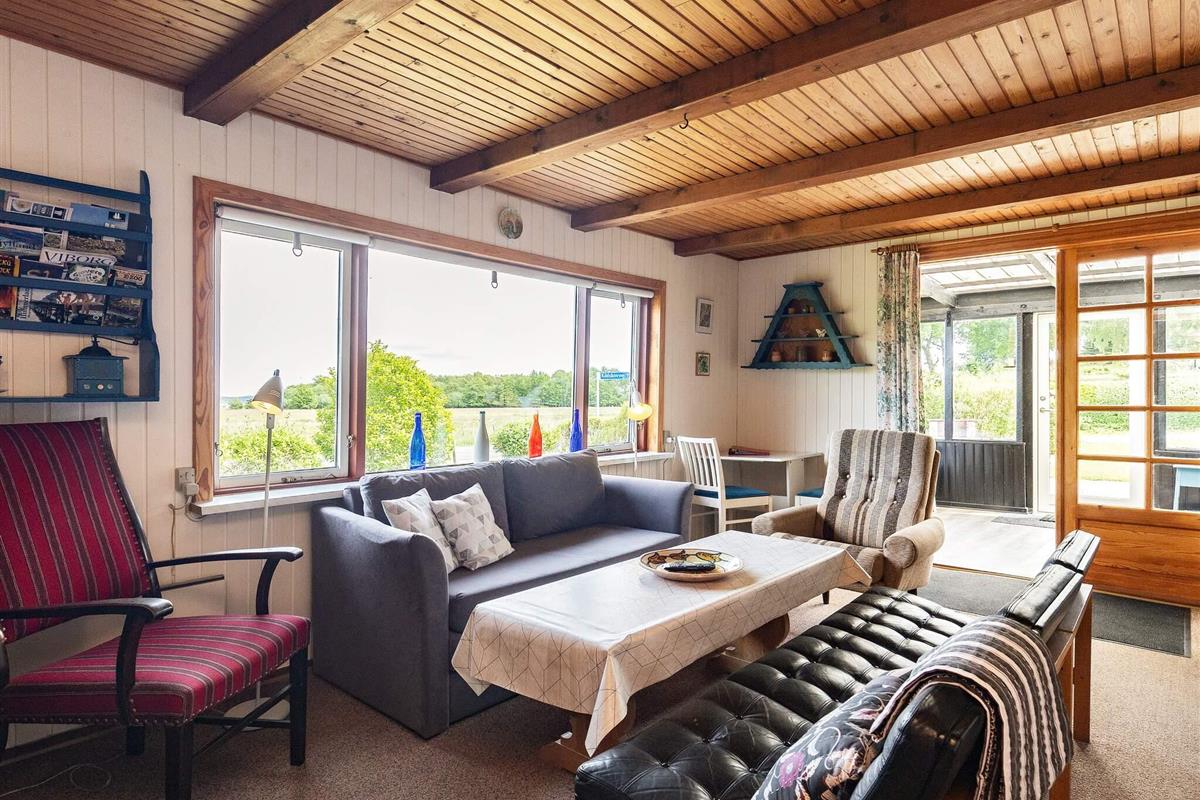 Günstiges Ferienhaus auf einem Waldgrundstück mit kleinem Bach sowie Aussicht in die grüne Umgebung und zum Limfjord. Zum Ufer dort sind es etwa 150 m. Das Haus liegt in einem ruhigen Ferienhausgebiet umgeben von reizvoller Natur, ideal für Erholungssuchende. Innen offener Küchen-/Wohnbereich, 3 Schlafzimmer und ein Bad. Zudem verglaste Veranda mit schönem Ausblick zum Wasser des Limfjordes. Auf dem Kugelgrill auf der Terrasse können Sie Ihr Abendbrot zubereiten. Ab Sundsøre kann man die kleine Fähre nach Hvalpsund nehmen.