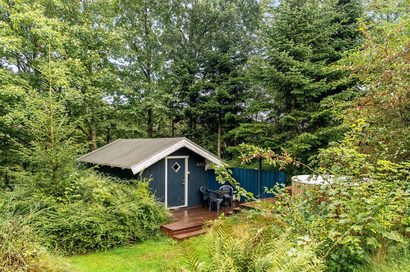 De vakantiewoning is gelegen op een 2700 m² groot natuural grond. Afstand tot de fjord 300 m. Dichtstbijzijnde winkel 3000 m. Er is een golfbaan op een afstand van 11000 m. Bij de vakantiewoning hoort terras. Schommel. Zandbak. Speeltoren. Glijbaan.Vuurplaats. Buitensauna. Buitendouche. Barbecue. Parkeerplaats bij het huis.
