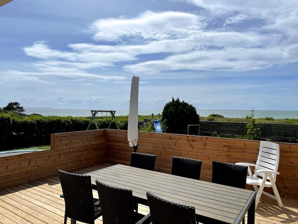 Met een zeezicht en een ruim perceel van 1004 m² is dit een uitstekende plek voor een ontspannende vakantie dichtbij de natuur en het strand, terwijl winkels en andere voorzieningen op ruim 12 kilometer afstand liggen.