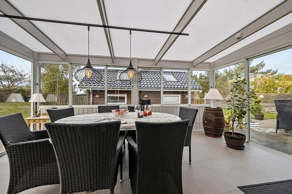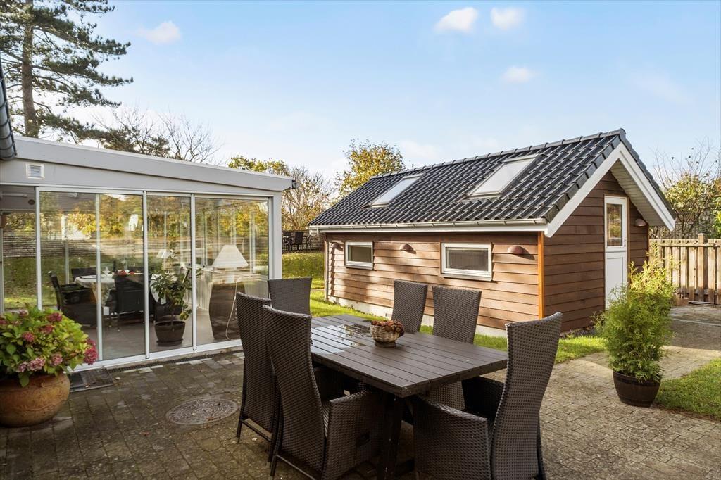 Genieße das Leben im Freien: Frische Luft und ein kleiner Blick auf das Meer erwarten Sie bereits vom Wintergarten aus. Der Strand ist nur wenige Gehminuten entfernt – ideal, um die Meeresbrise zu genießen und Spaziergänge mit Kindern und Hund zu unternehmen. Auf der schönen Terrasse können Sie Ihren Urlaub in vollen Zügen auskosten. Zum Ferienhaus gehören Gartenmöbel, eine Außendusche, ein Platz mit Außenküche sowie eine Schaukel für die Kinder. Der Garten ist vollständig eingezäunt, sodass Sie Ihren Hund unbesorgt mitbringen können. Das Gebiet eignet sich außerdem hervorragend für herrliche Spaziergänge entlang der Küste.