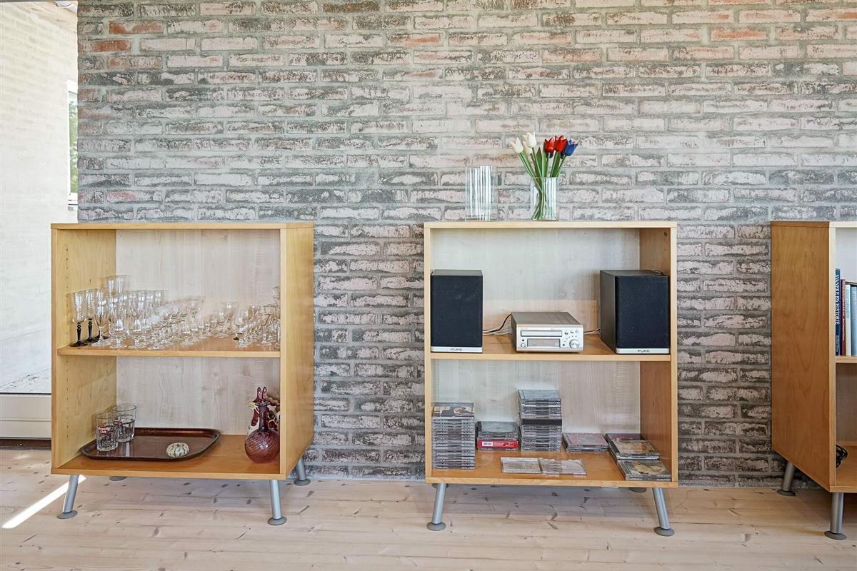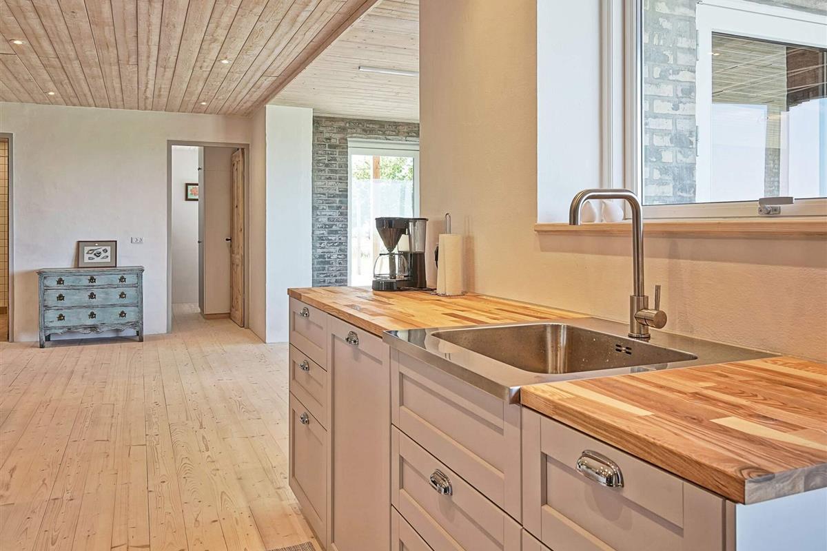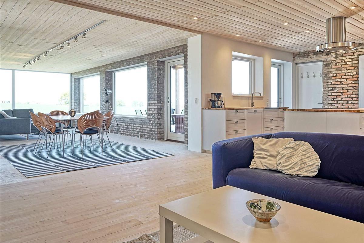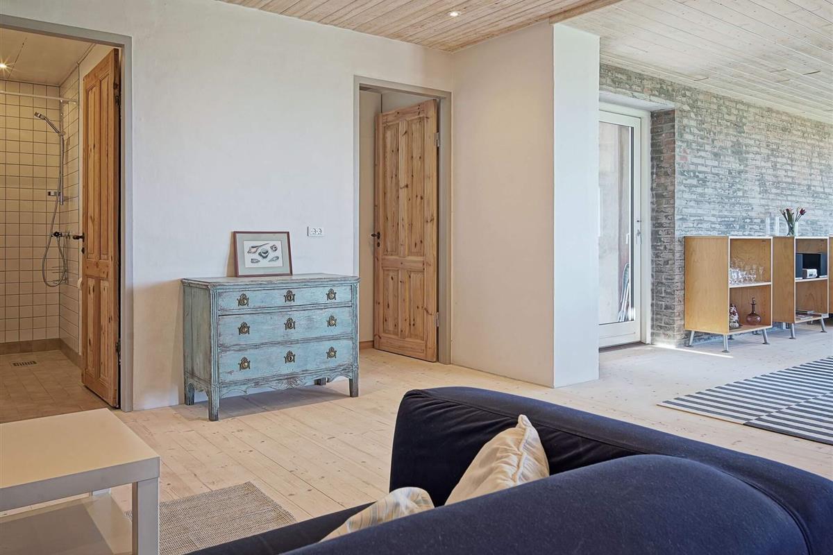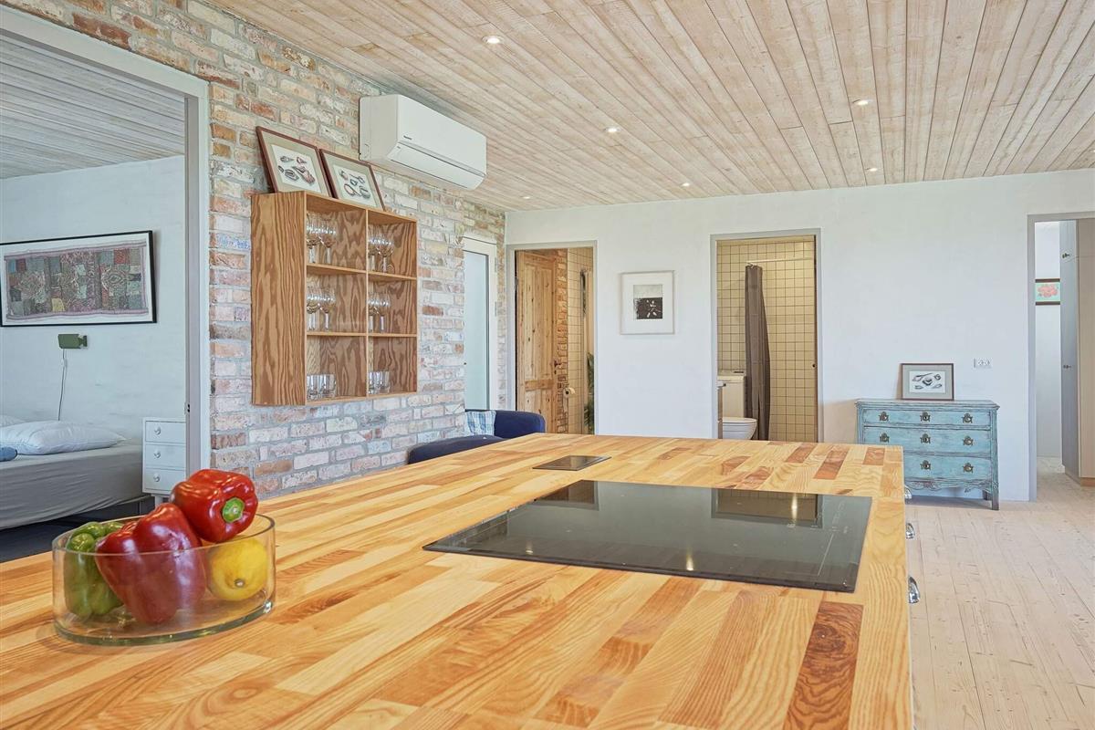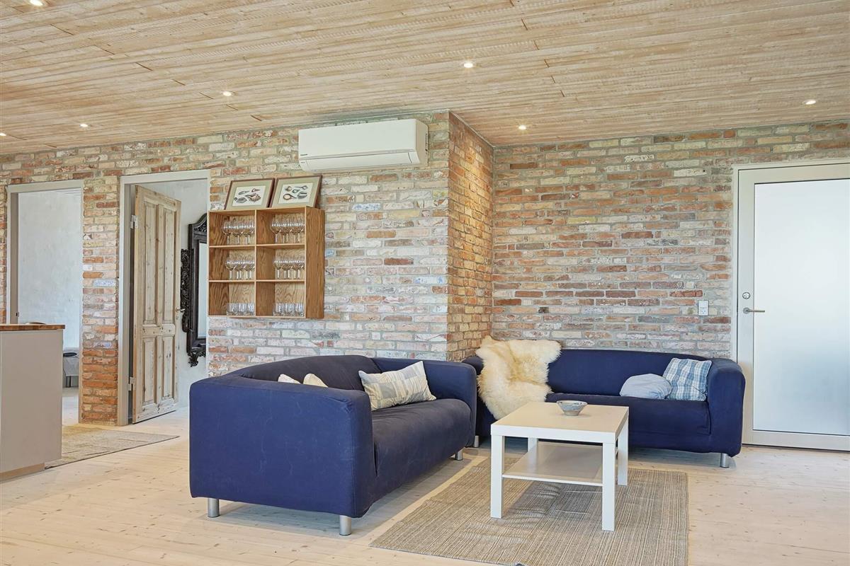 Die Wände bestehen im Parterre überwiegend aus recyceltem, rustikalem Baumaterial des ehemaligen landwirtschaftlich genutzten Gebäudes. Energieeffiziente Wärmepumpe im Haus zum Heizen oder Kühlen. Auf dem Feld nebenan liegt das archäologische Feld Sorte Muld, das für einige beachtenswerte Fundstücke bekannt ist.