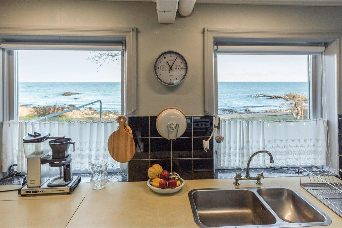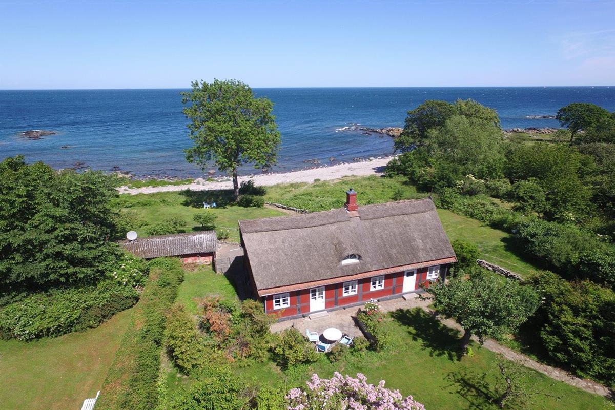 Ontdek dit perfecte vakantiehuis met een uniek rieten dak en directe toegang tot de kust in het pittoreske Svaneke, Denemarken.