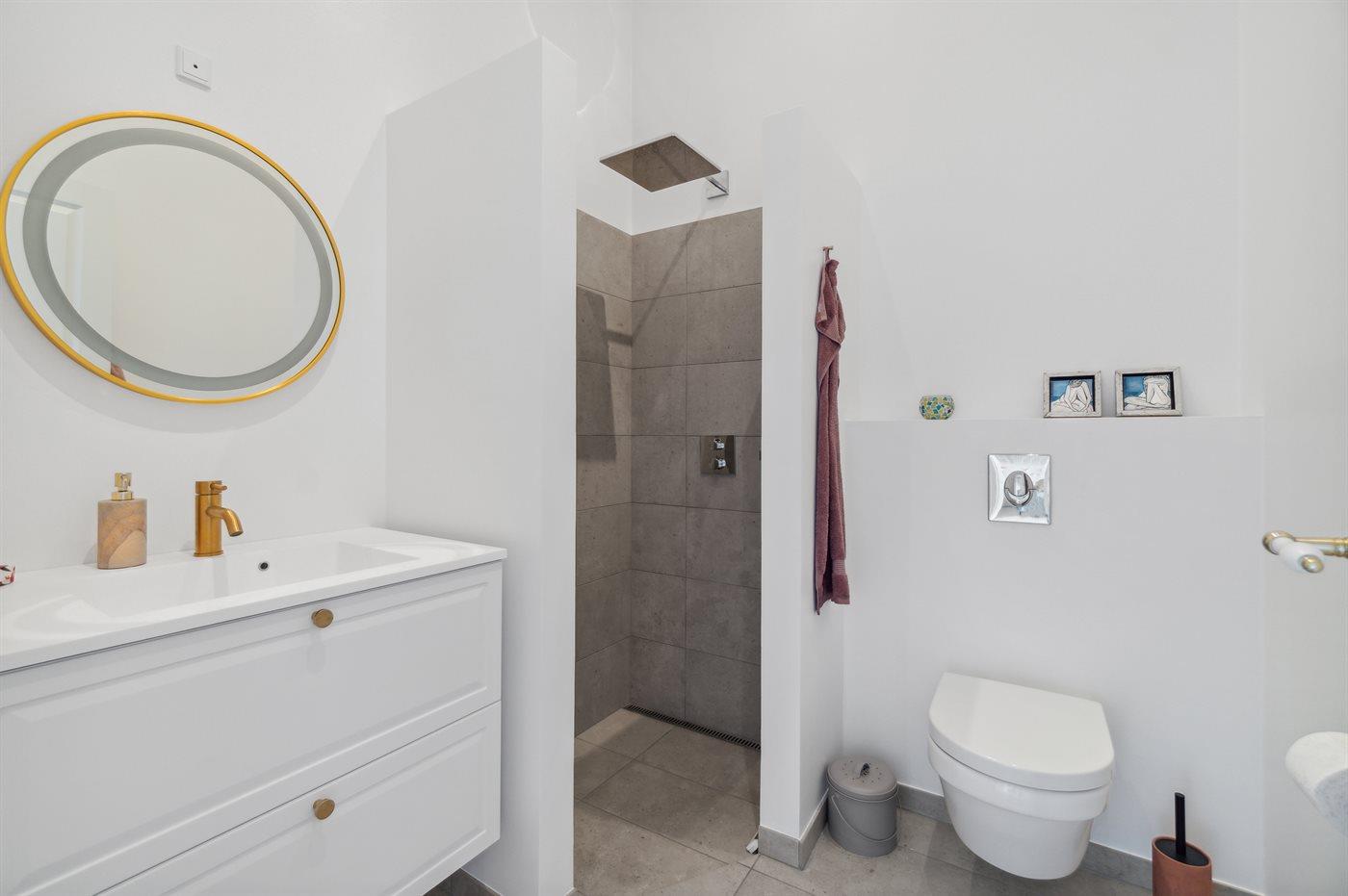 Er is 2 badkamers met douchehok en 2 toiletten. Er is vloerverwarming in 2 van de badkamers.