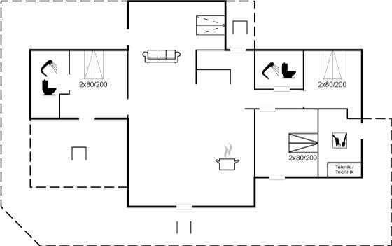 Er is 2 badkamers met douchehok en 2 toiletten. Er is vloerverwarming in 2 van de badkamers.