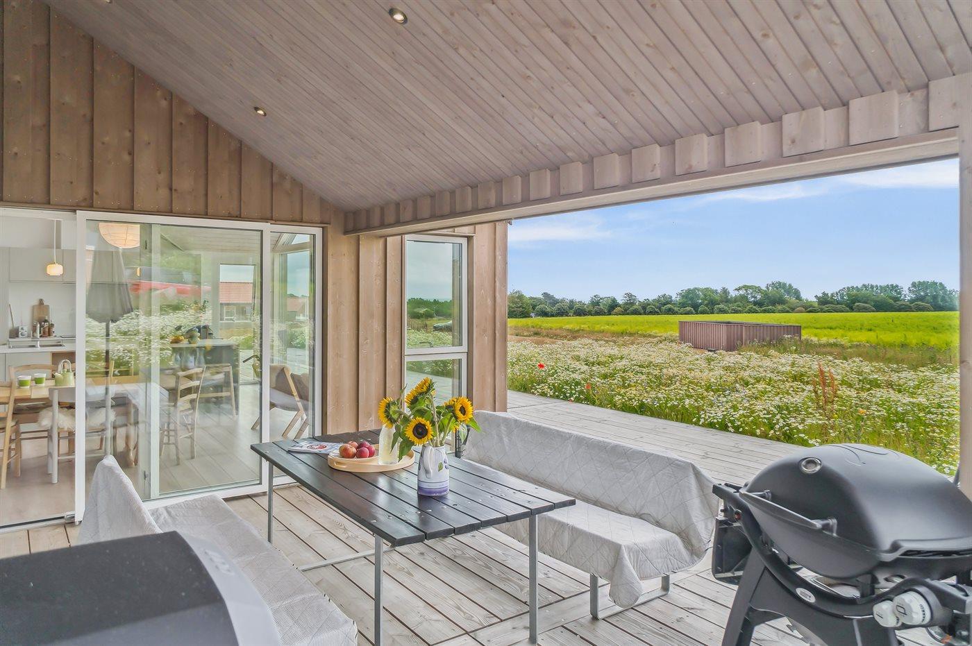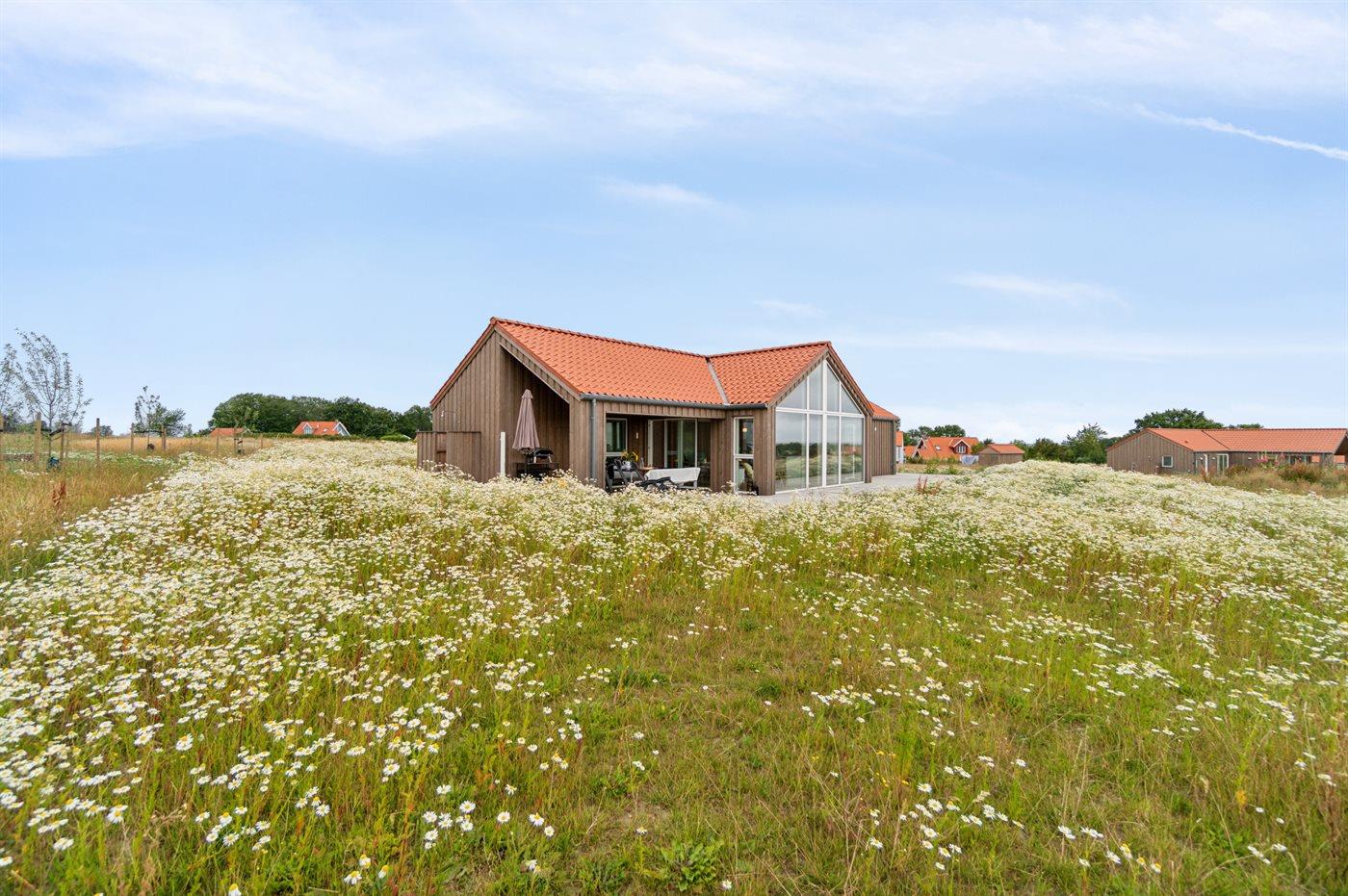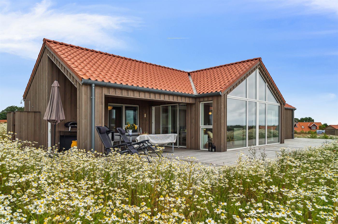 Moderne vakantiewoning in Svaneke met zeezicht, ruime terrassen en comfortabele voorzieningen voor een ontspannen verblijf.