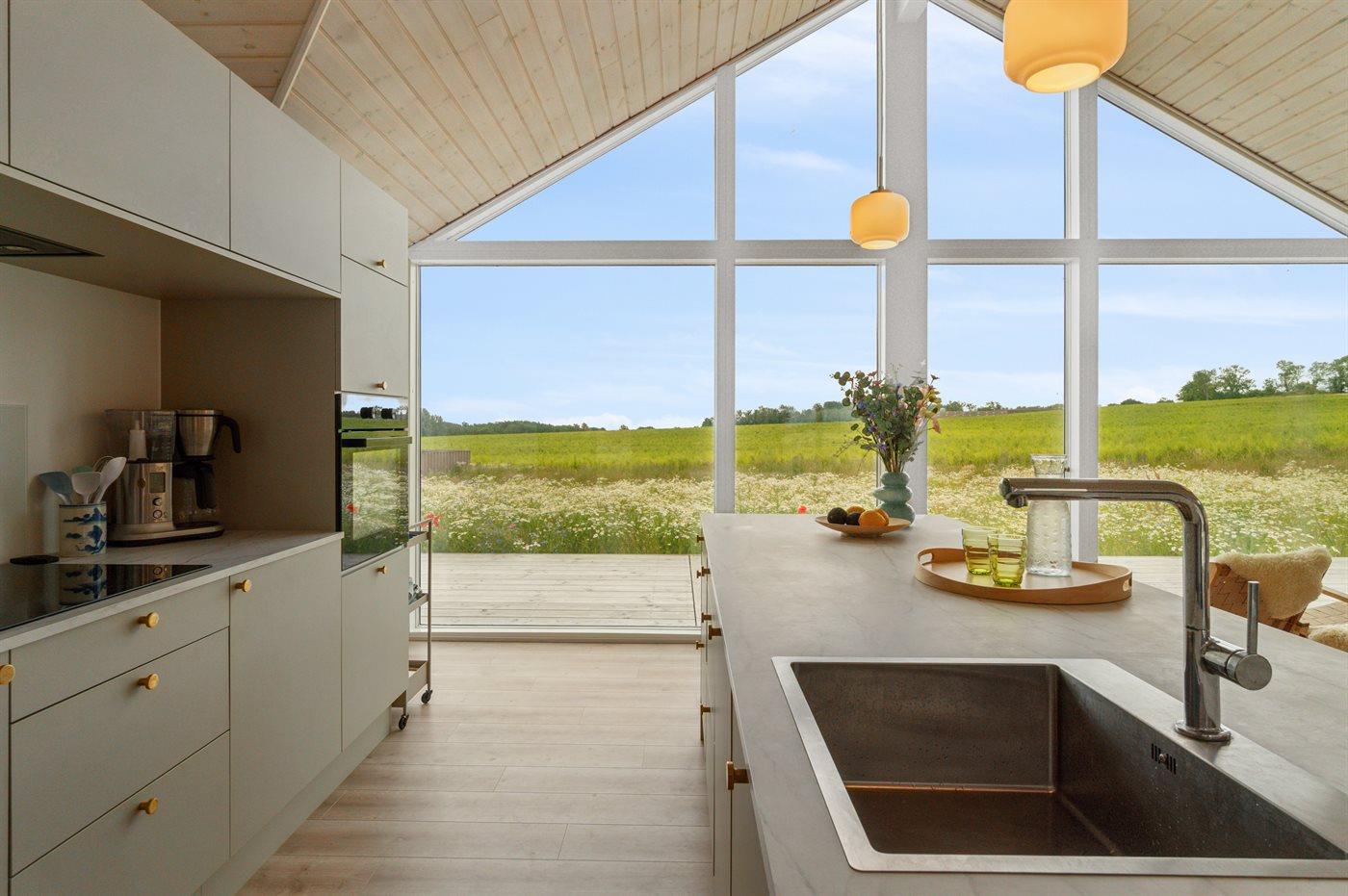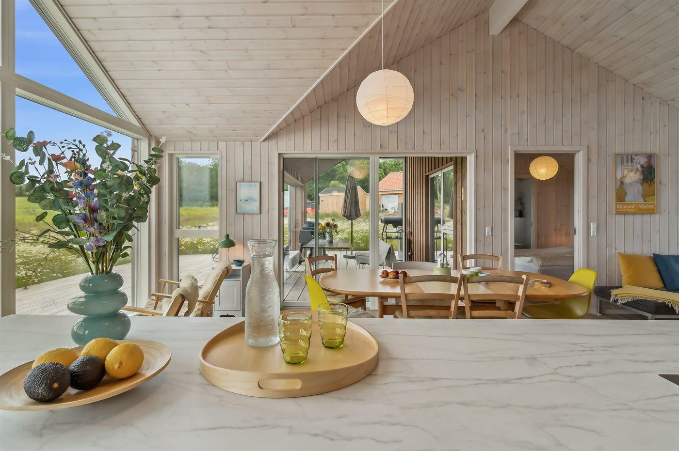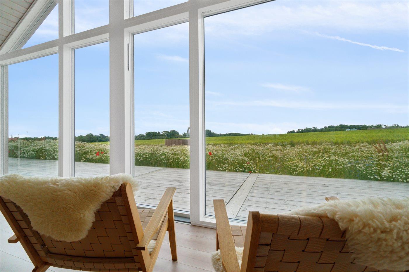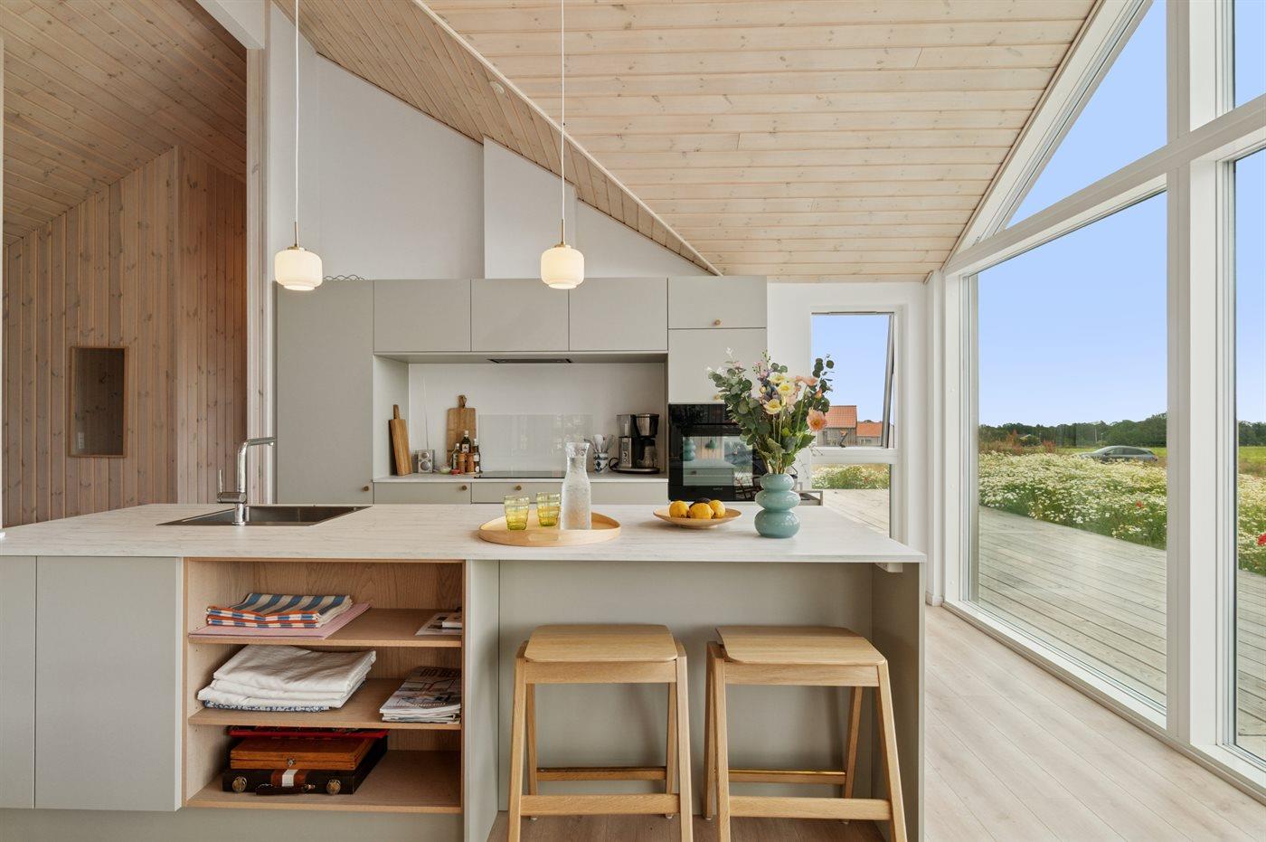 Moderne vakantiewoning in Svaneke met zeezicht, ruime terrassen en comfortabele voorzieningen voor een ontspannen verblijf.