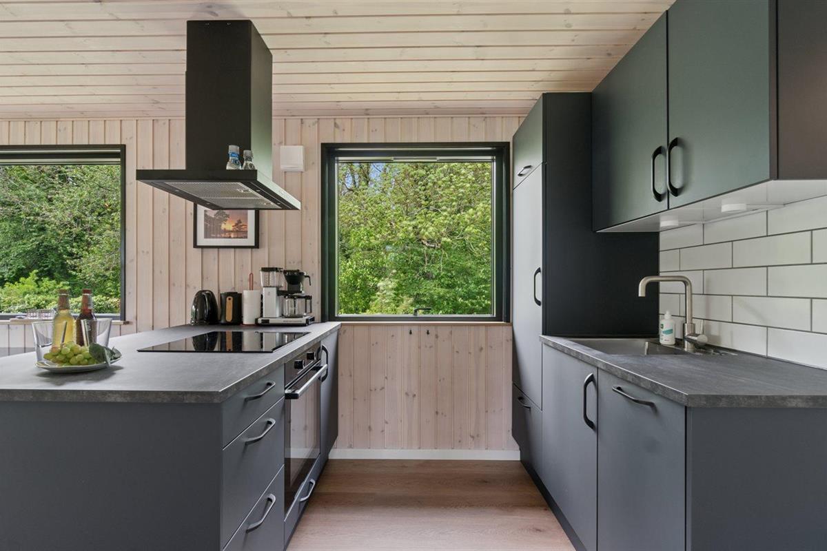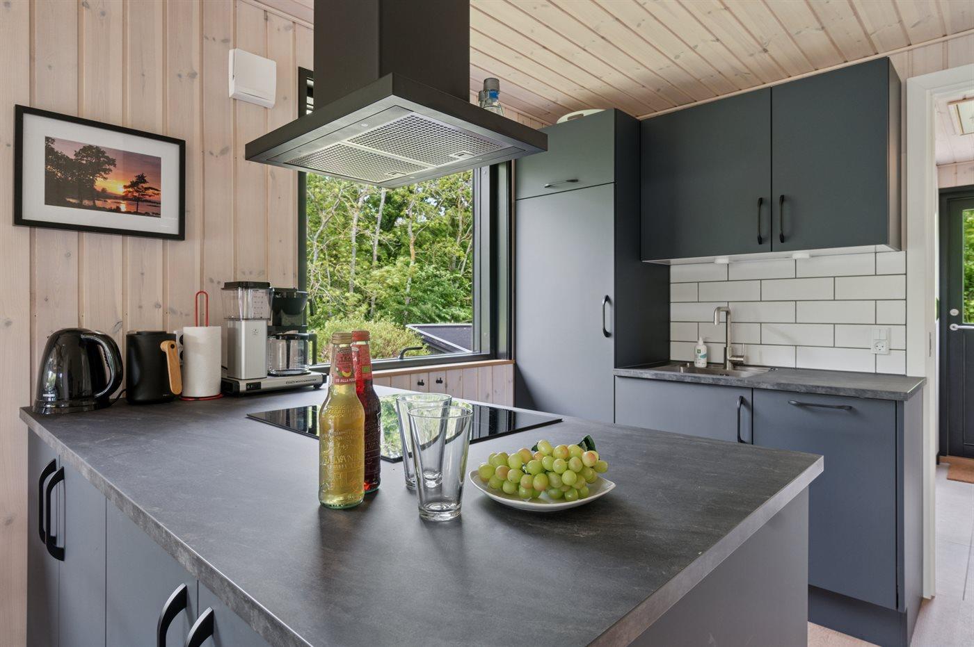 De keuken is uitgerust met koelkast Er is 4 inductiekookplaten, heteluchtoven en vaatwasser.