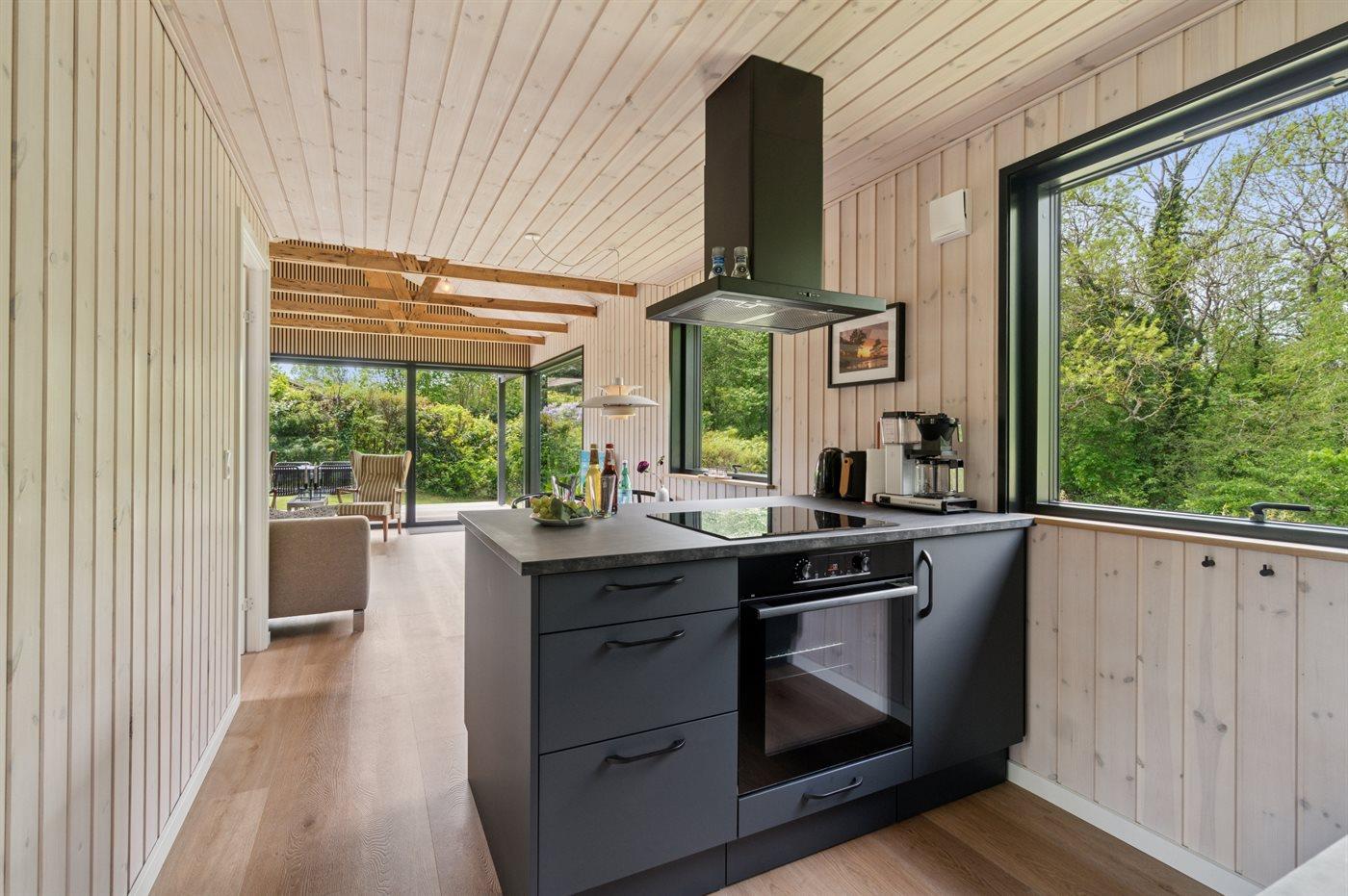 Modern vakantiehuis in Svaneke met tuin, houtkachel en dichtbij zee, ideaal voor een ontspannen verblijf.