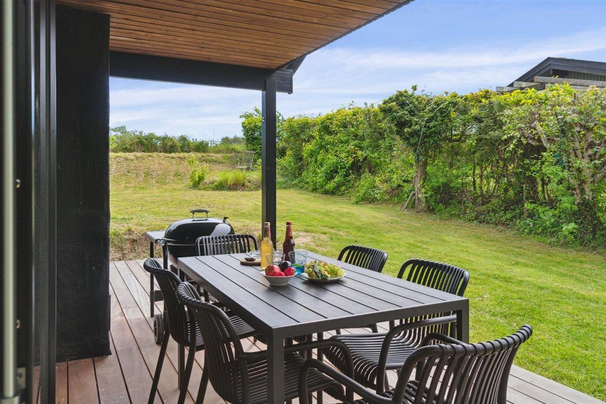 De vakantiewoning is gelegen op een 953 m² groot aangelegde tuin. Afstand tot de zee 400 m. Dichtstbijzijnde winkel 2500 m. Bij de vakantiewoning hoort terras. Daarnaast is er een overdekt terras. Buitendouche. Barbecue. Carport ter beschikking. Parkeerplaats bij het huis.