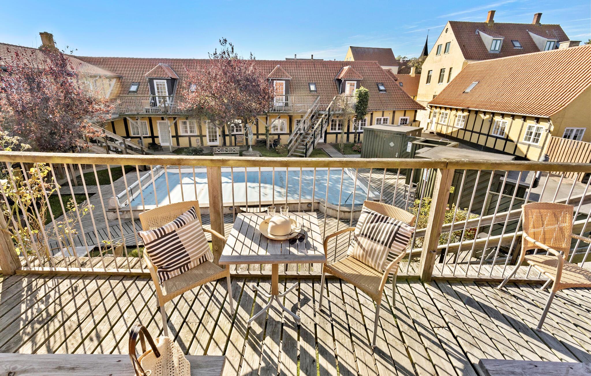 Gezellig appartement in historisch vakwerkhuis met zeezicht, balkon en gedeeld zwembad in pittoresk Svaneke.