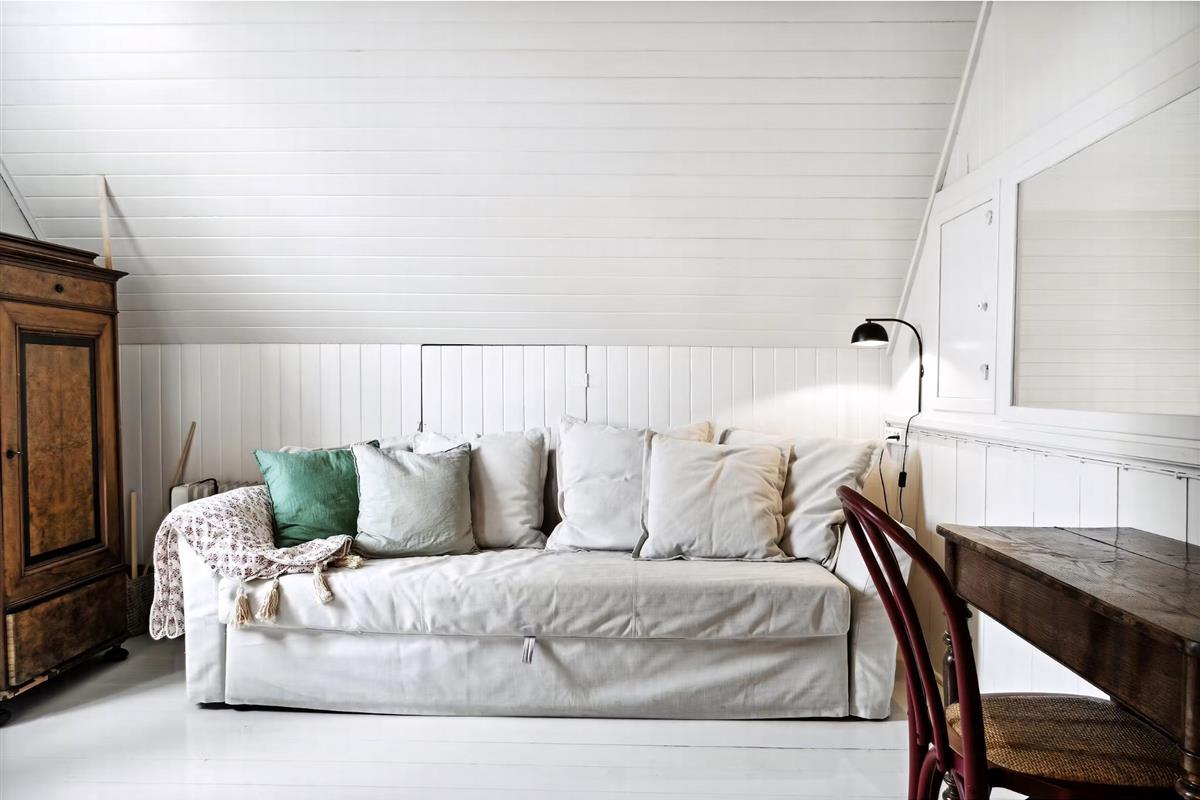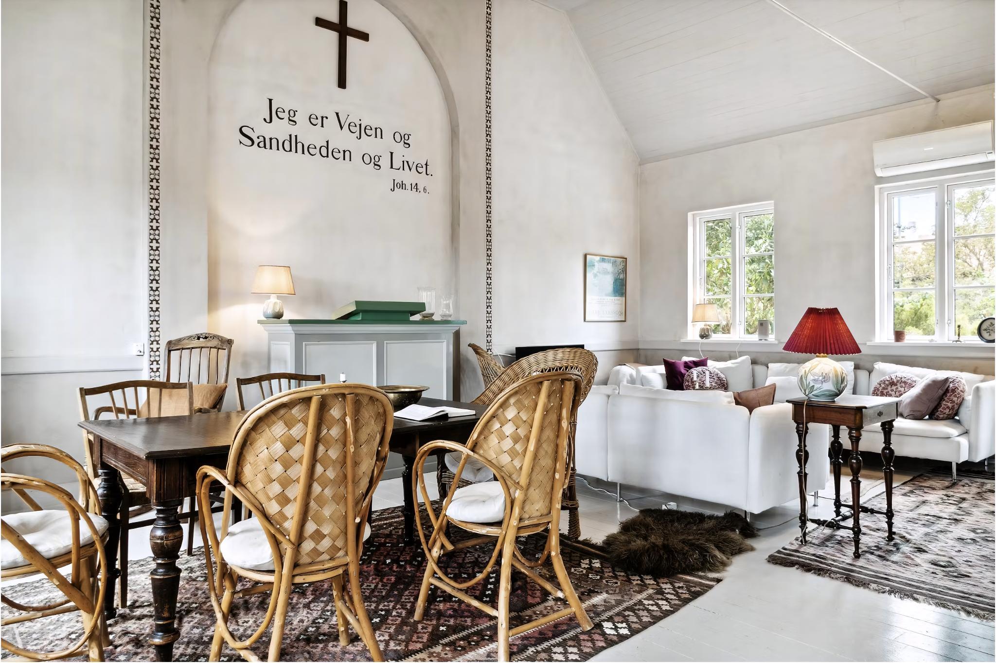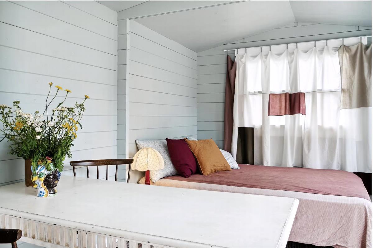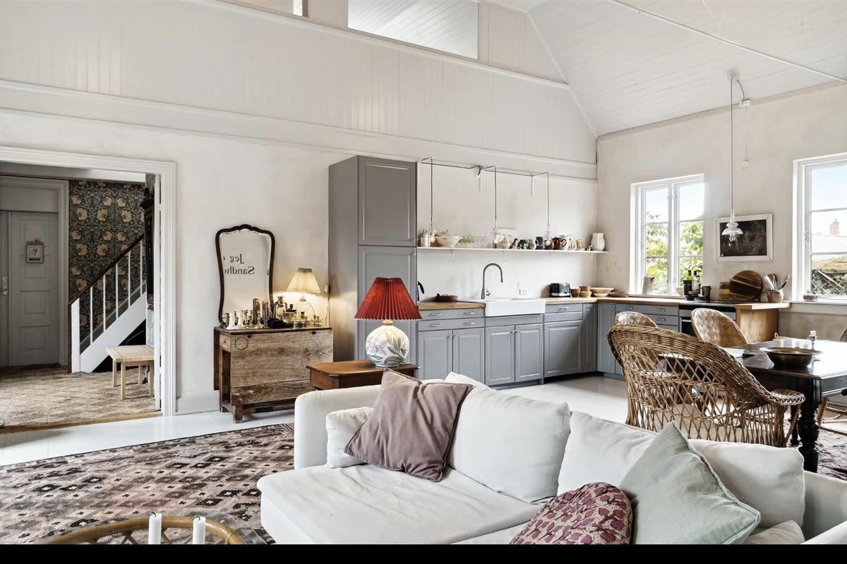 Achter de haven in het oude vissersdorp Aarsdale ligt een oud en authentiek Missiehuis aan het einde van een klein afgesloten straatje. Het zomerhuis heeft een prachtige ligging aan de oostkust van Bornholm, slechts een steenworp van het idyllische Svaneke. Het huis was versleten, somber en stond op een parkeerplaats toen de familie het drie jaar geleden overnam. Sindsdien hebben ze het met liefde gerenoveerd, met terrassen, een buitenbad en beplanting van verschillende bessenstruiken, evenals een appel- en amandelboom. De familie heeft bovendien zorg besteed aan het behouden van de originele architectuur van het huis, met de grote zaal met preekstoel en inscriptie op de muur, die nu functioneert als een prachtig open keuken- en woonruimte met focus op samenzijn. De begane grond herbergt ook een grote slaapkamer, een klein toilet en een grote hal, en de oude koorzaal op de eerste verdieping heeft geluidsdichte ramen gekregen en is ingericht als slaapkamer met uitzicht op de zaal. In de tuin bevindt zich het enige, maar mooiste bad van het huis, met zowel een douche als een bad. (Er is geen binnenbad, alleen een toilet). Het huis is ingericht in zachte kleuren met meubels uit Bornholm, om de rust en vrede van de lokale gemeenschap te weerspiegelen. Het maritieme molen- en vissersdorp Aarsdale biedt een gezellig havenmilieu met een sauna voor winterzwemmen en enkele actieve vissers, een prachtig strand op slechts 100 meter van het zomerhuis, een Høker en Mikkeler heeft in de zomer een goed restaurant en café geopend. Na een maaltijd in de stad kunt u een wandeling maken naar de bekendste bezienswaardigheid van de stad, de goed bewaarde molen uit 1877. Als u goede wandelschoenen hebt, kunt u ook naar het mooie natuur- en bosgebied Paradisbakkerne gaan, met veel goede wandelroutes. Als u het natuurpad drie kilometer naar het noorden volgt, komt u in Svaneke, en als u vijf kilometer naar het zuiden gaat, komt u in Nexø, die elk op hun eigen unieke manier heel speciaal zijn. Let op: Niet te huur voor commercieel gebruik.