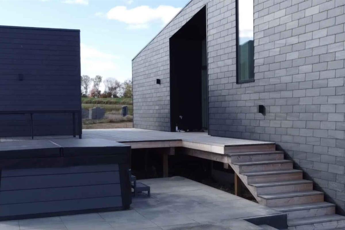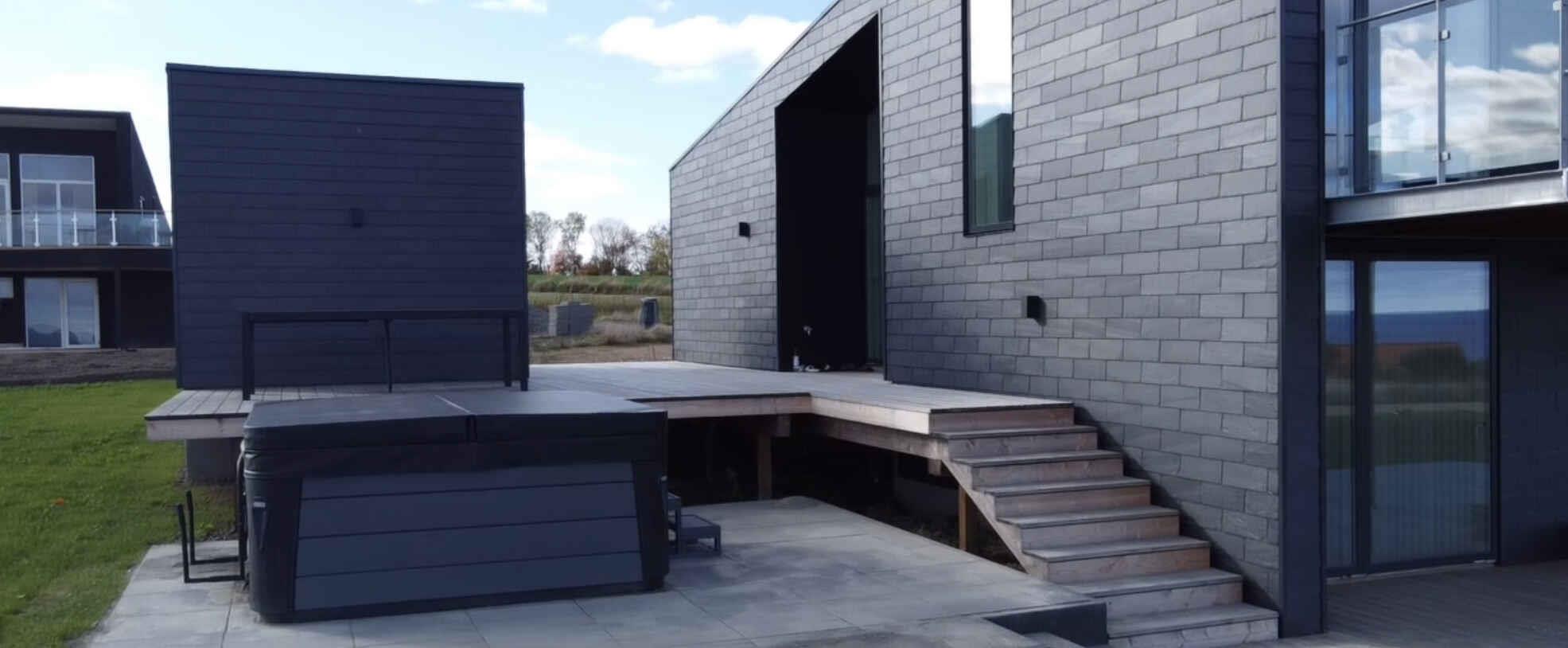 Nieuw gebouwd zomerhuis nabij Svaneke met prachtig zeezicht, vier slaapkamers en een buitenspa voor ultieme ontspanning.