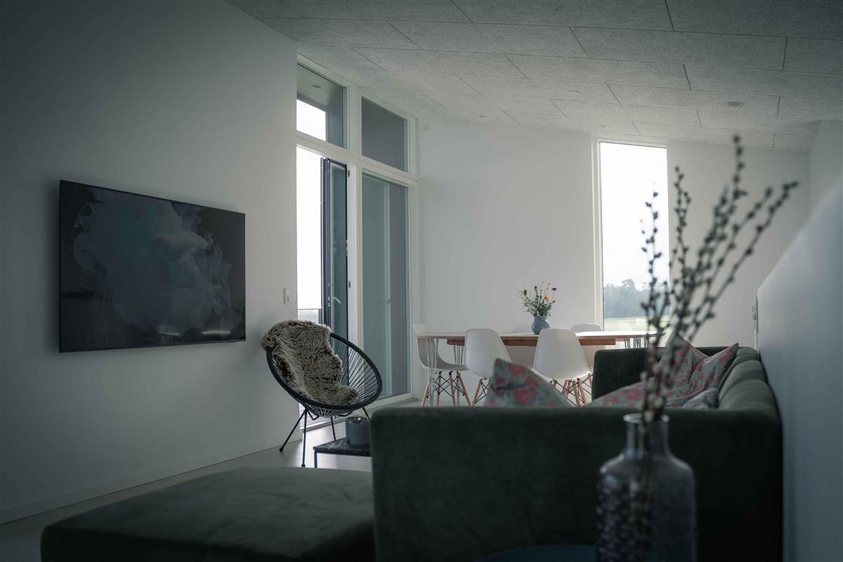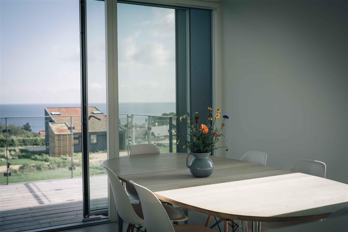 Dit nieuw gebouwde zomerhuis op anderhalve verdieping biedt een betoverend uitzicht op zee en een schilderachtig uitzicht op het iconische Christiansø. Een echt pareltje van een locatie nabij Svaneke openbaart zich hier en het huis is voorzien van een doordachte indeling met onder meer vier slaapkamers – drie met een tweepersoonsbed en één met een stapelbed. Twee goed uitgeruste badkamers, een open keuken, een uitnodigende inkomhal en een ruime eetkamer maken het comfort compleet. Het comfort houdt daar niet op - het geothermische systeem zorgt voor een comfortabele temperatuur in huis en met vloerverwarming stroomt gezelligheid en warmte door het hele huis. Een slim bedieningspaneel geeft je volledige controle over de temperatuur in elke kamer. Het grote geschakelde houten terras, dat bereikbaar is vanuit de keuken en twee van de slaapkamers, nodigt uit tot buitenleven en ontspanning. Hier kunt u genieten van de zonnestralen en schaduwrijke hoekjes, douchen onder de blote hemel of u terugtrekken in de weldadige bubbels van de spa. Op slechts 300 meter afstand vindt u op het terrein het gezellige Louisekroen en een verfrissende zwembrug in het schilderachtige Bølshavn. De eerste verdieping is een eerbetoon aan weidse uitzichten en saamhorigheid. Een elegante eethoek voor acht personen nodigt uit tot goede diners en er is een zithoek gecreëerd voor ontspannende momenten. Stap het balkon op, dat uitkomt op een adembenemend uitzicht op de Baltische Zee. Hier kunt u uw ochtendkoffie drinken met op de achtergrond kabbelend water of de verleidelijke smaak van de witte wijn laten samengaan met de schilderachtige kleurverandering van de horizon. Terwijl Svaneke charmante havenervaringen, verleidelijke bezoeken aan de bolchekogerie en verkenning van de paradijselijke heuvels biedt, zijn de vele bezienswaardigheden van Bornholm ook gemakkelijk te bereiken. Deze residentie is niet zomaar een huis - het is een toegangspoort tot onvergetelijke ervaringen en een oase van rust en welzijn. Let op: Niet te huur voor commercieel gebruik.