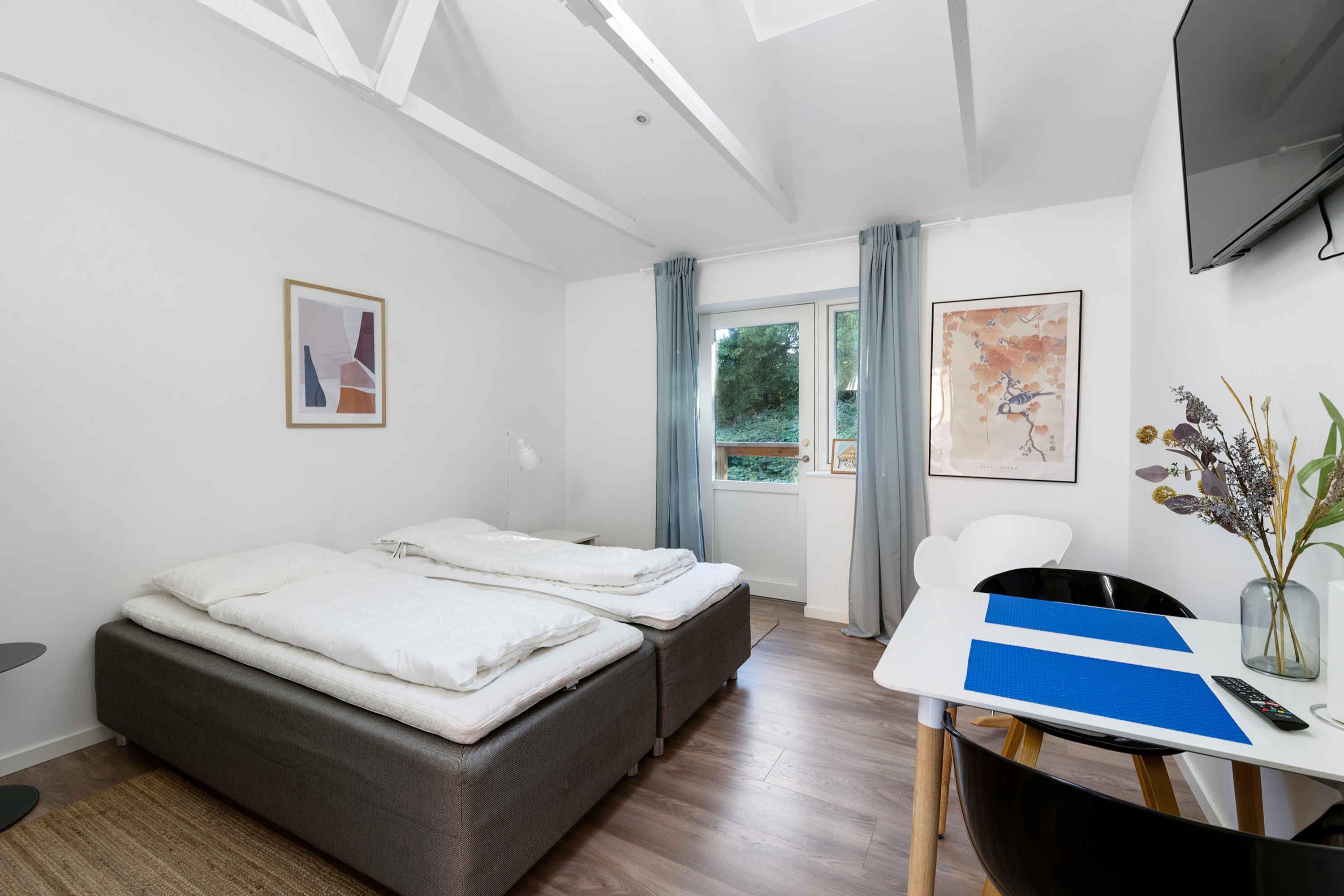 Welkom bij SOLGAARDEN BADEPENSION in Årsdale – uw gezellige verblijfplaats in het hart van het oorspronkelijke Bornholm. Een moderne oase van 25 m2. De woning heeft een slaapkamer en twee slaapplaatsen. Perfect voor stellen of een klein gezin. Solgaarden is voor degenen die willen genieten van de rust van de natuur en enkele van de prachtige omgevingen van Bornholm – om nog maar te zwijgen van alle heerlijke gastronomische mogelijkheden die Bornholm biedt. Solgaarden heeft in totaal 9 appartementen en is daarom ook de plek voor diegenen die reizen als een groep of als een groot gezin over generaties heen. Solgaarden kijkt uit over de Oostzee. Oorspronkelijk was de boerderij een school, later uitgebreid om te dienen als feestzaal en kampschool. Tegenwoordig zijn de kamers omgetoverd tot kleine, pas gerenoveerde appartementen met een eigen badkamer en keuken. De plek heeft een echt gezellige sfeer in de binnenplaats, met een eetschuur en een grote vuurplaats. Bovendien heeft het appartement een eigen toegang tot een groot terras dat uitkijkt op de wilde natuur. Vanaf de binnenplaats kunt u afdalen naar de prachtige grote tuin van Solgaarden, ideaal voor spelen, ontspannen, lunchen onder appelbomen en allerlei zonnige momenten. Svaneke biedt unieke ervaringen. Lokale ambachtslieden, historische straten en het geluid van de zee.