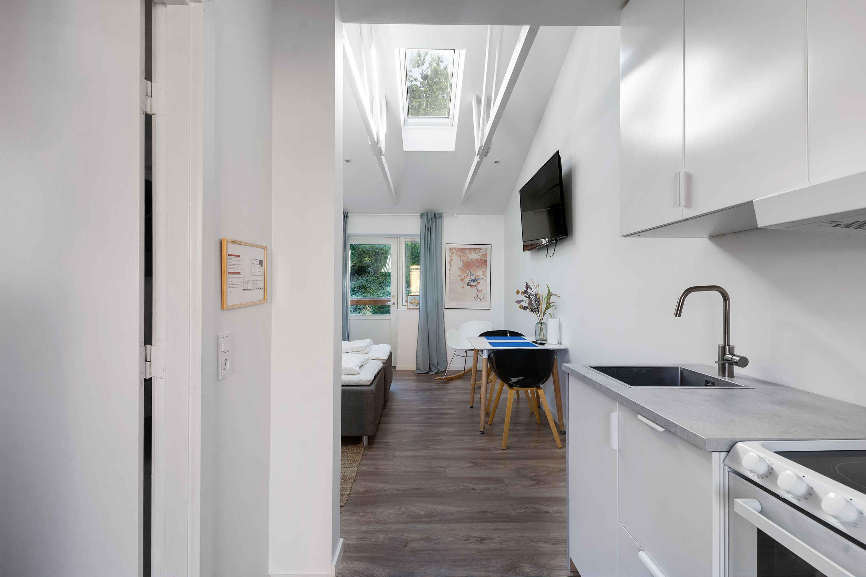 Welkom bij SOLGAARDEN BADEPENSION – uw gezellige verblijfplaats in het hart van het oorspronkelijke Bornholm. Een moderne oase van 25 m2. De woning heeft een slaapkamer en twee slaapplaatsen. Perfect voor stellen of een klein gezin. Solgaarden is voor degenen die willen genieten van de rust van de natuur en enkele van de prachtige omgevingen van Bornholm – om nog maar te zwijgen van alle heerlijke gastronomische mogelijkheden die Bornholm biedt. Solgaarden heeft in totaal 9 appartementen en is daarom ook de plek voor diegenen die reizen als een groep of als een groot gezin over generaties heen. Solgaarden kijkt uit over de Oostzee. Oorspronkelijk was de boerderij een school, later uitgebreid om te dienen als feestzaal en kampschool. Tegenwoordig zijn de kamers omgetoverd tot kleine, pas gerenoveerde appartementen met een eigen badkamer en keuken. De plek heeft een echt gezellige sfeer in de binnenplaats, met een eetschuur en een grote vuurplaats. Bovendien heeft het appartement een eigen toegang tot een groot terras dat uitkijkt op de wilde natuur. Vanaf de binnenplaats kunt u afdalen naar de prachtige grote tuin van Solgaarden, ideaal voor spelen, ontspannen, lunchen onder appelbomen en allerlei zonnige momenten. Svaneke biedt unieke ervaringen. Lokale ambachtslieden, historische straten en het geluid van de zee.