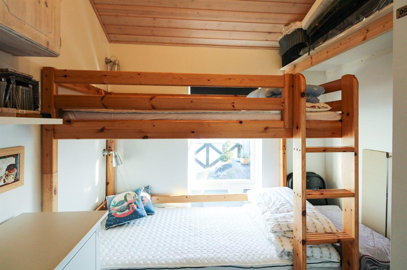 Er zijn in totaal 2 slaapkamers. De slaapplaatsen zijn als volgt verdeeld: 2 slaapplaatsen in tweepersoonsbed. 2 slaapplaatsen in stapelbed. 2 slaapplaatsen in slaapbanken (tweepersoons).